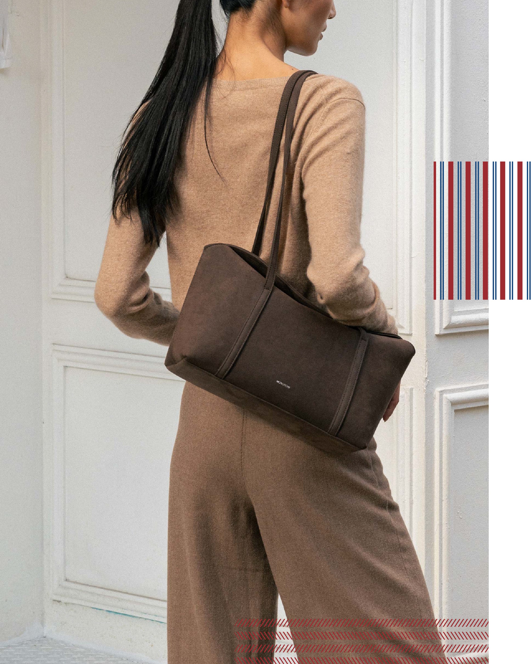 Sharp tailoring meets laid-back ease — completed with the Limited Edition CARLYN Babe Bag for Bobo Tokyo.