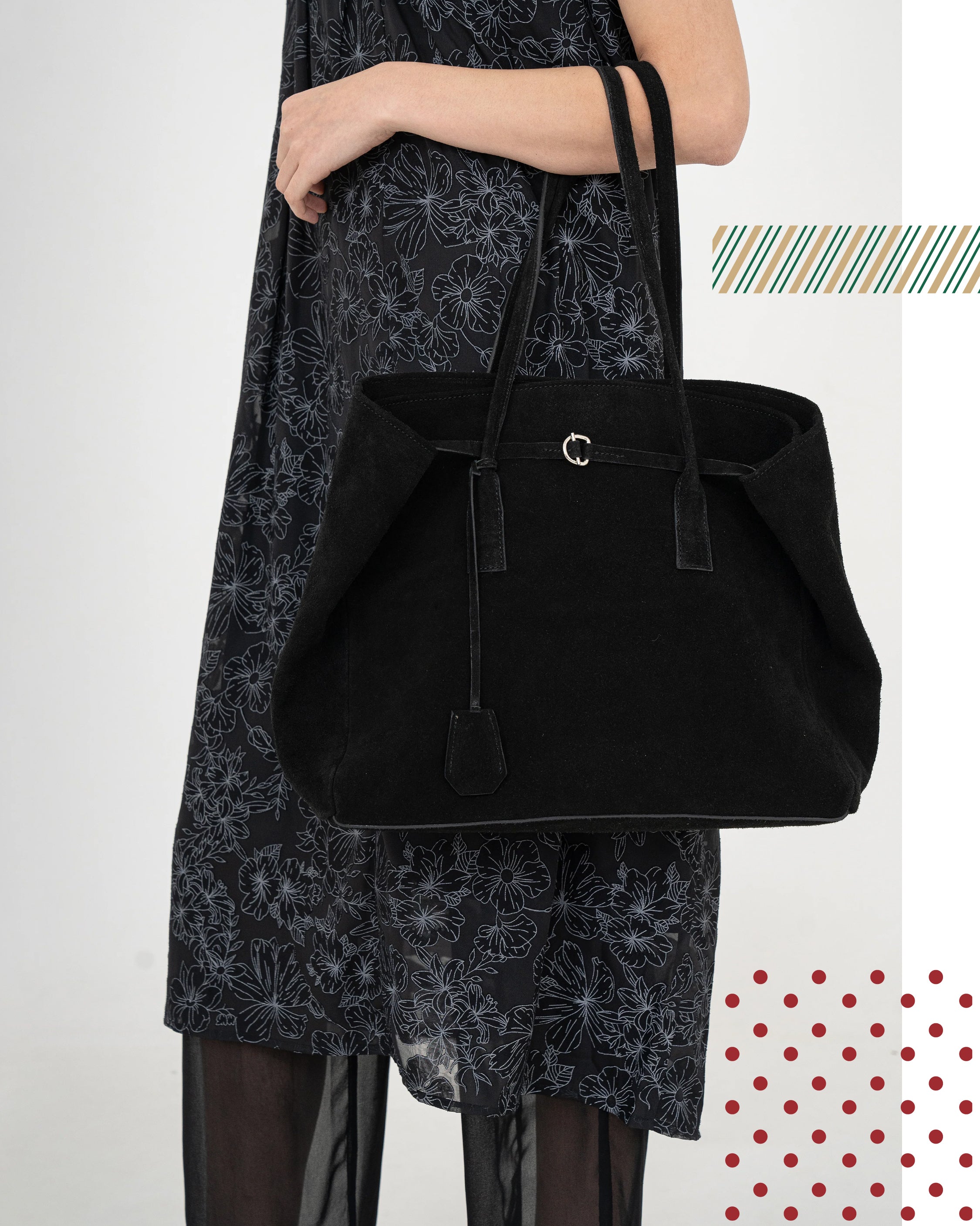 Cinintya is styling the versatile Charvi Jacquard Dress with Tweed Shopper Bag from PLEATSMAMA