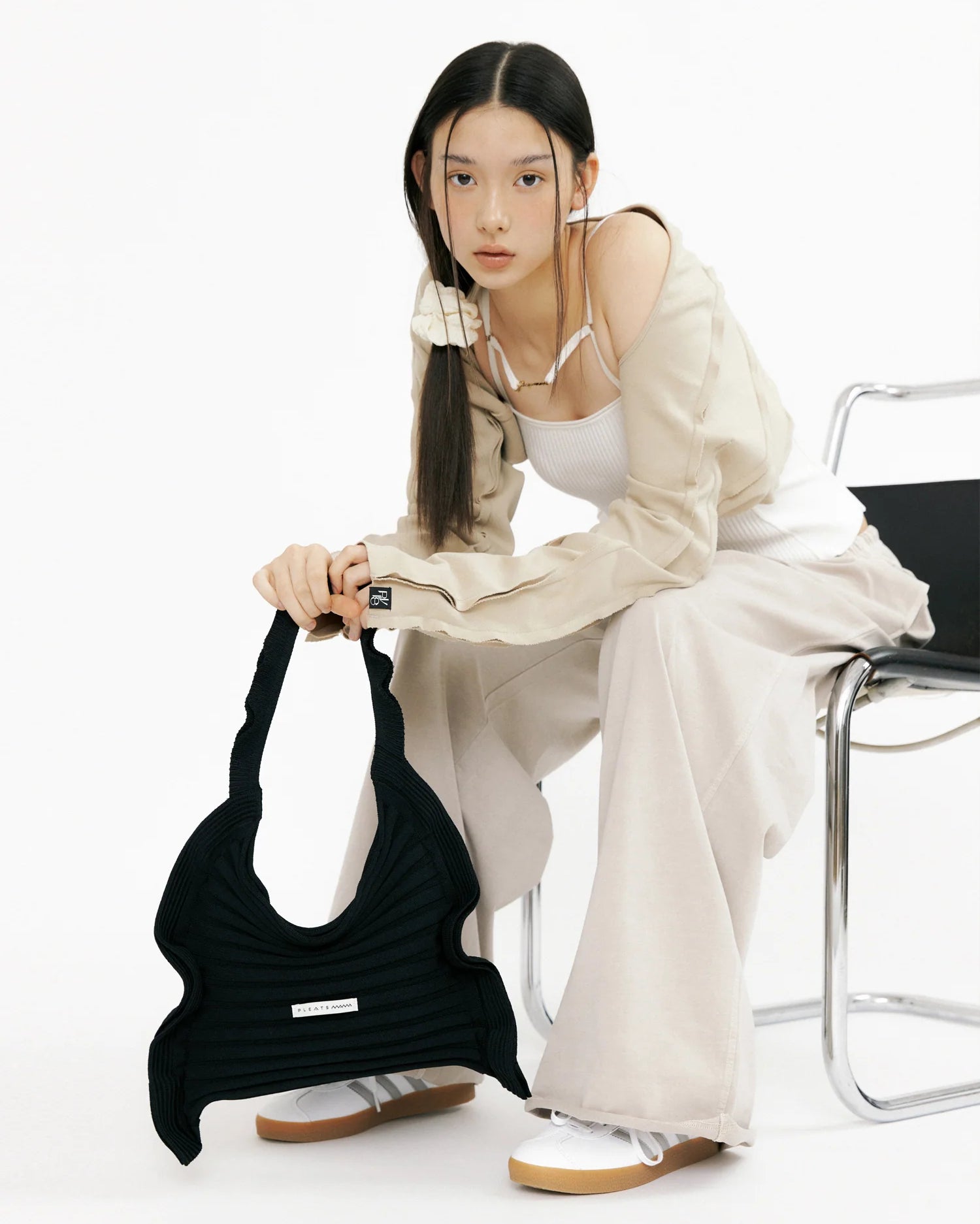 Sharp tailoring meets laid-back ease — completed with the Limited Edition CARLYN Babe Bag for Bobo Tokyo.