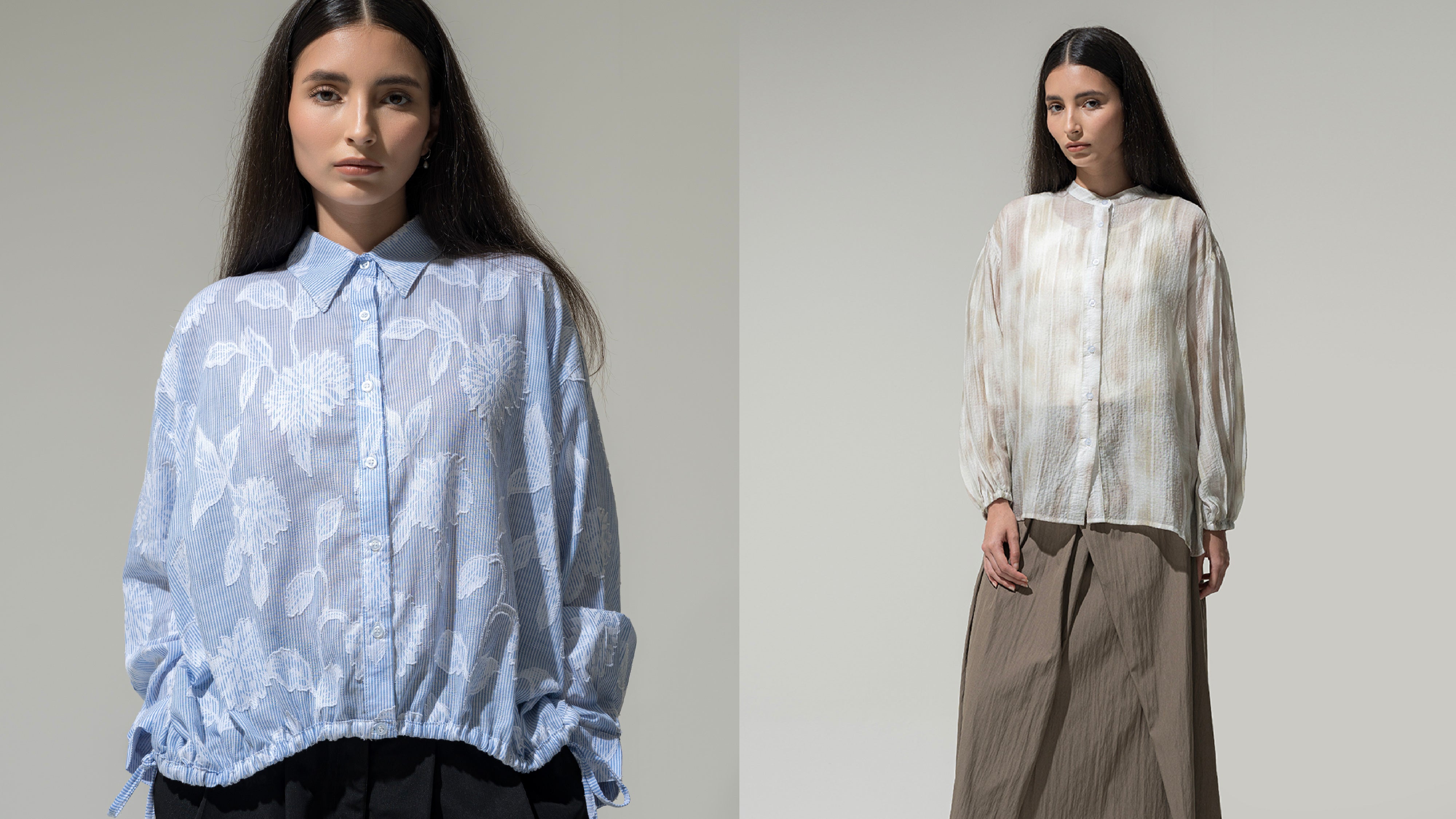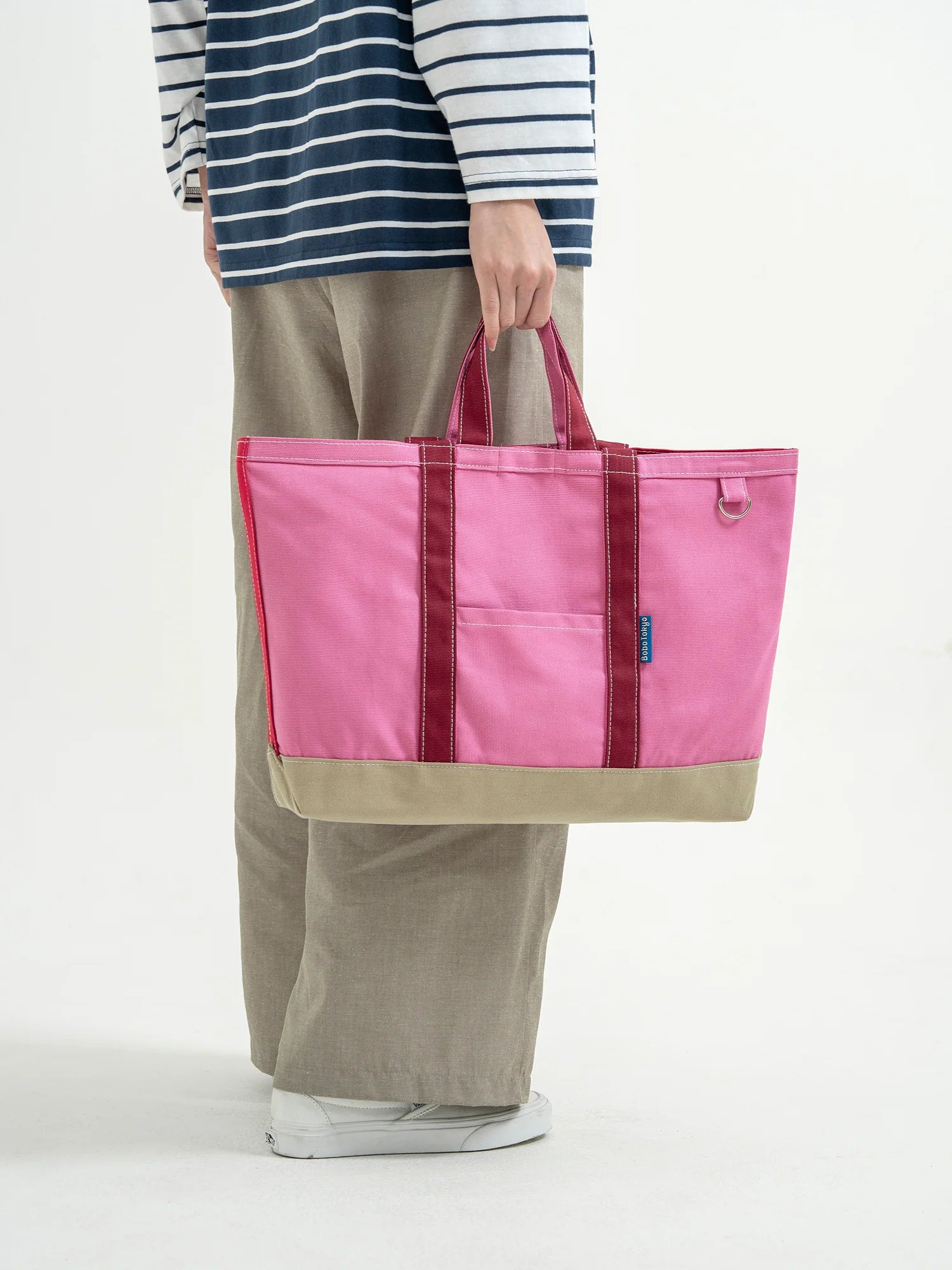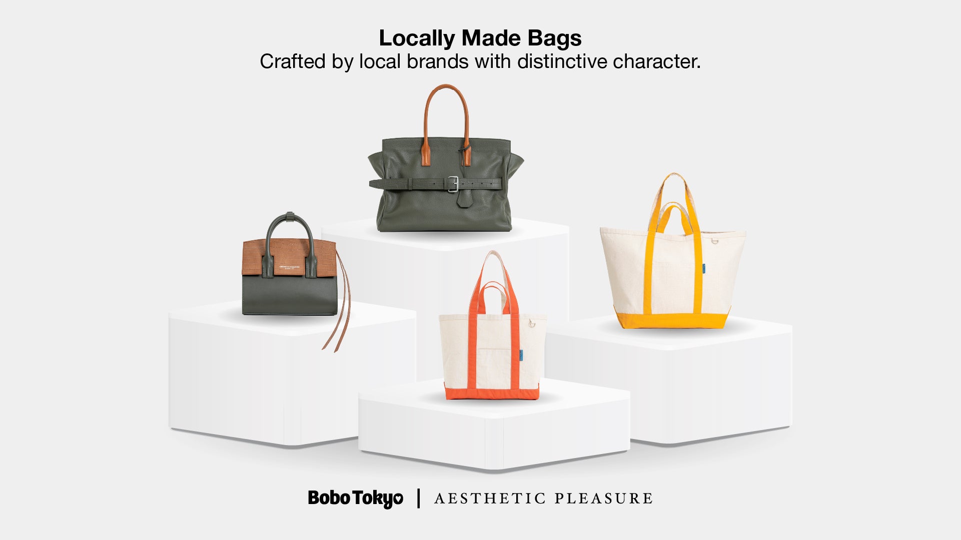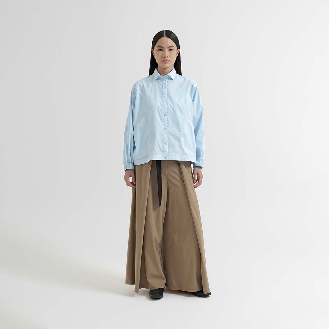 A limited piece for everyday moments. April and Summer Widira with The Carlyn Babe Bag, paired with Tarumizu Dress in Off-White, Amami Skirt in Indigo, and Chiryu Shirt in Pink.