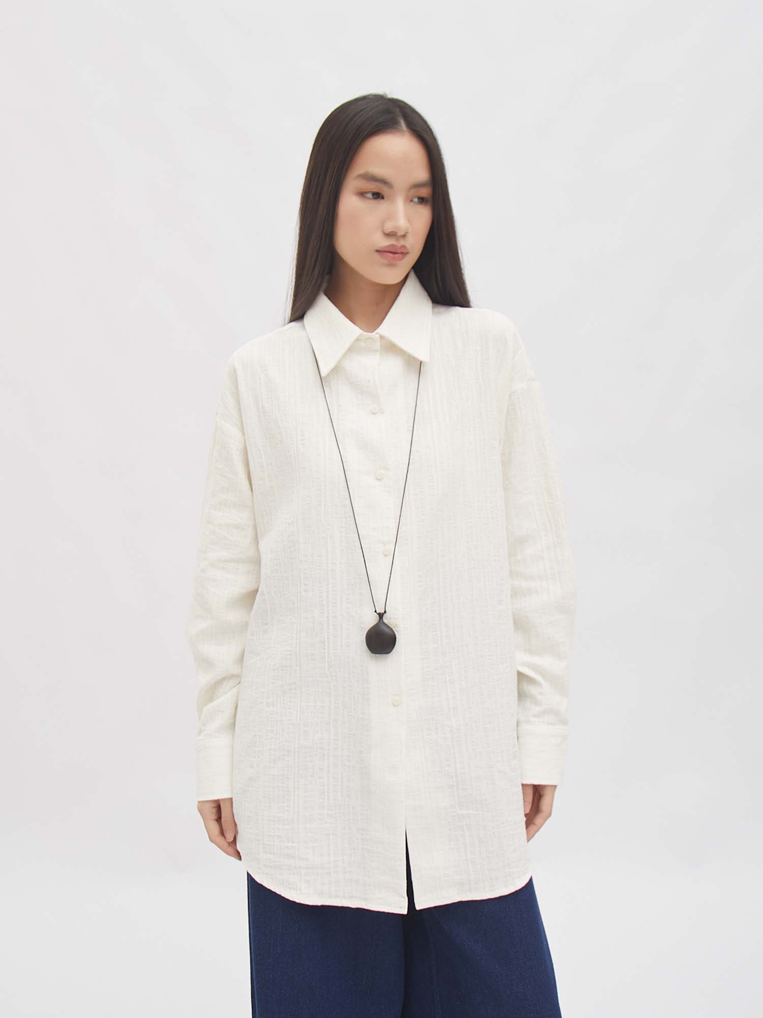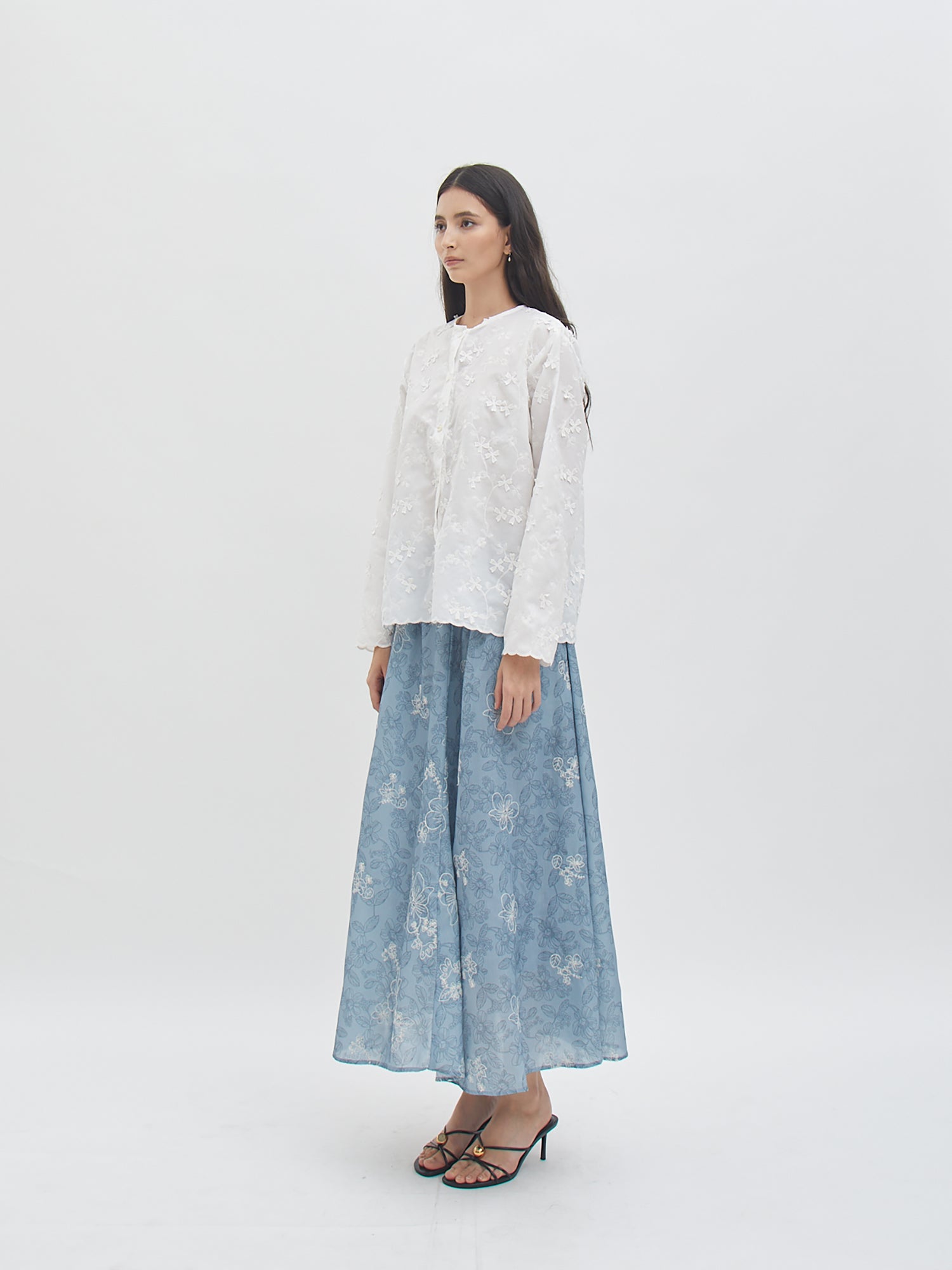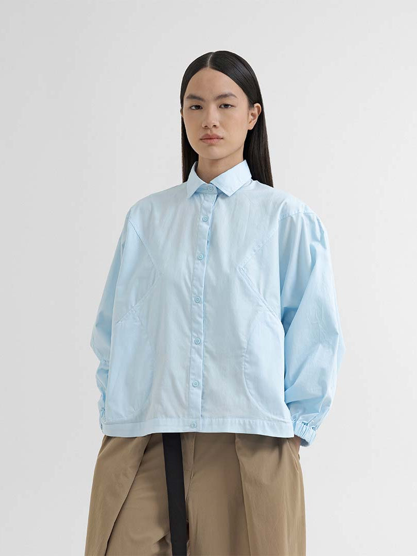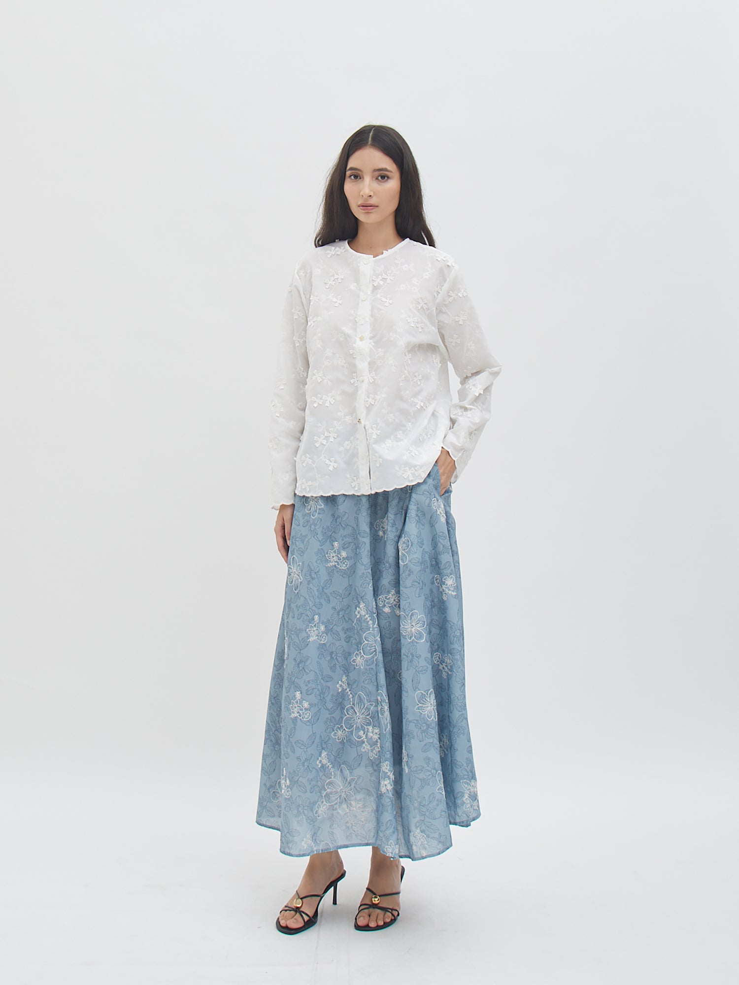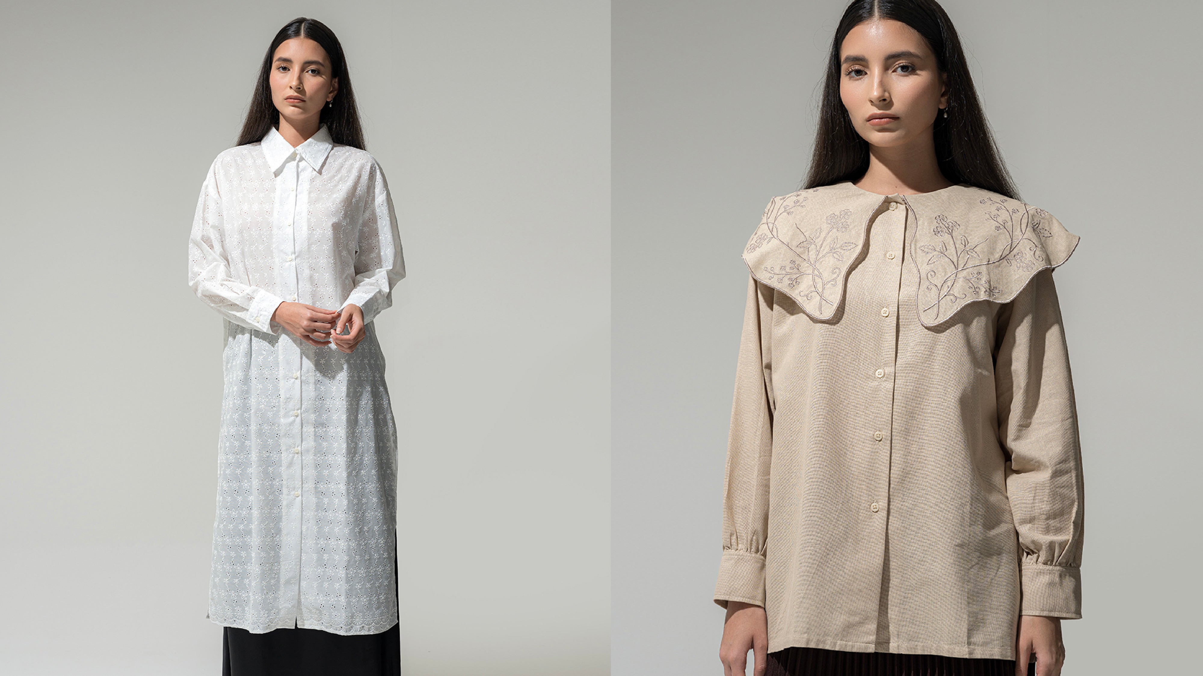 A limited piece for everyday moments. April and Summer Widira with The Carlyn Babe Bag, paired with Tarumizu Dress in Off-White, Amami Skirt in Indigo, and Chiryu Shirt in Pink.