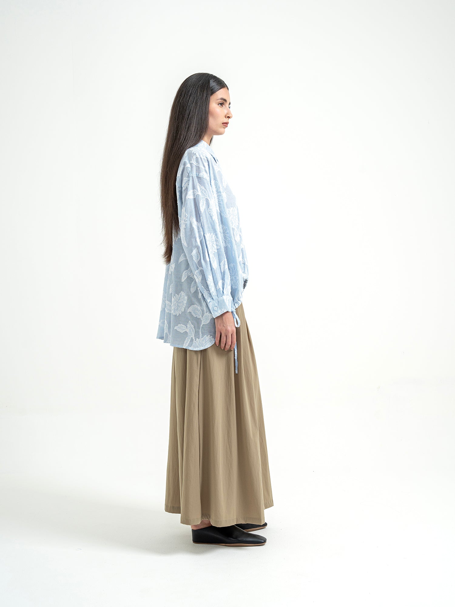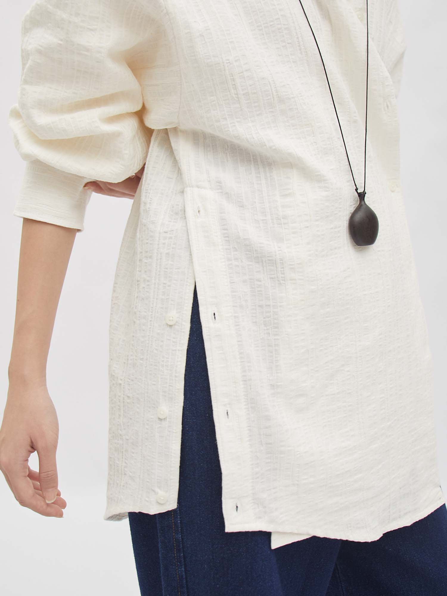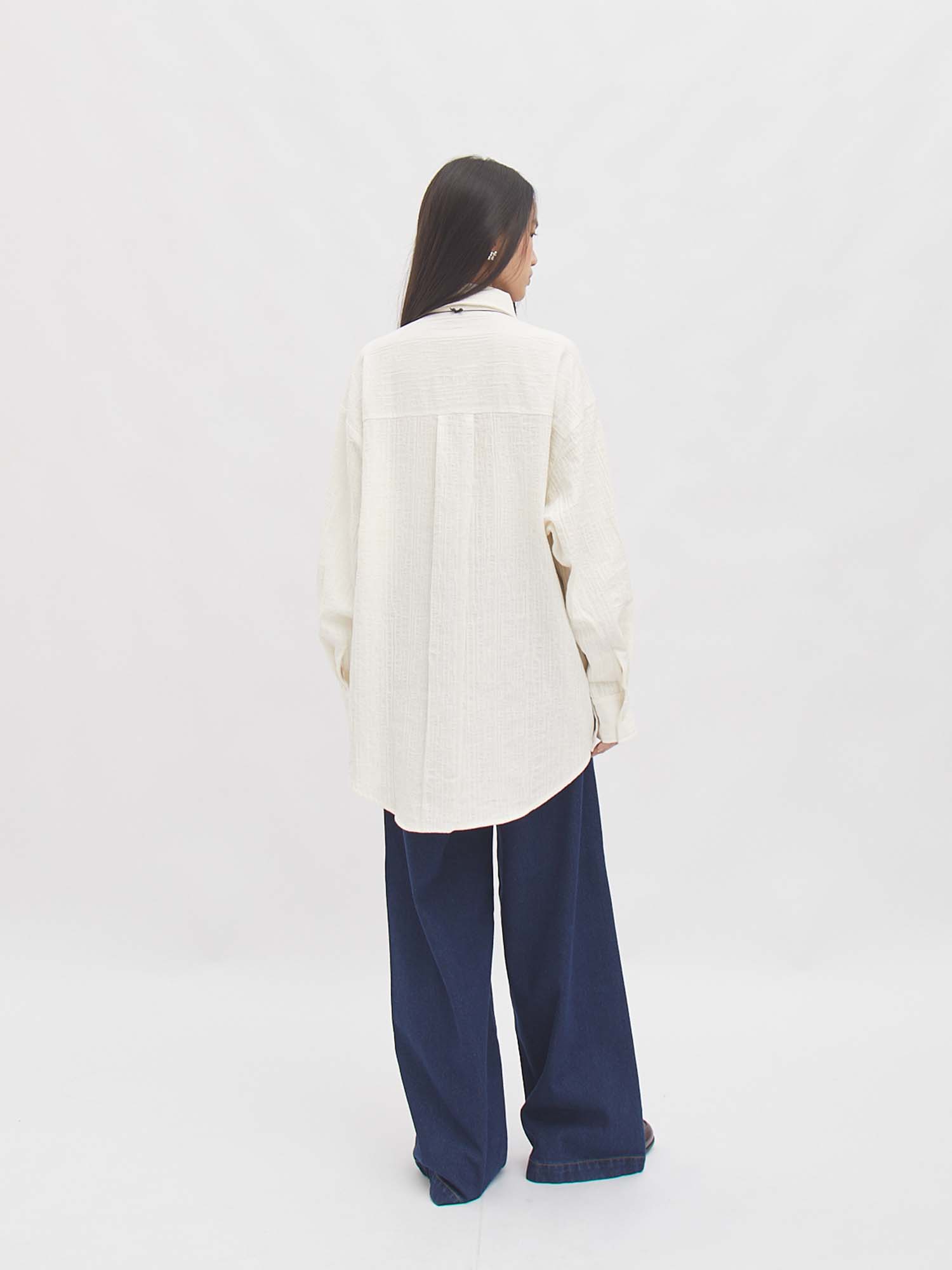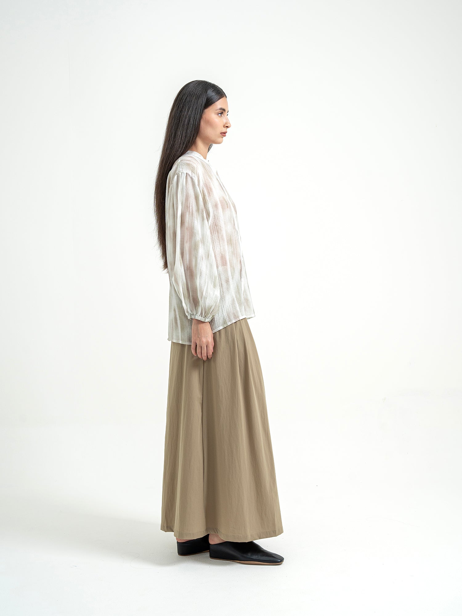 A limited piece for everyday moments. April and Summer Widira with The Carlyn Babe Bag, paired with Tarumizu Dress in Off-White, Amami Skirt in Indigo, and Chiryu Shirt in Pink.