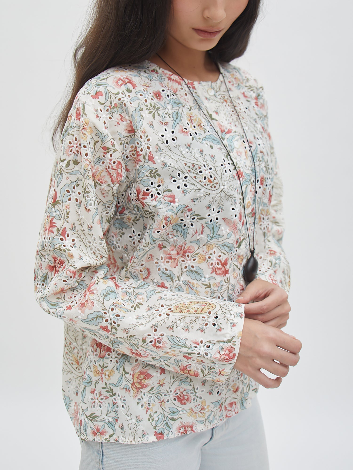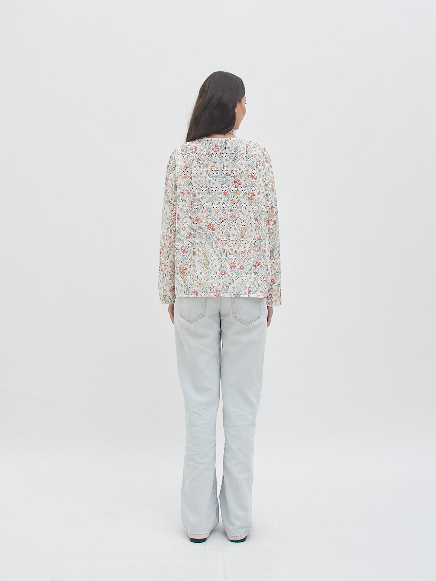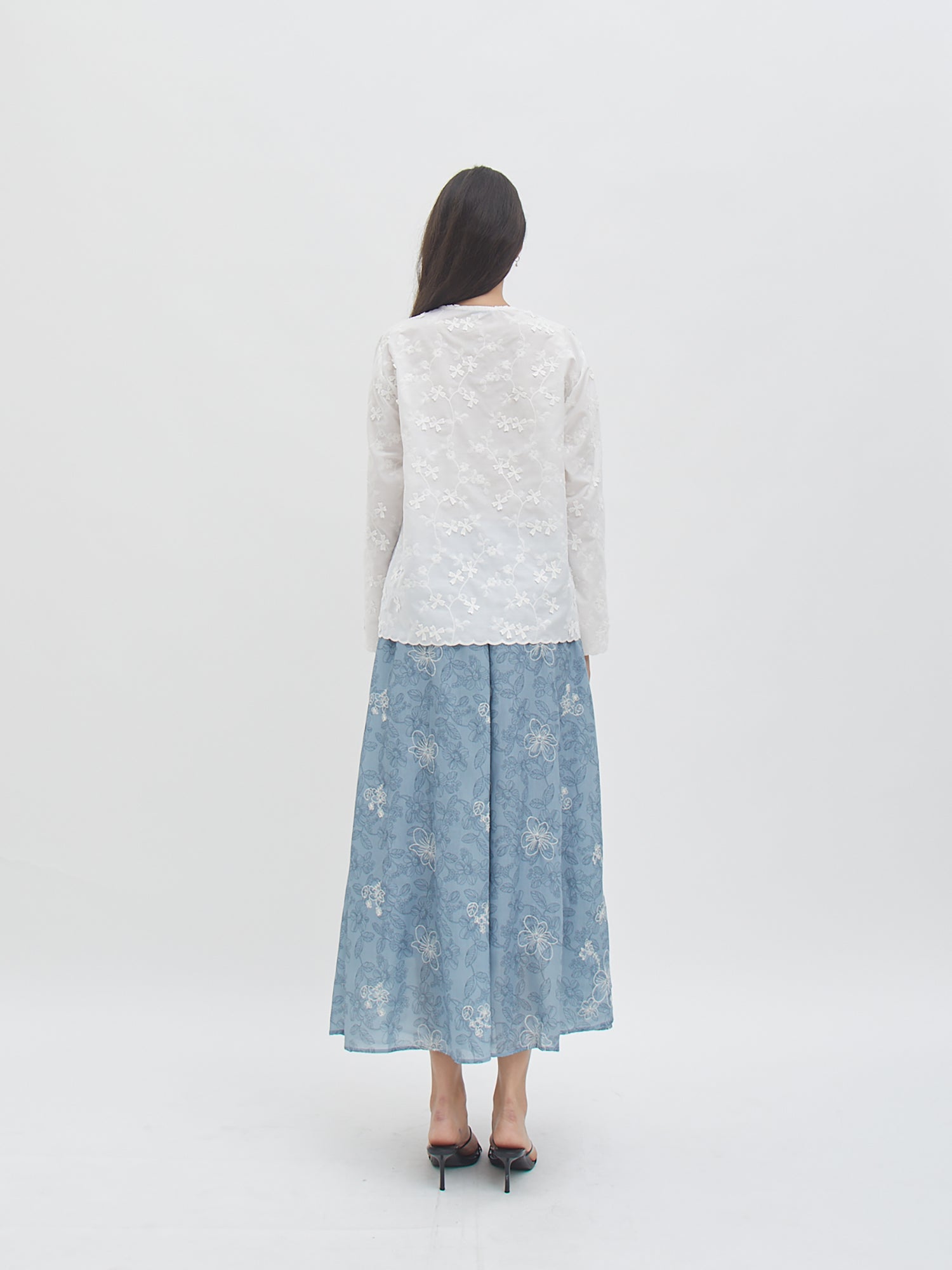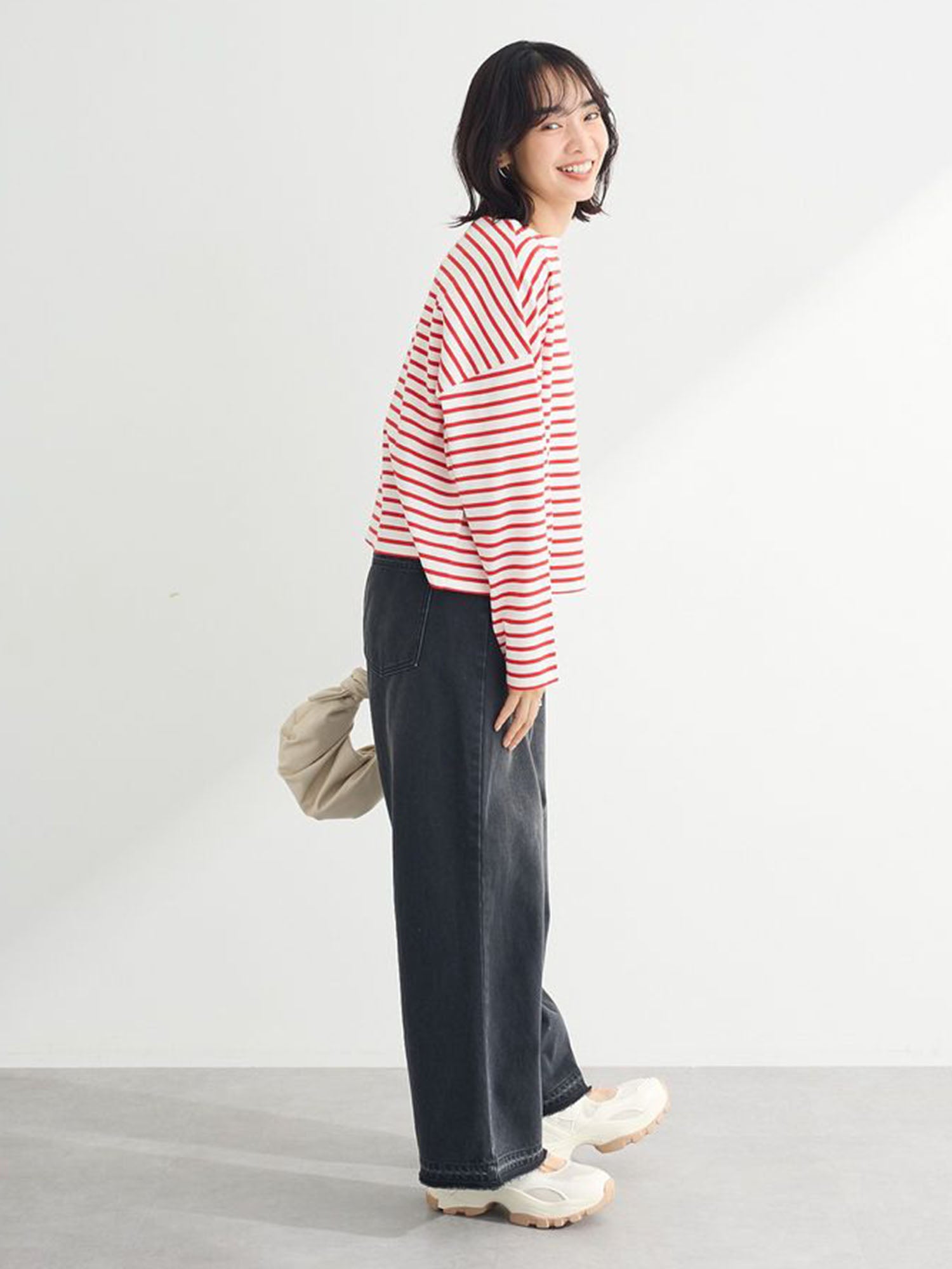 Anggita in full denim ease: Nishiwaki Denim Short Blouson paired Nankoku Tucked Wide Denim Pants.