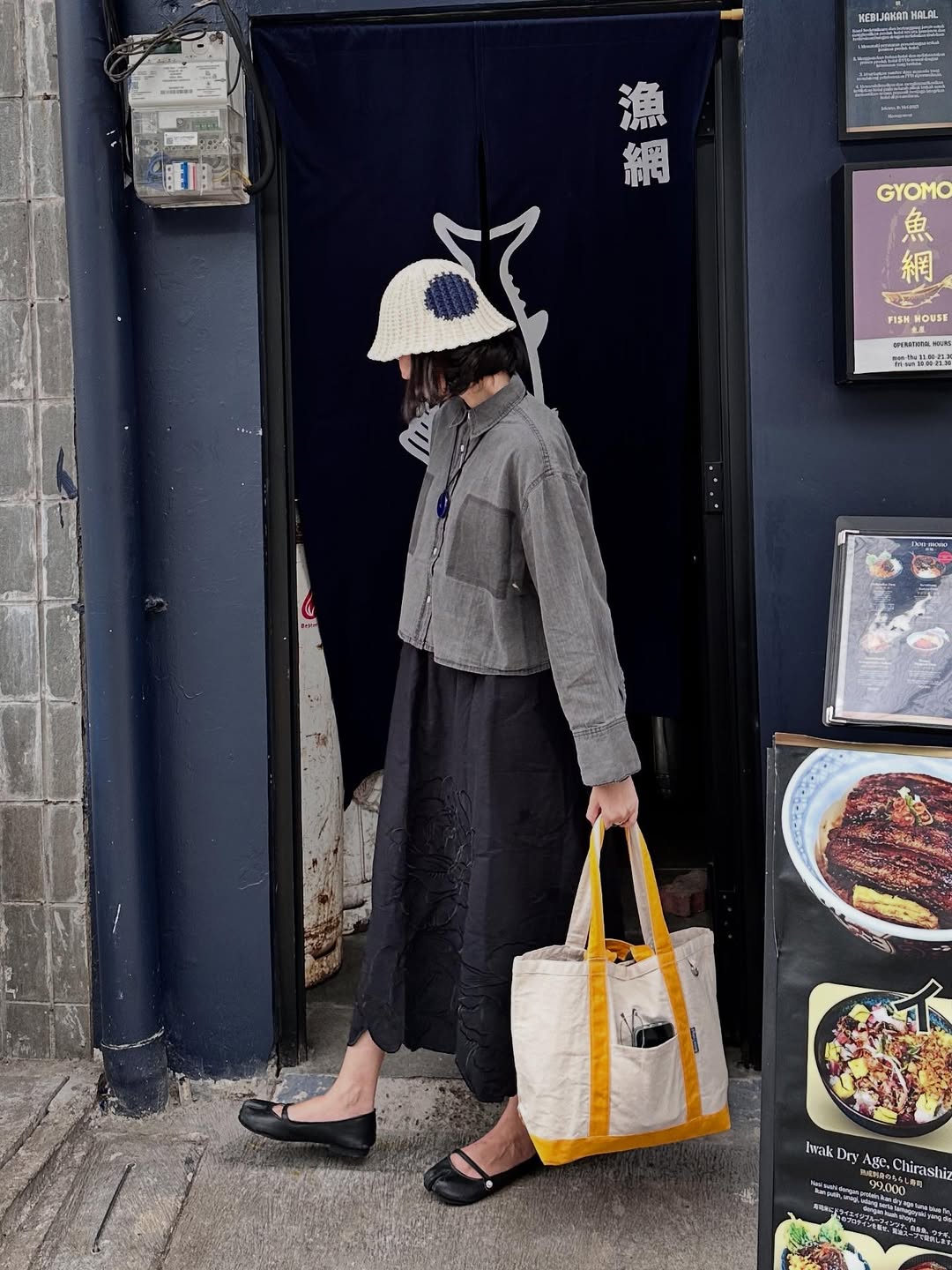 Salsa is wearing Tomioka Denim Shirt and Poppy Maxi Skirt and complimented with Bobo Tote Medium in Yellow