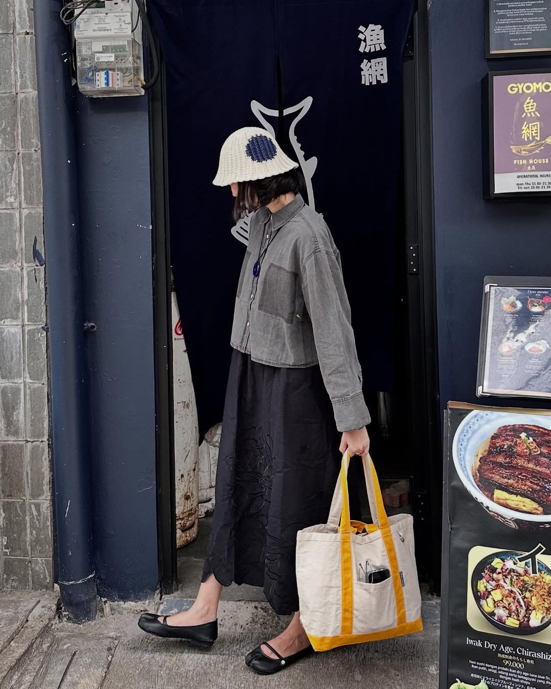 Sharp tailoring meets laid-back ease — completed with the Limited Edition CARLYN Babe Bag for Bobo Tokyo.