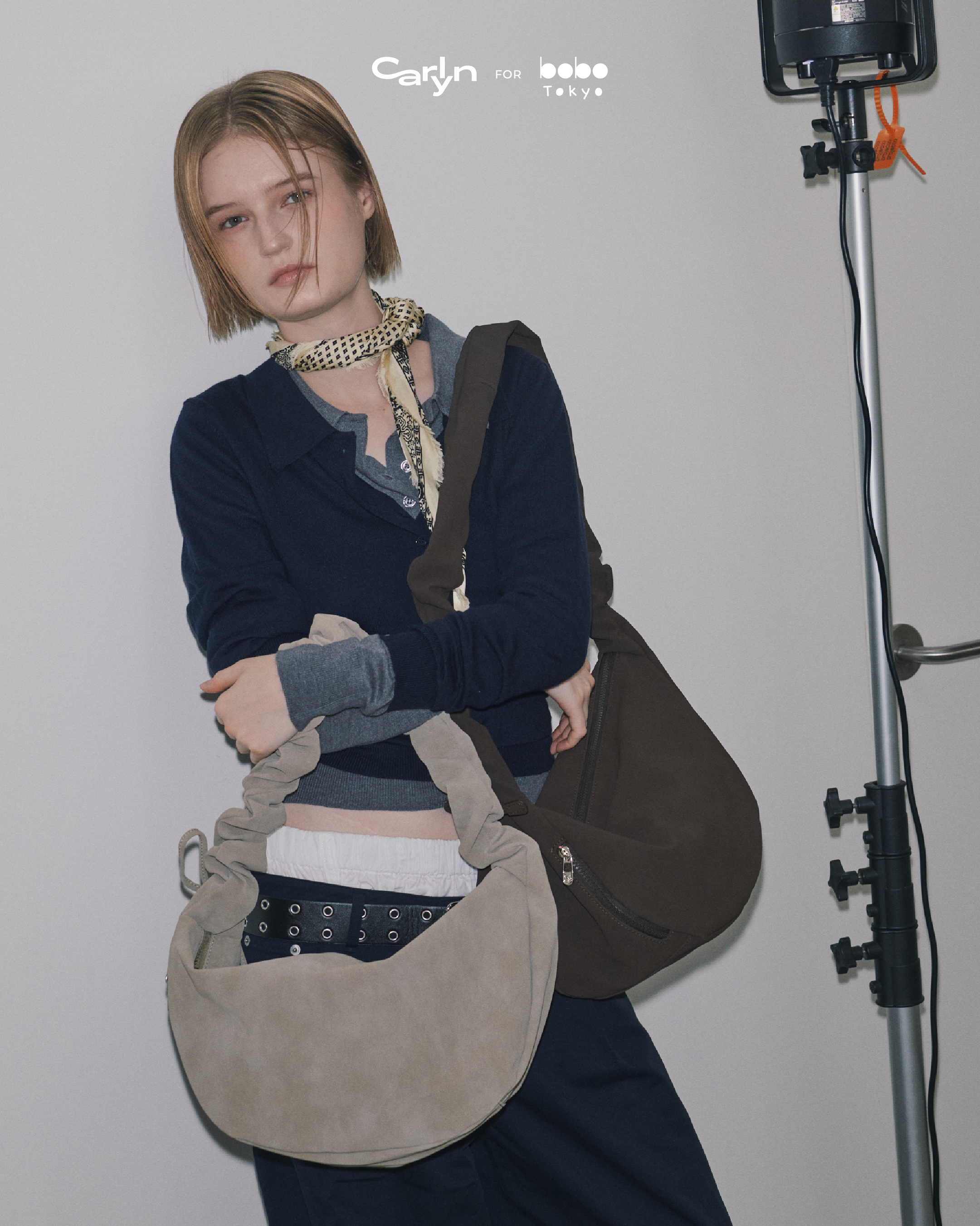 Sharp tailoring meets laid-back ease — completed with the Limited Edition CARLYN Babe Bag for Bobo Tokyo.