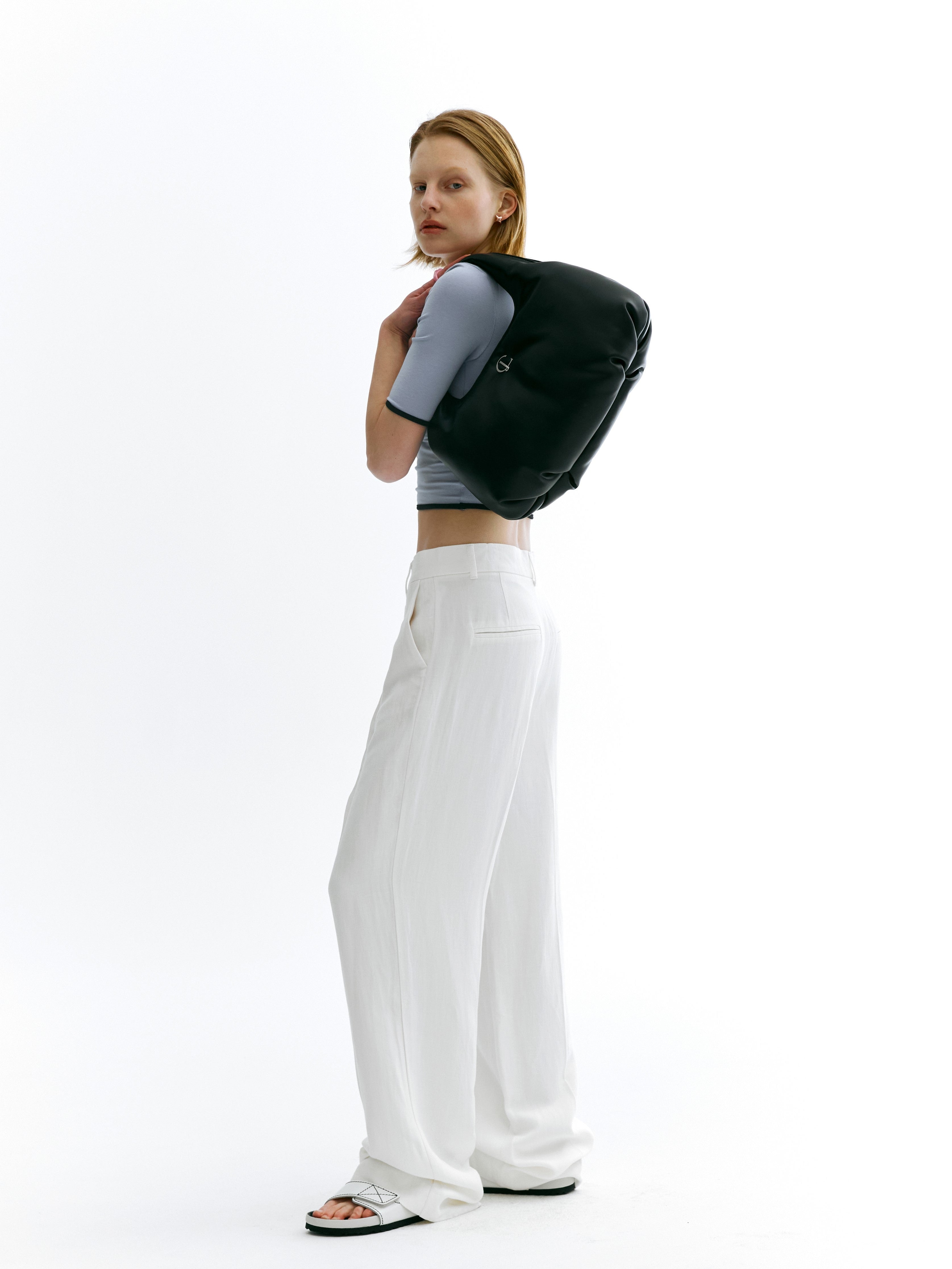 Brenda Pantja is wearing Leiden Set Shirt Tunic Knit Vest in black also paired with black pants and CARLYN bag resuting in monocrome look.