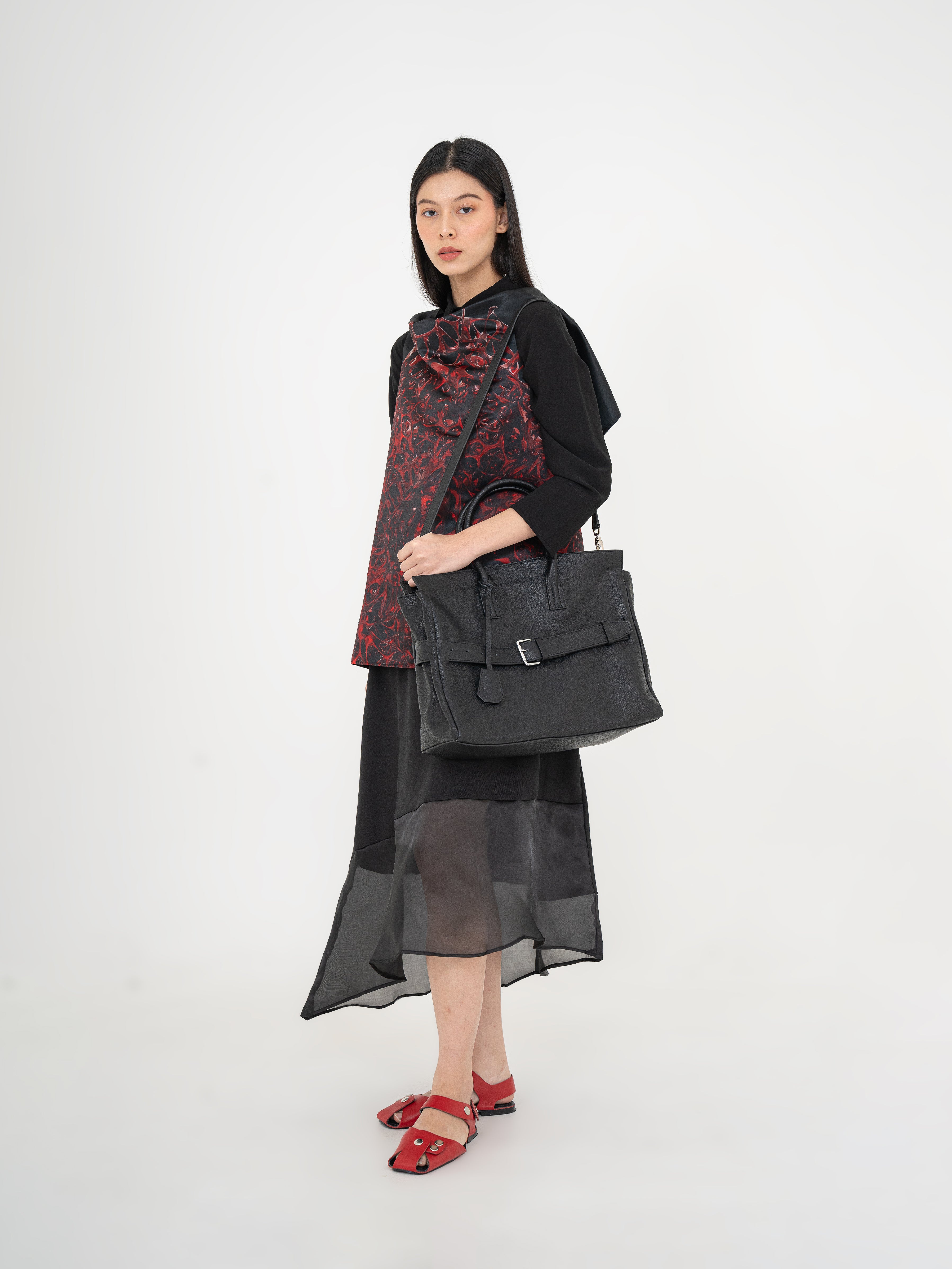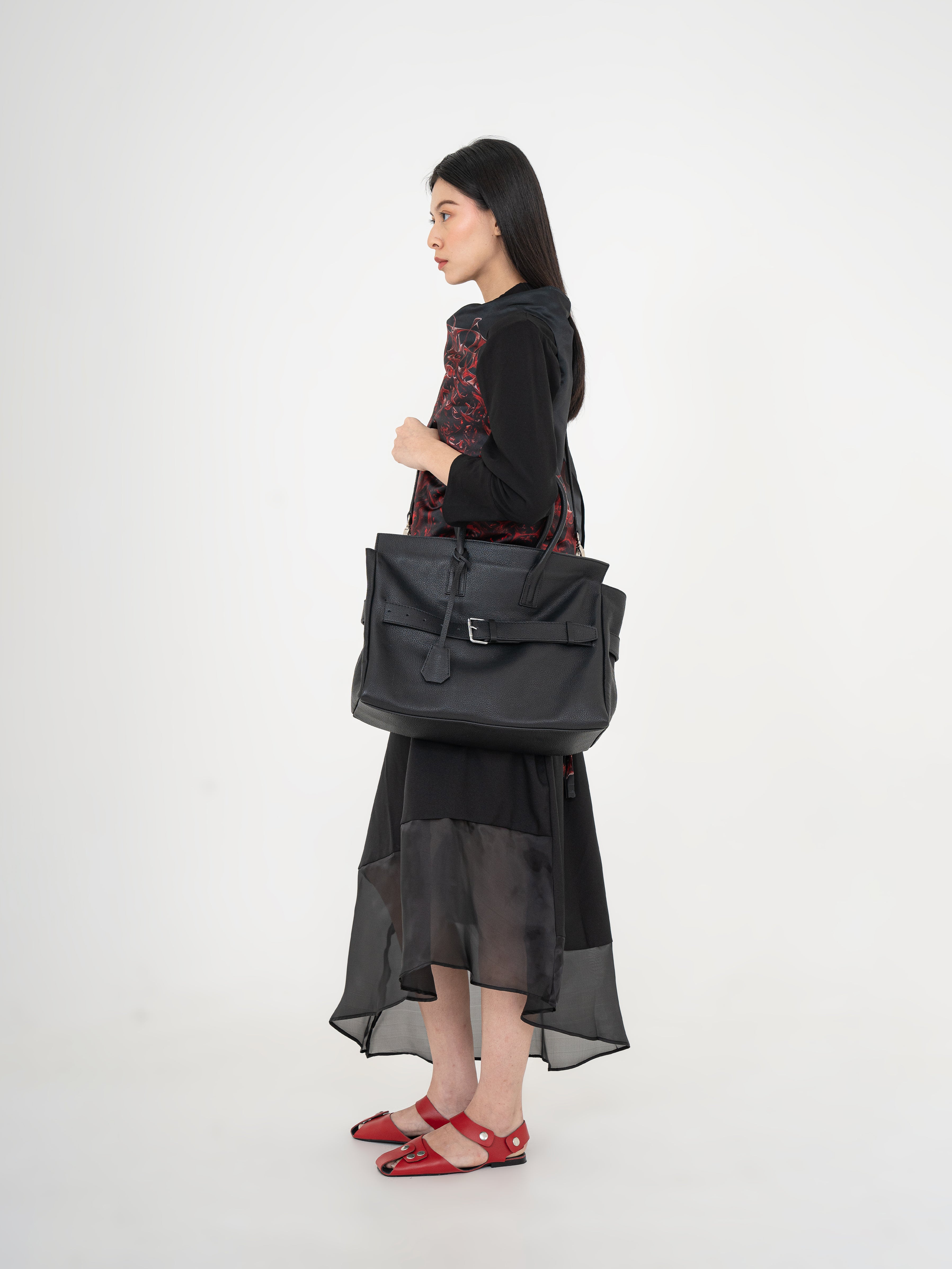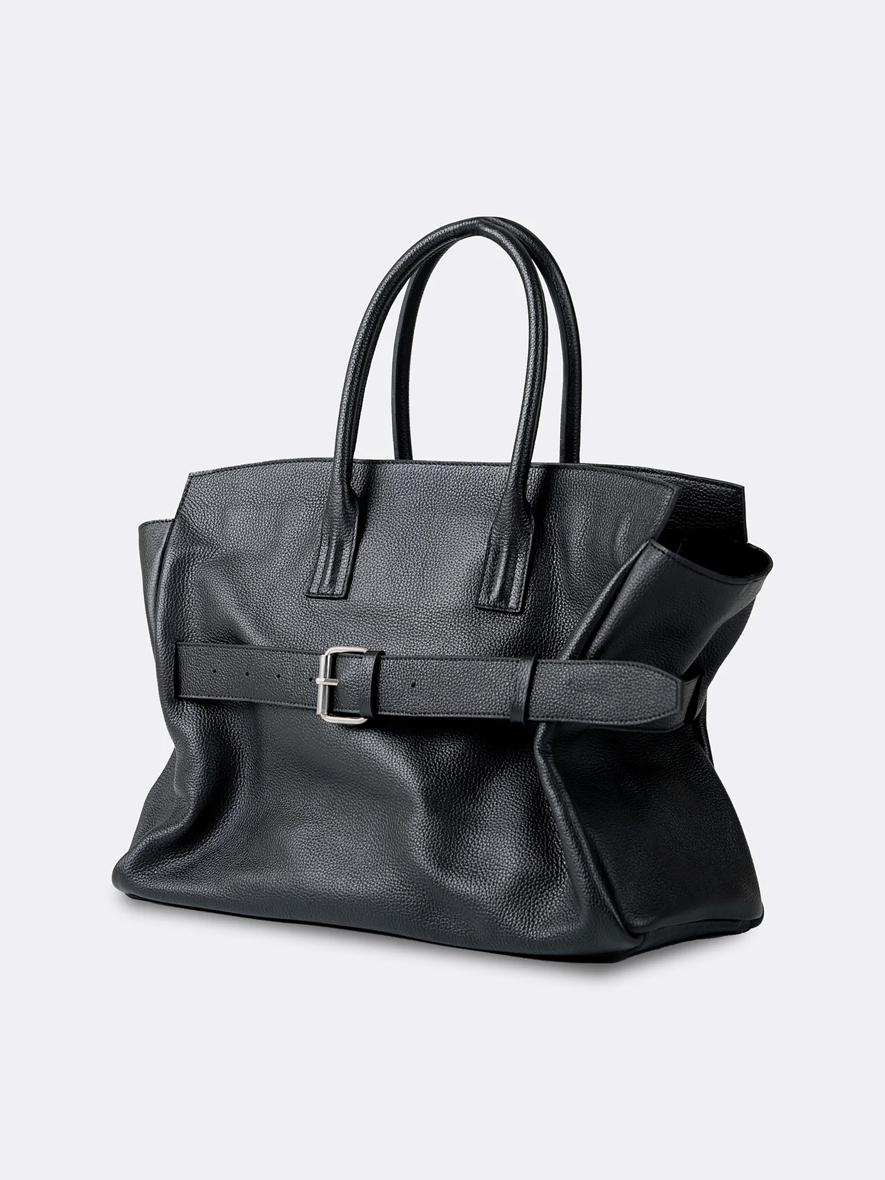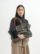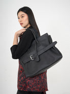 The Affix Bag is a bold and spacious statement piece designed for versatility and functionality. Featuring a structured yet slightly slouchy silhouette, it balances a refined aesthetic with everyday practicality. The top tubular handles allow for a comfortable grip, while the detachable strap provides the option to wear it over the shoulder.