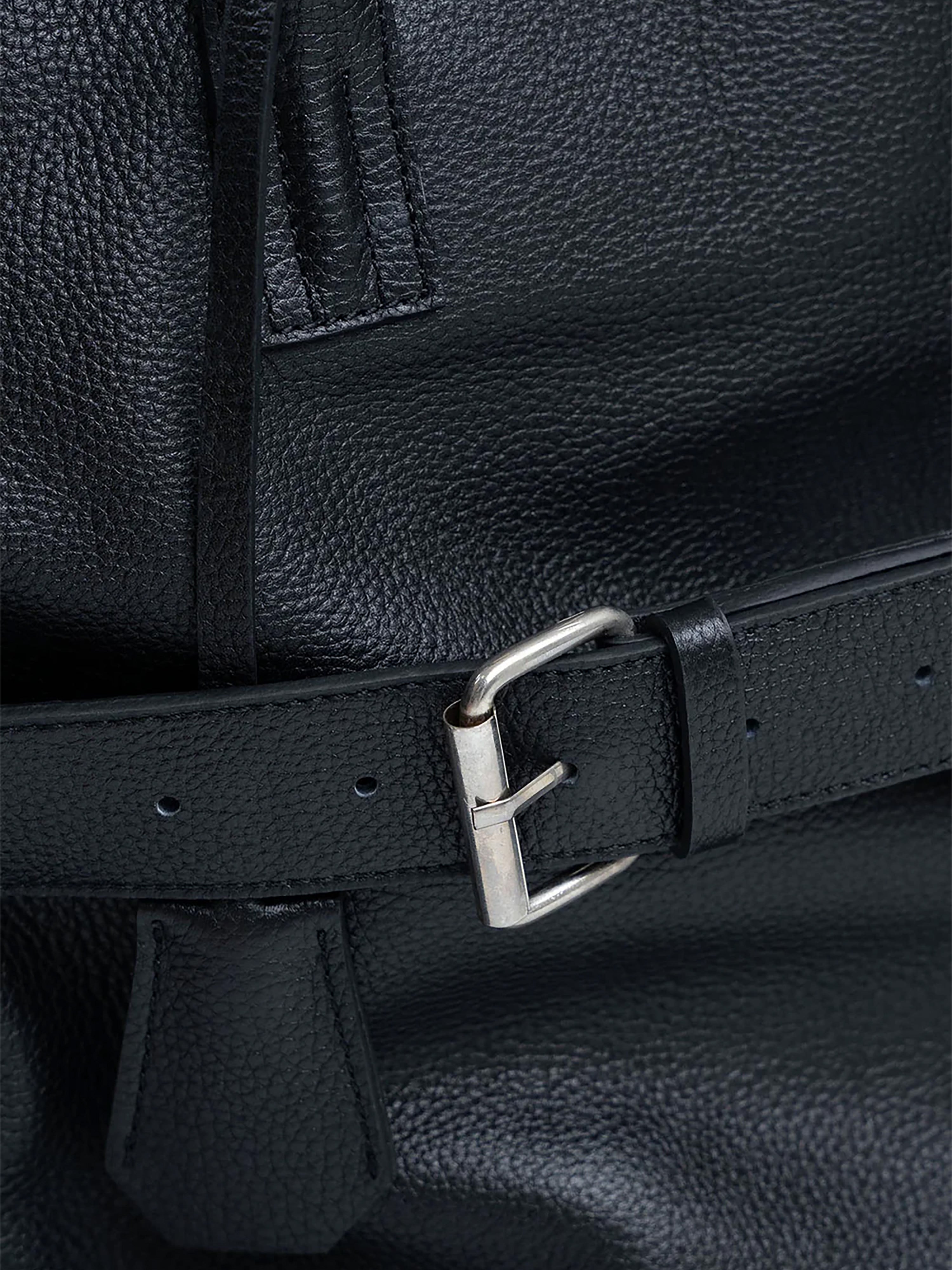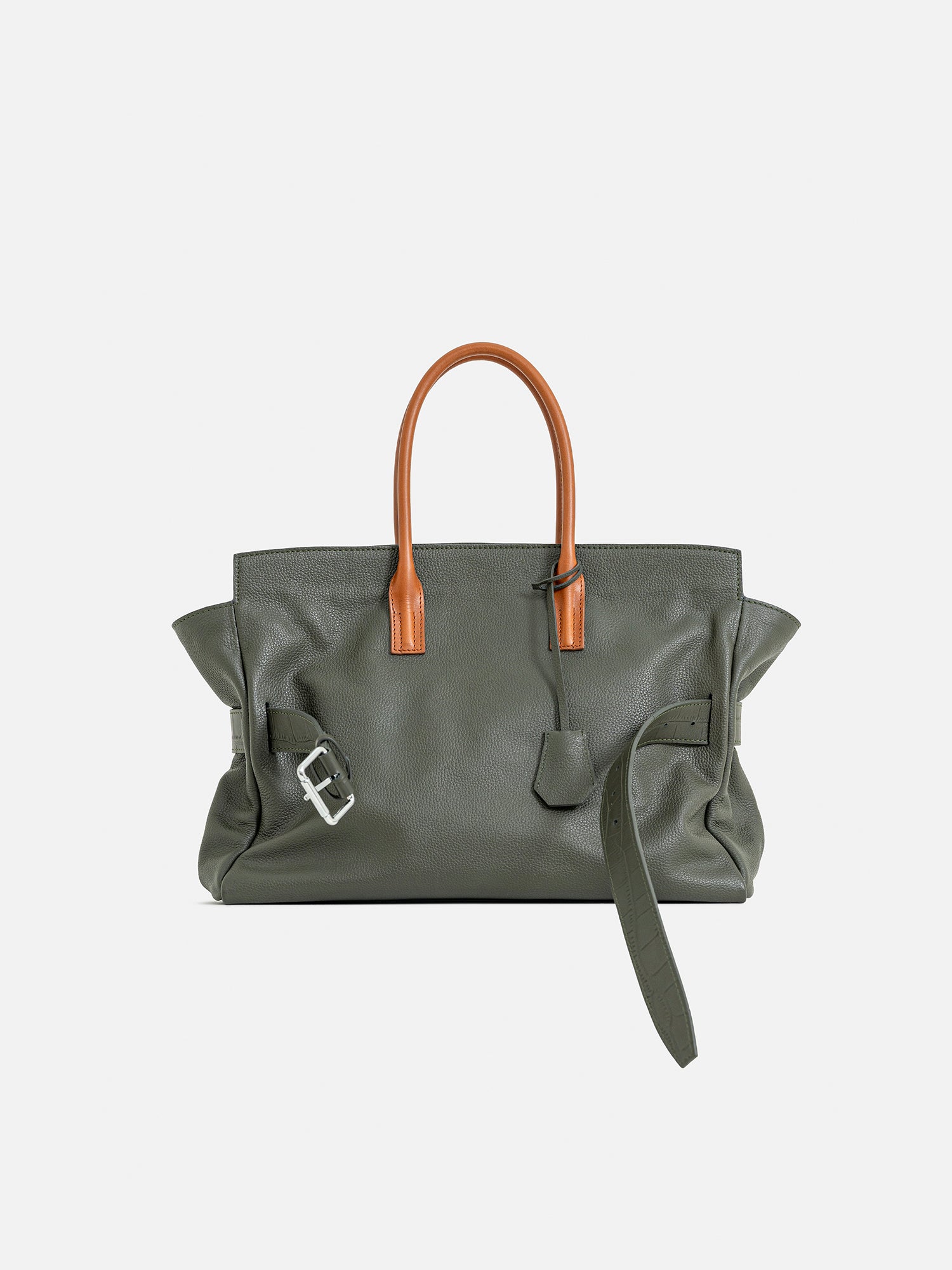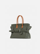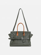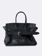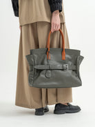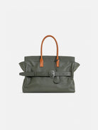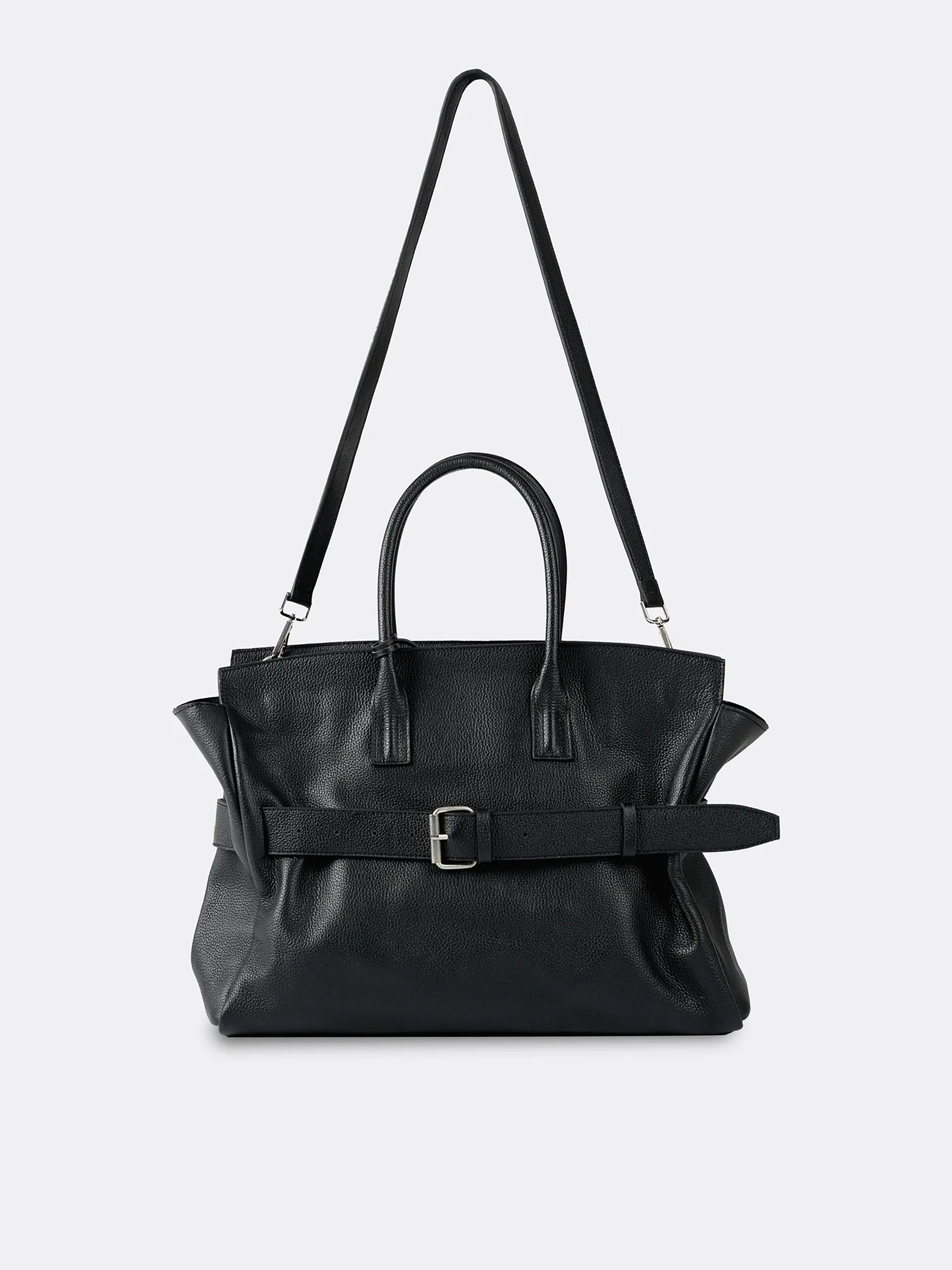 A standout feature is the adjustable leather belt with a silver-tone buckle, adding a distinctive design element and enhancing its secure closure. The spacious main compartment is complemented by an interior slip pocket and zip pocket for better organization. Lined with soft cotton, this bag is perfect for those who need a chic yet practical carry-all for daily use.