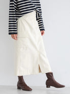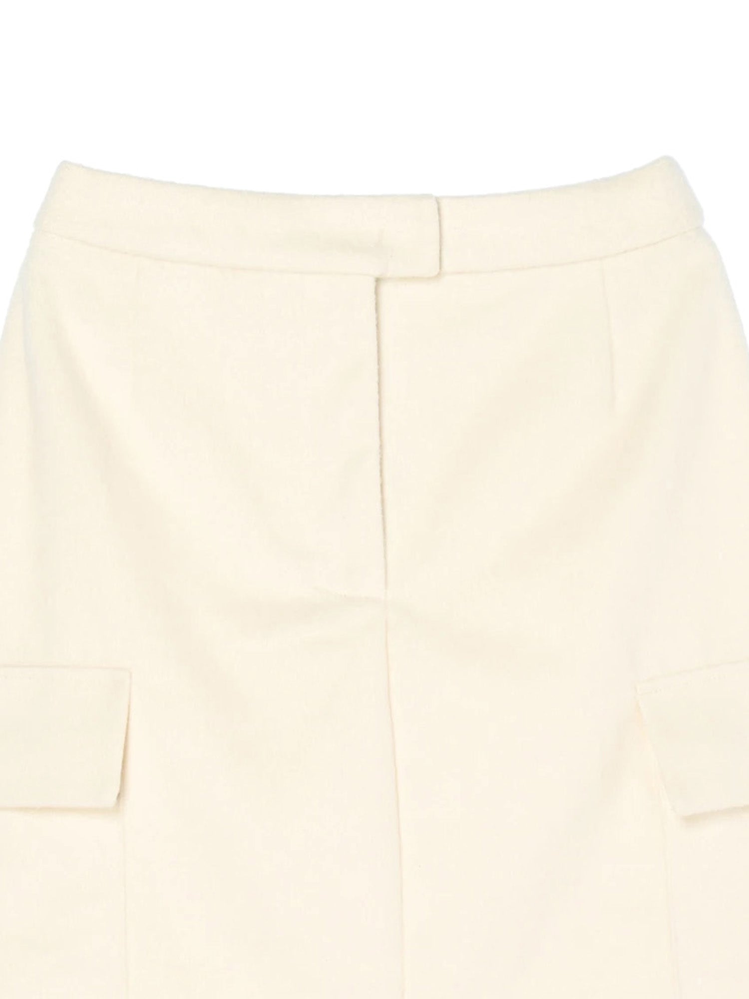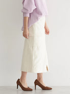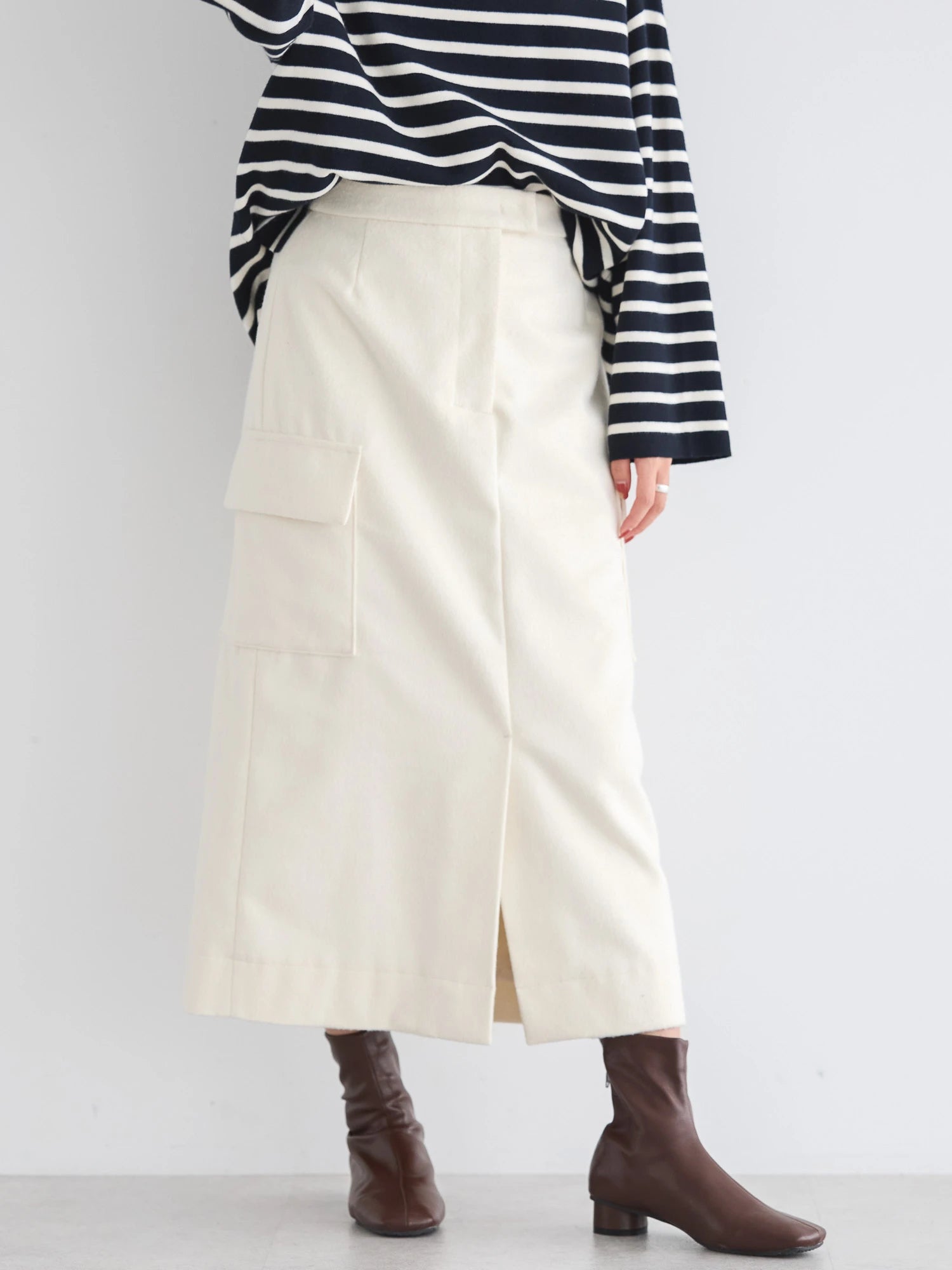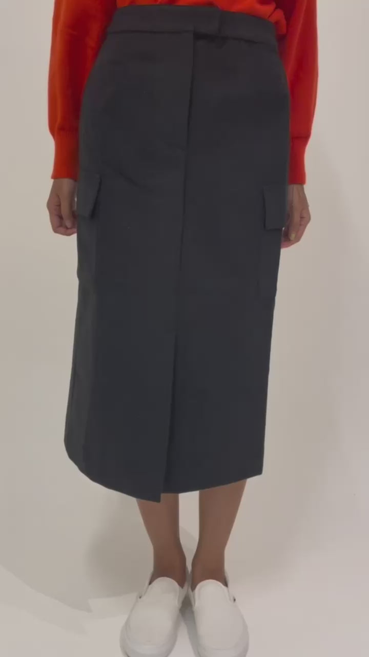 Rok wanita ini didesain dengan kancing dan resleting di bagian depan. Terdapat dua saku dengan flap pada bagian depan rok. Memiliki detail belahan pada bagian depan sehingga nyaman saat dipakai berjalan. Memiliki bahan yang halus sehingga nyaman saat dipakai. Cocok untuk dikenakan pada acara formal maupun non formal.