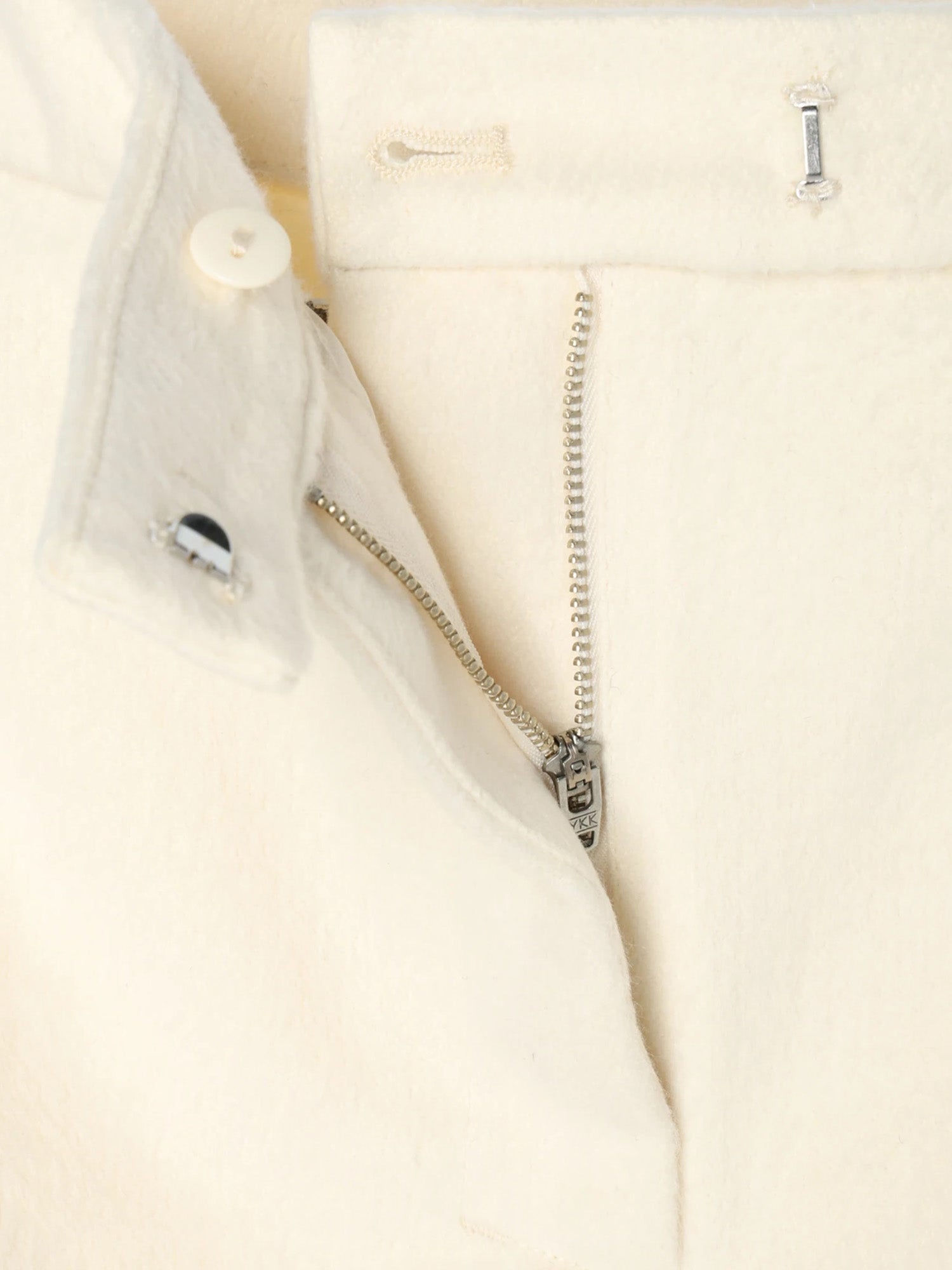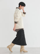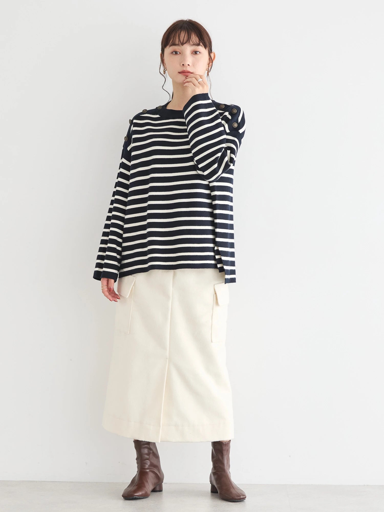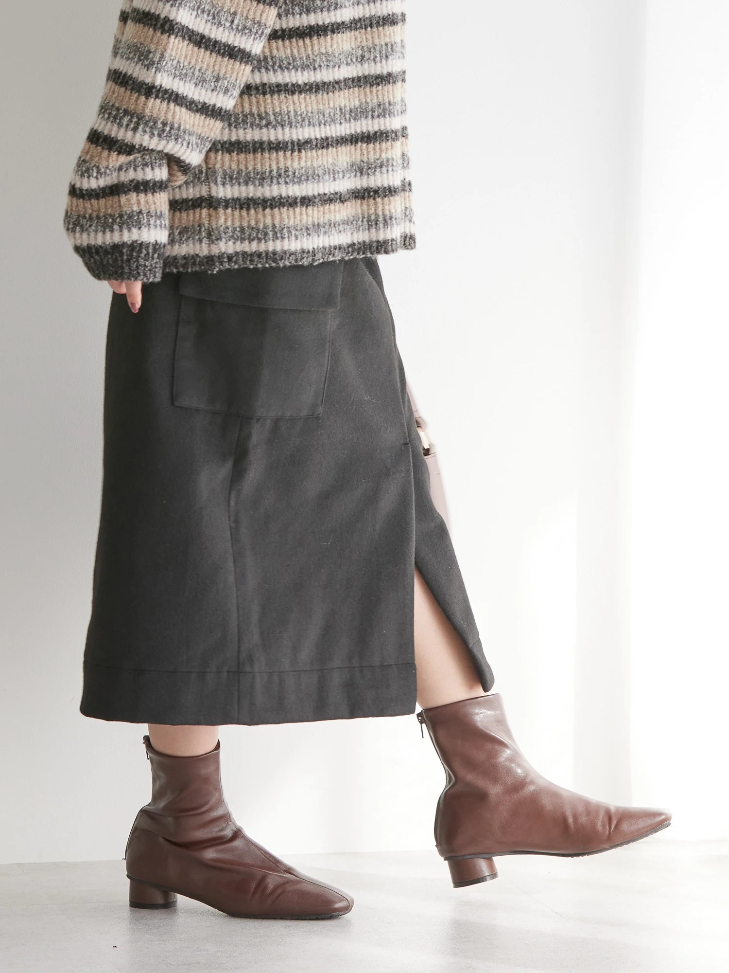 Rok wanita ini didesain dengan kancing dan resleting di bagian depan. Terdapat dua saku dengan flap pada bagian depan rok. Memiliki detail belahan pada bagian depan sehingga nyaman saat dipakai berjalan. Memiliki bahan yang halus sehingga nyaman saat dipakai. Cocok untuk dikenakan pada acara formal maupun non formal.
