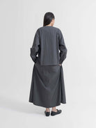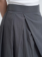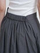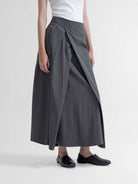 Rok panjang dengan desain overlap yang memberikan siluet elegan dan modern. Dilengkapi detail karet di bagian belakang pinggang untuk kenyamanan maksimal, serta bahan ringan bertekstur yang jatuh indah. Cocok untuk tampilan chic di acara kasual maupun formal.