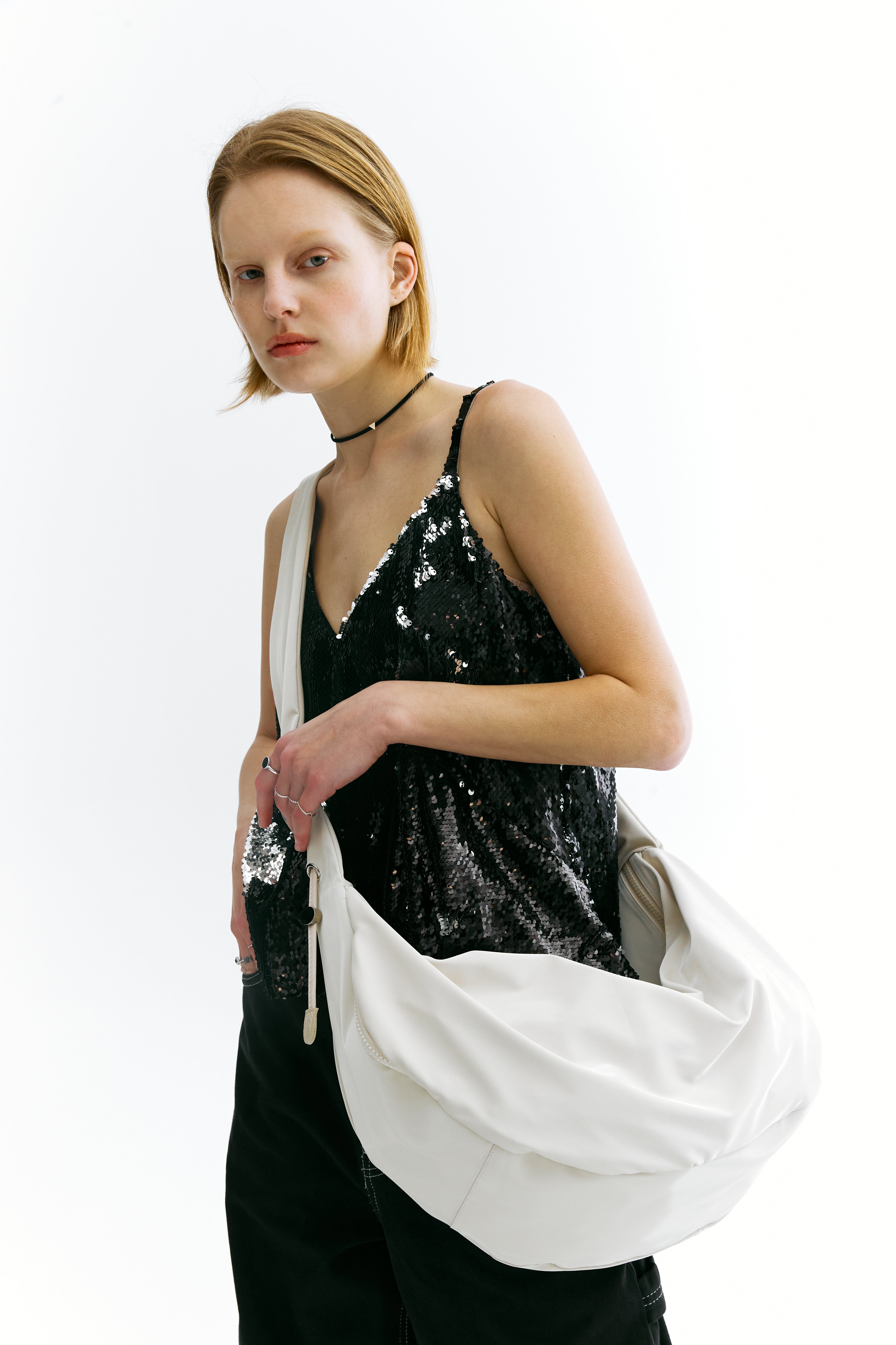 BABE LARGE bag has a luxurious and unique glossy texture. It also provides a comfortable silhouette that fits the body perfectly when worn. Most of the belongings are large enough to store and are recommended as a genderless bag.