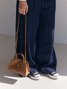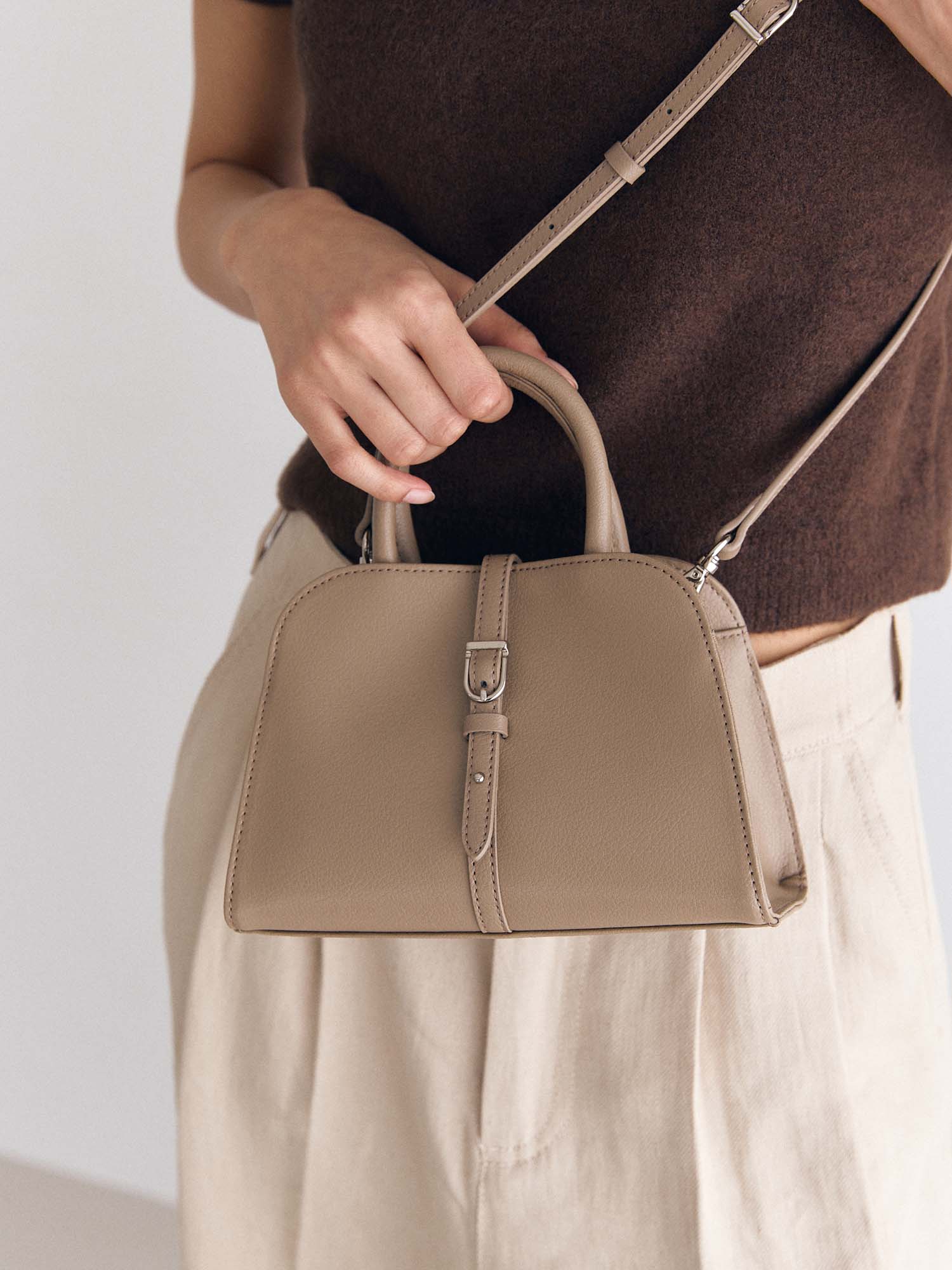 Features a magnetic closure, top handle, and adjustable crossbody strap