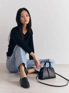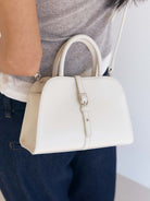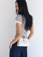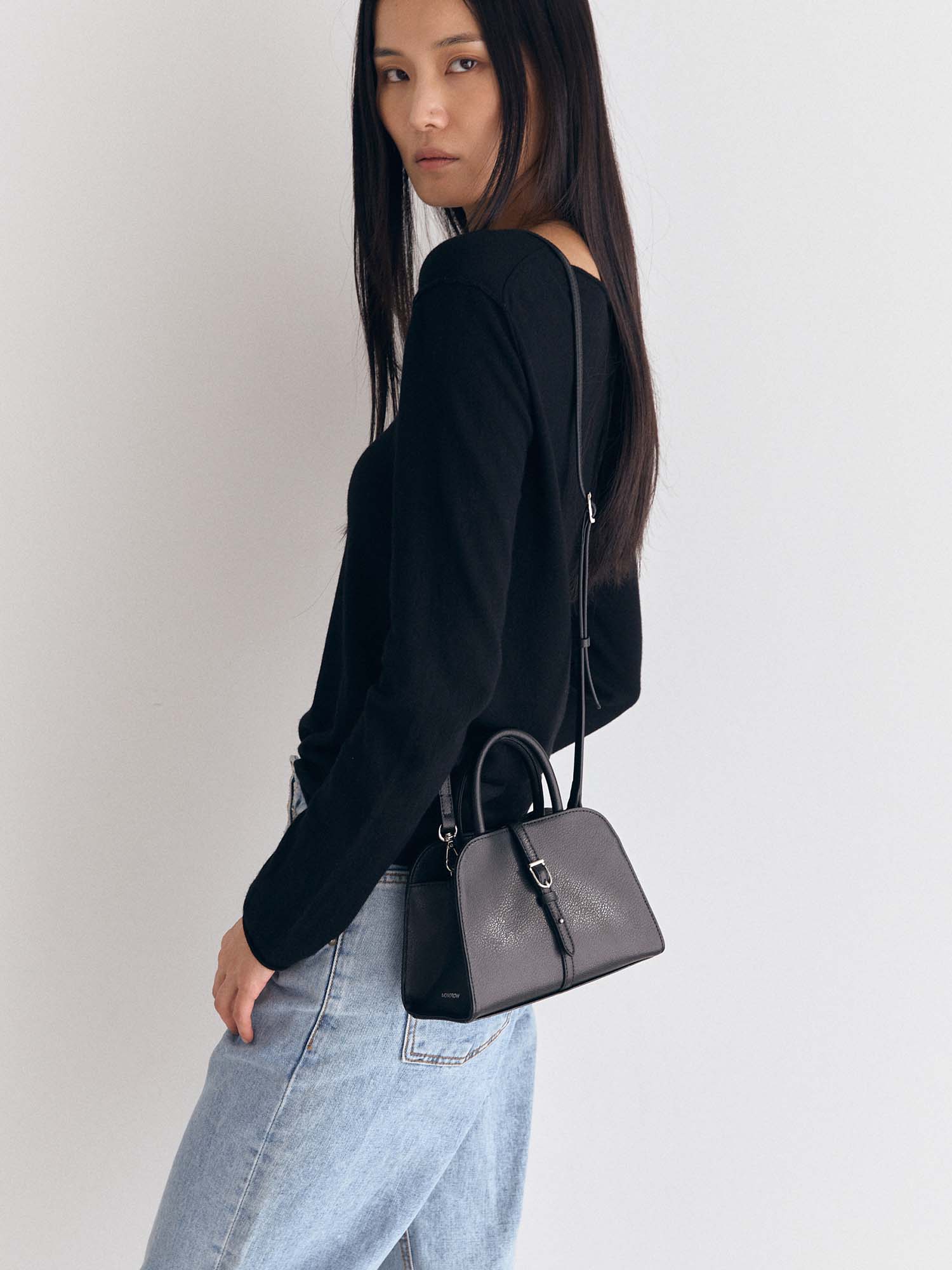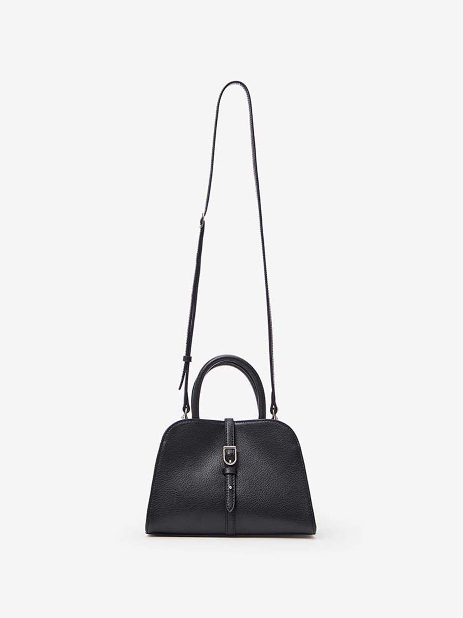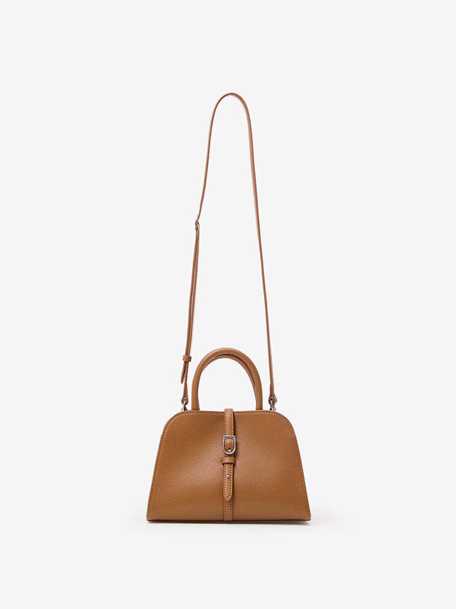 A sleek and structured silhouette crafted from recycled leather, this bag blends timeless elegance with modern sustainability. The perfect size to carry your daily essentials, featuring a clean buckle accent and a detachable, adjustable strap for multiple styling options.