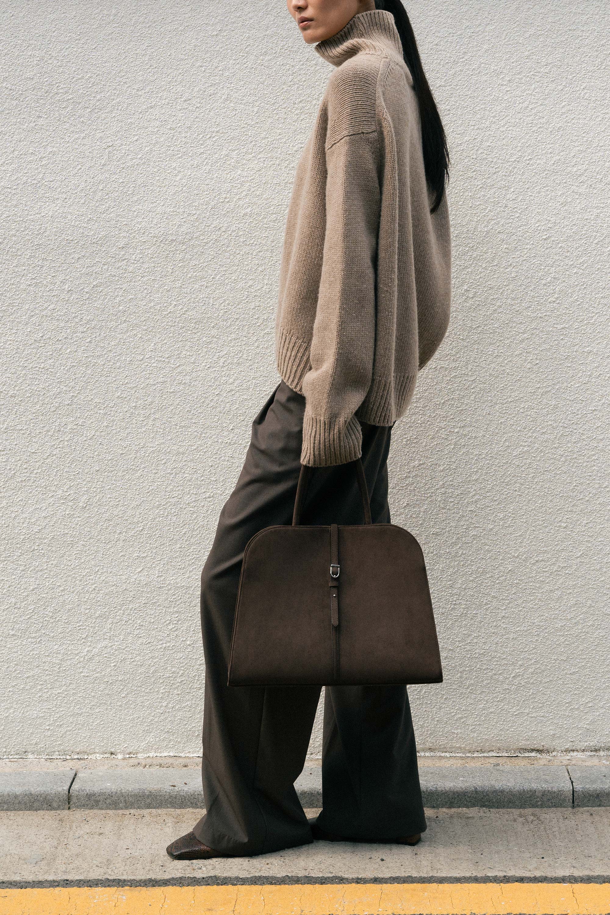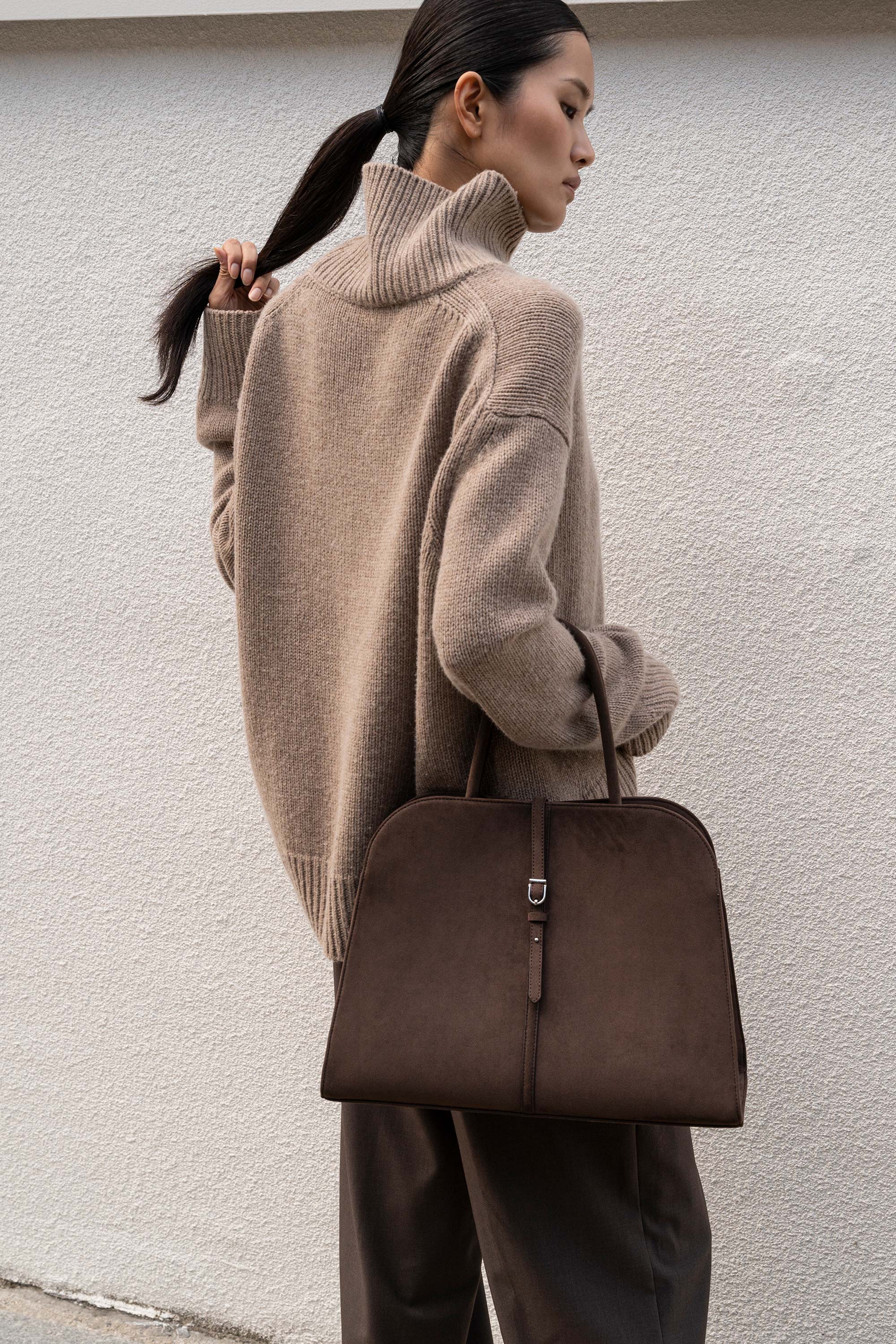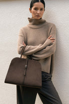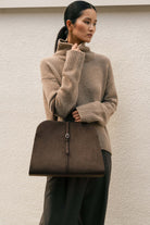 A refined tote designed to make a quiet statement. Blanc Suede Large features a sleek dome silhouette with a soft suede-like finish, offering a clean, structured look. Its spacious interior makes it ideal for work or travel, fitting your daily must-haves with ease and elegance.