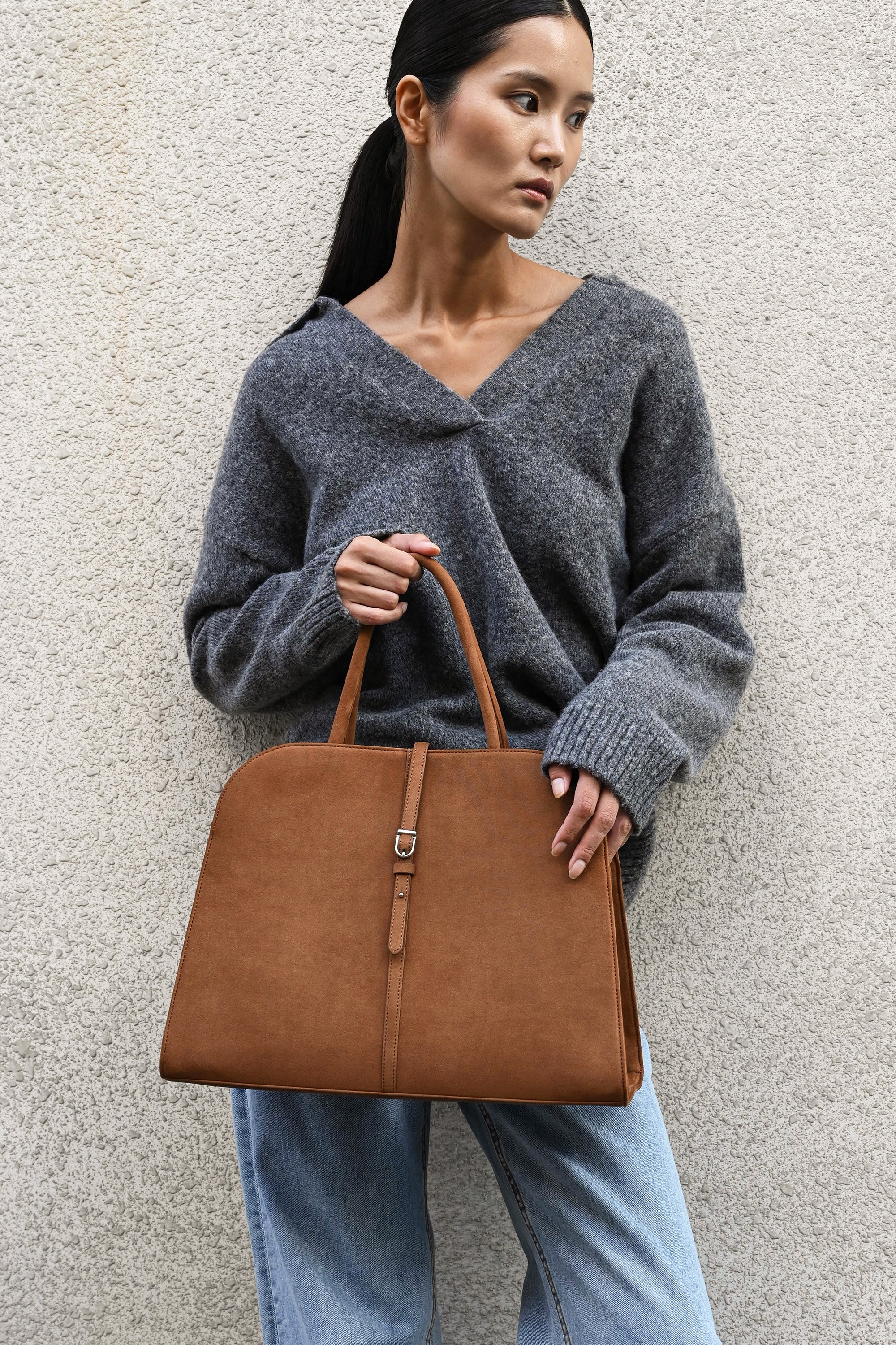 Top handle design with buckle detail
