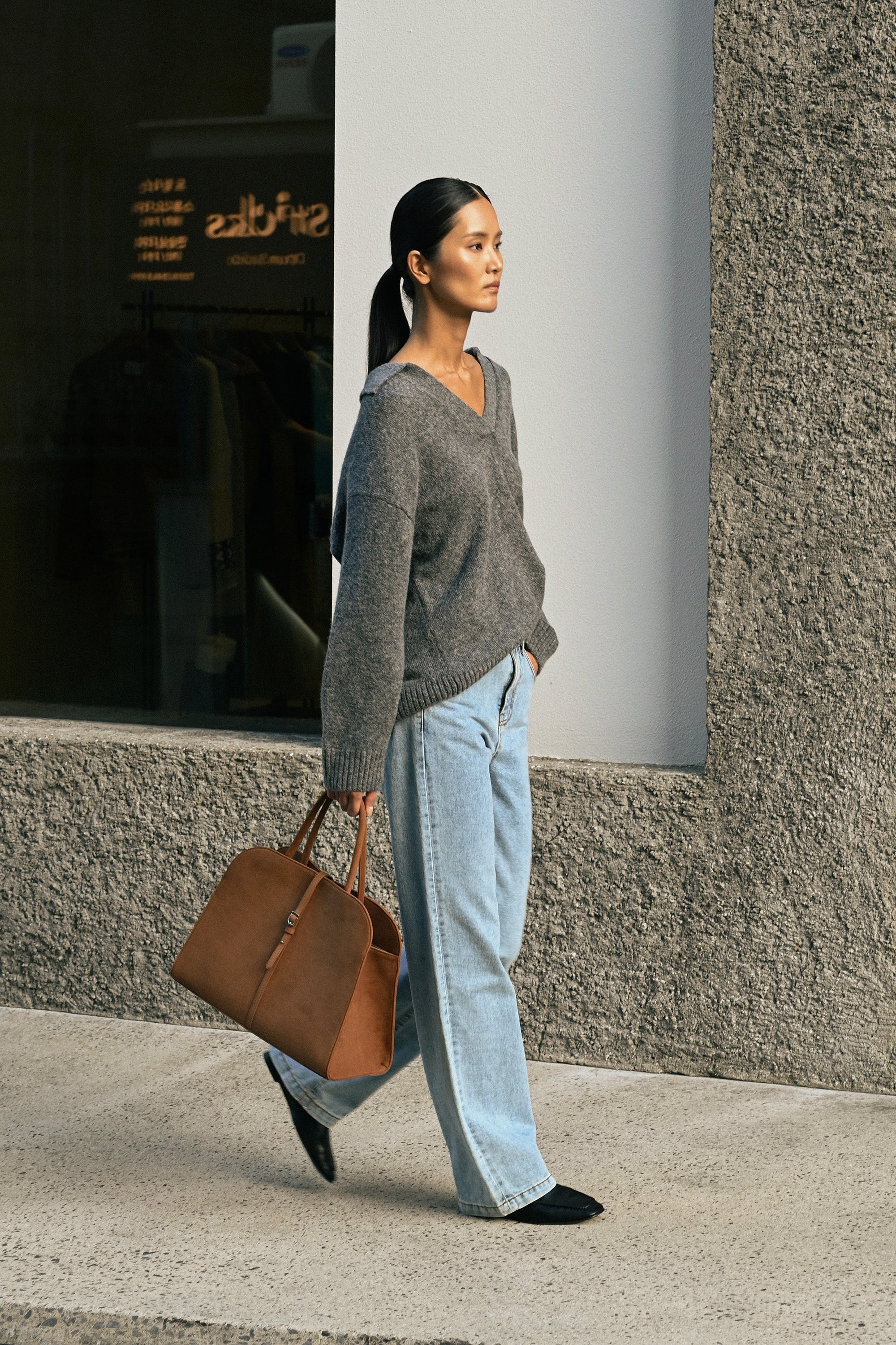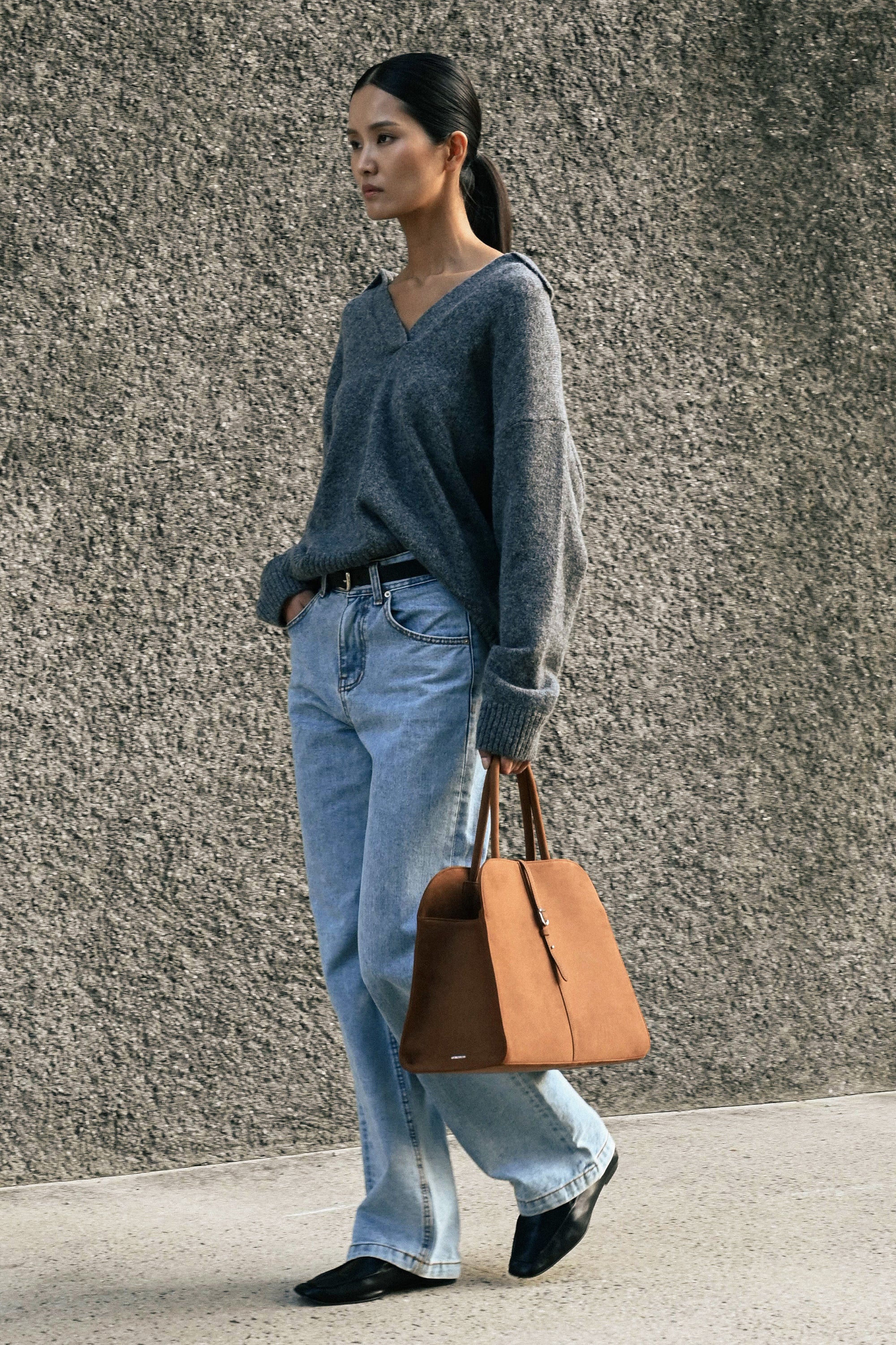 Because suede is a material that can easily transfer color to clothes when worn with frequent friction, we recommend that you wear it with dark-colored clothes.