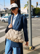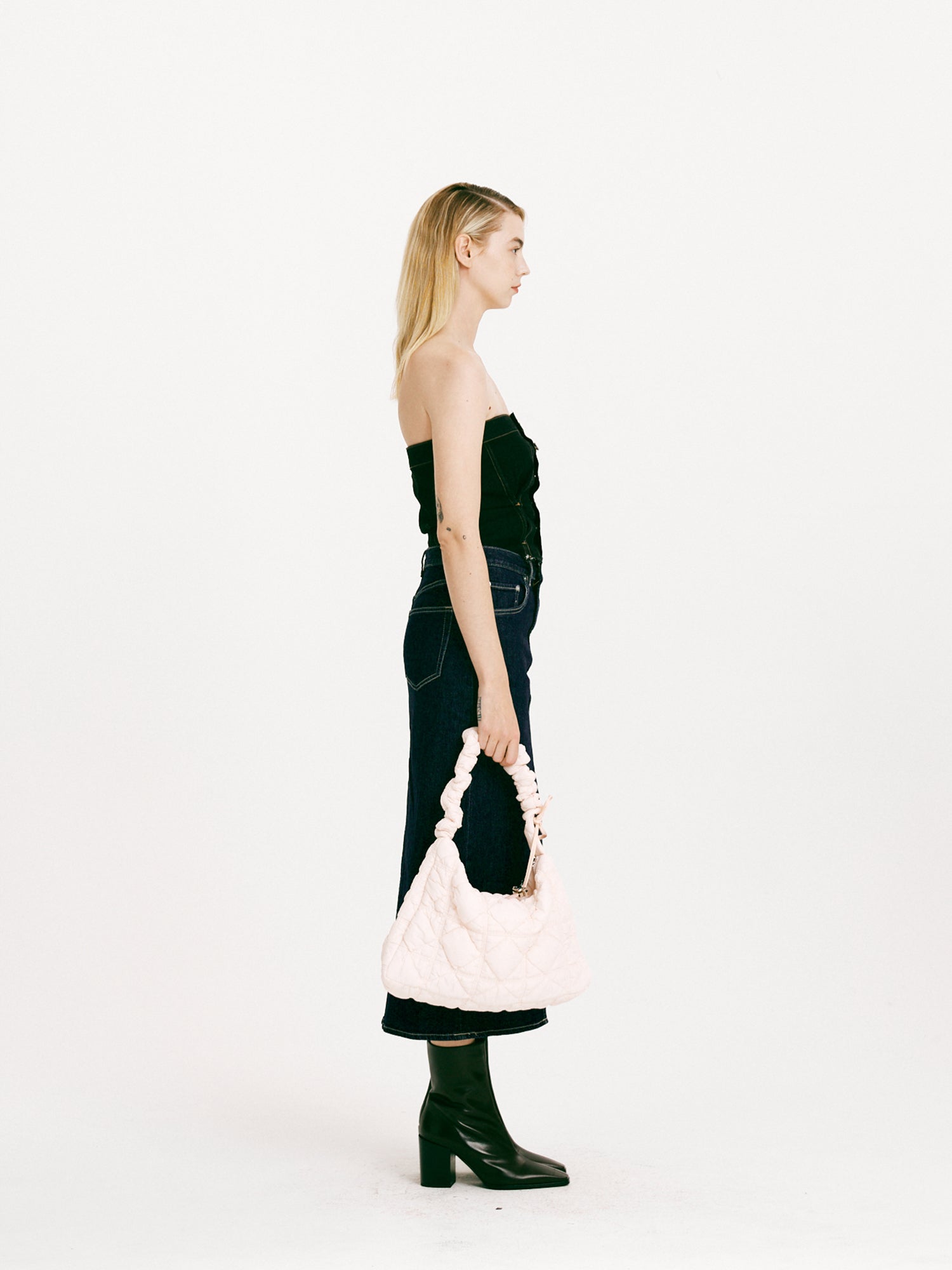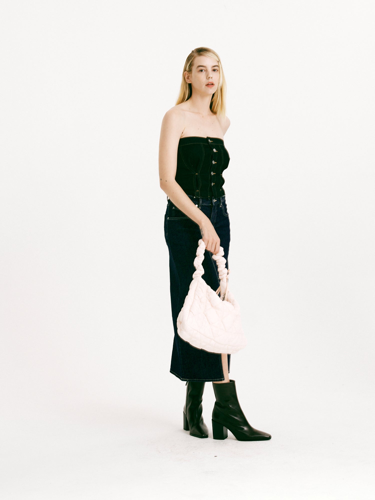 Lane bag is made of Carlyn`s signature quilting method and high-quality nylon fabric. Features a practical size and a square shape that can store essential items.