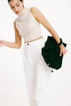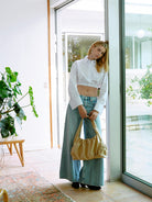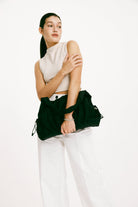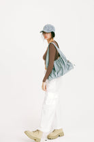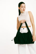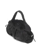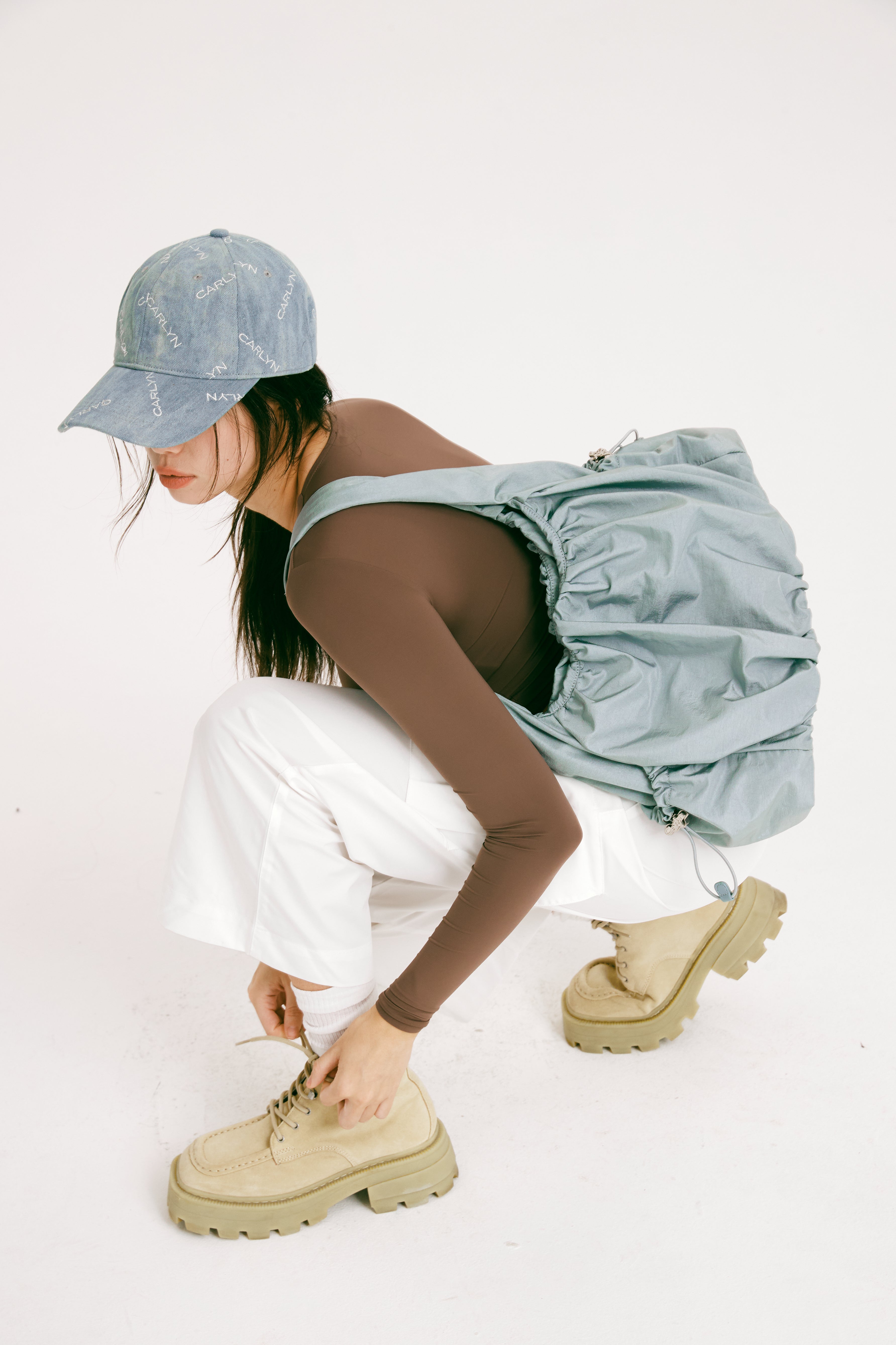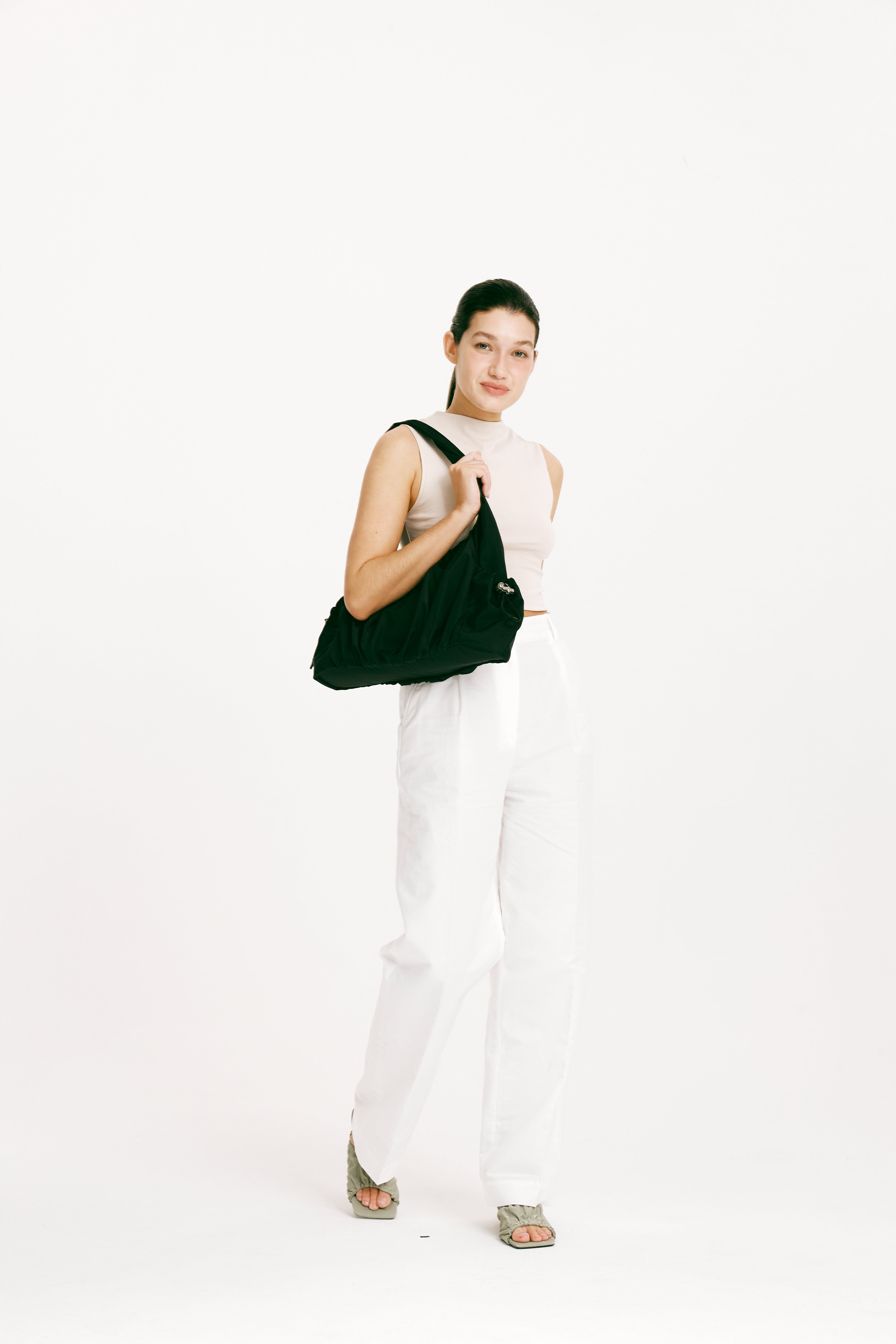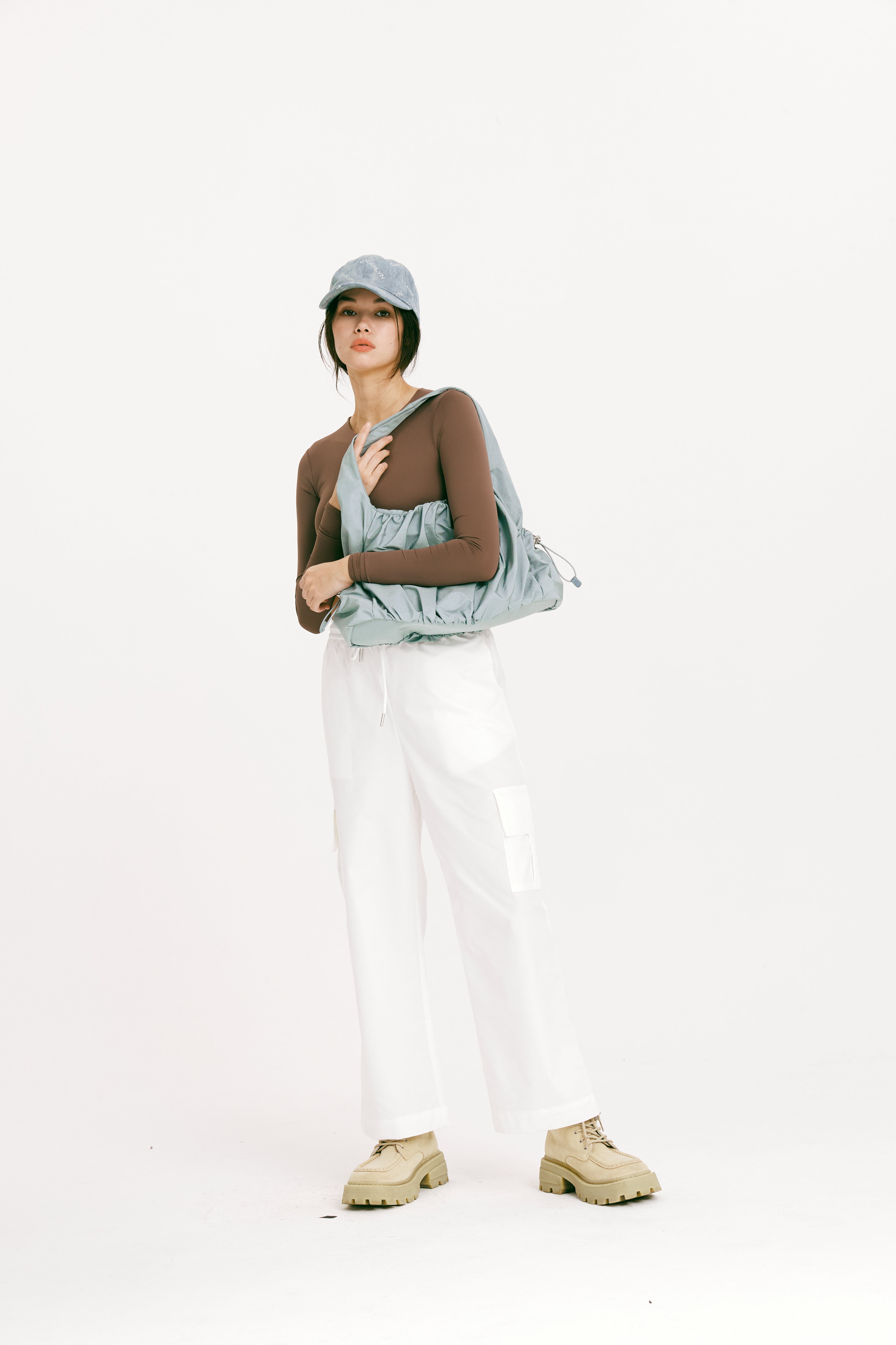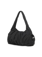 A meringue bag made of soild nylon fabric with a subtle linkle. With wide size and shirring details, you can wear it as a shoulder bag. The newly developed carlyn logo stopper pocket detail on both sides of bag makes it easy to store essential belongings such as mobile phones. Internal open pockets, 1 zipper pocket.