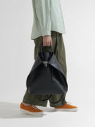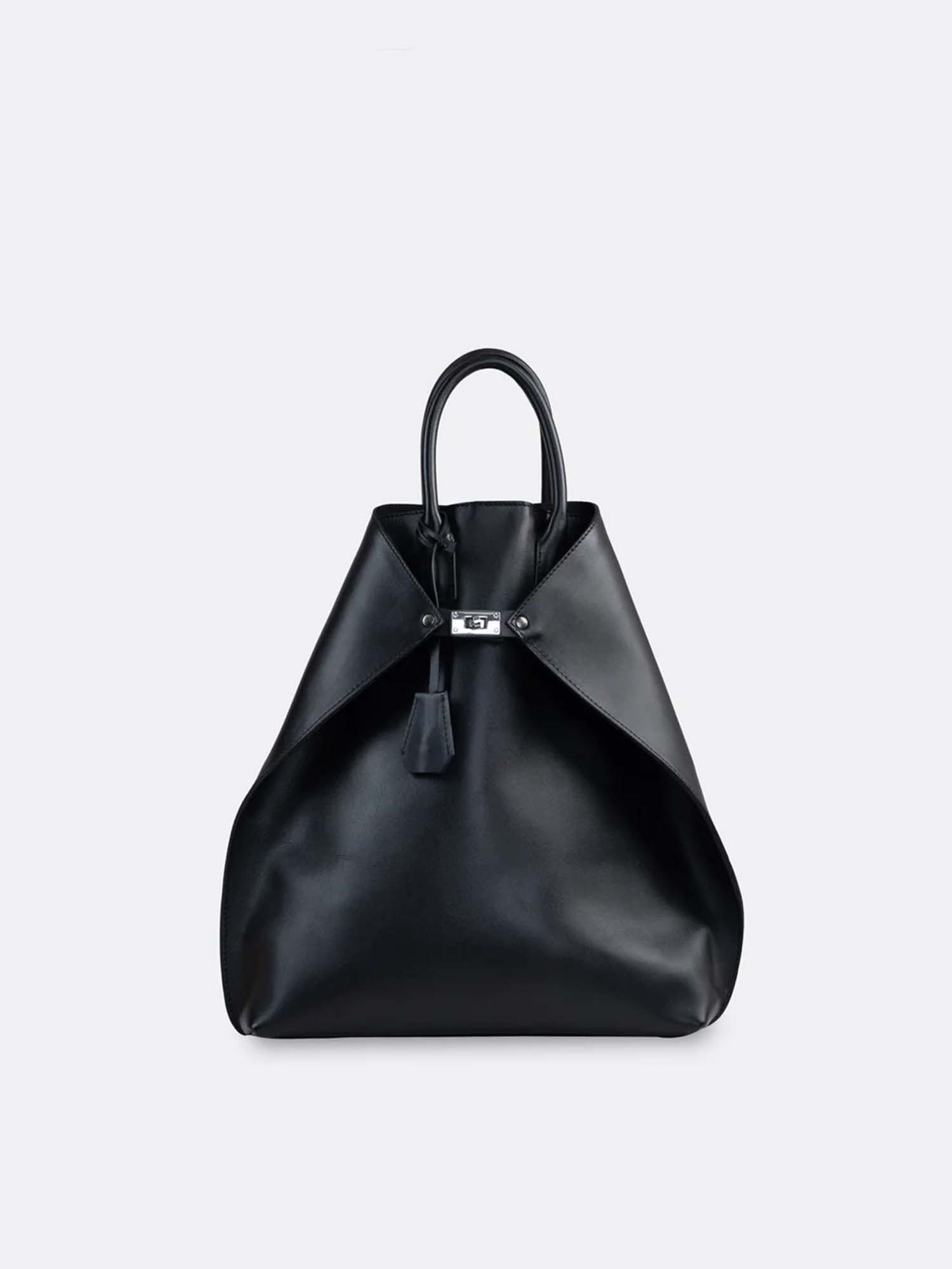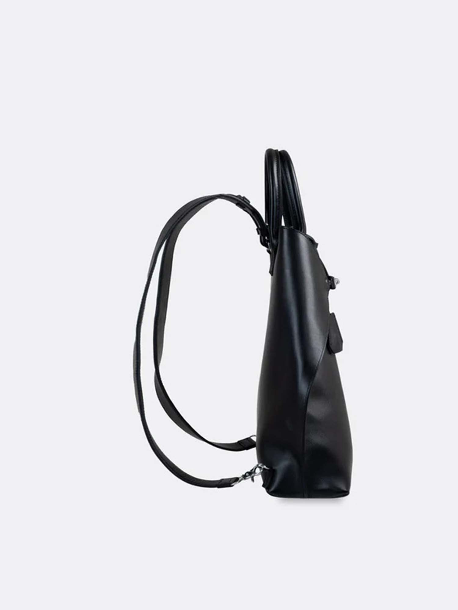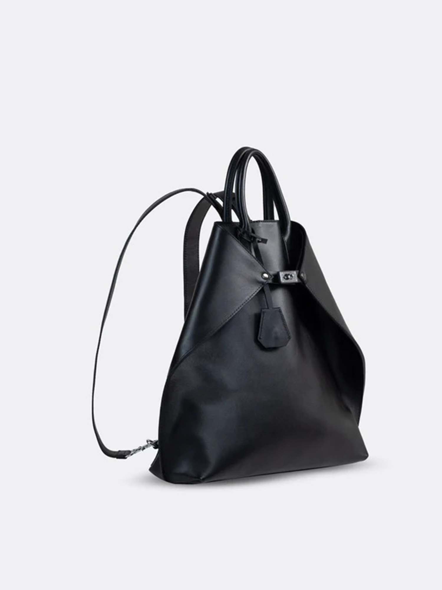 Crafted from 100% cow leather with an embossed ostrich texture, this convertible backpack blends functionality with refined design. Featuring detachable leather straps, it seamlessly transforms from a backpack to a handbag using its two top handles. The D-ring and lock closure add a sleek finish while keeping your belongings secure. Lined with cotton, it offers a spacious interior in a lightweight carry (approx. 855g).