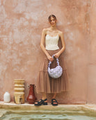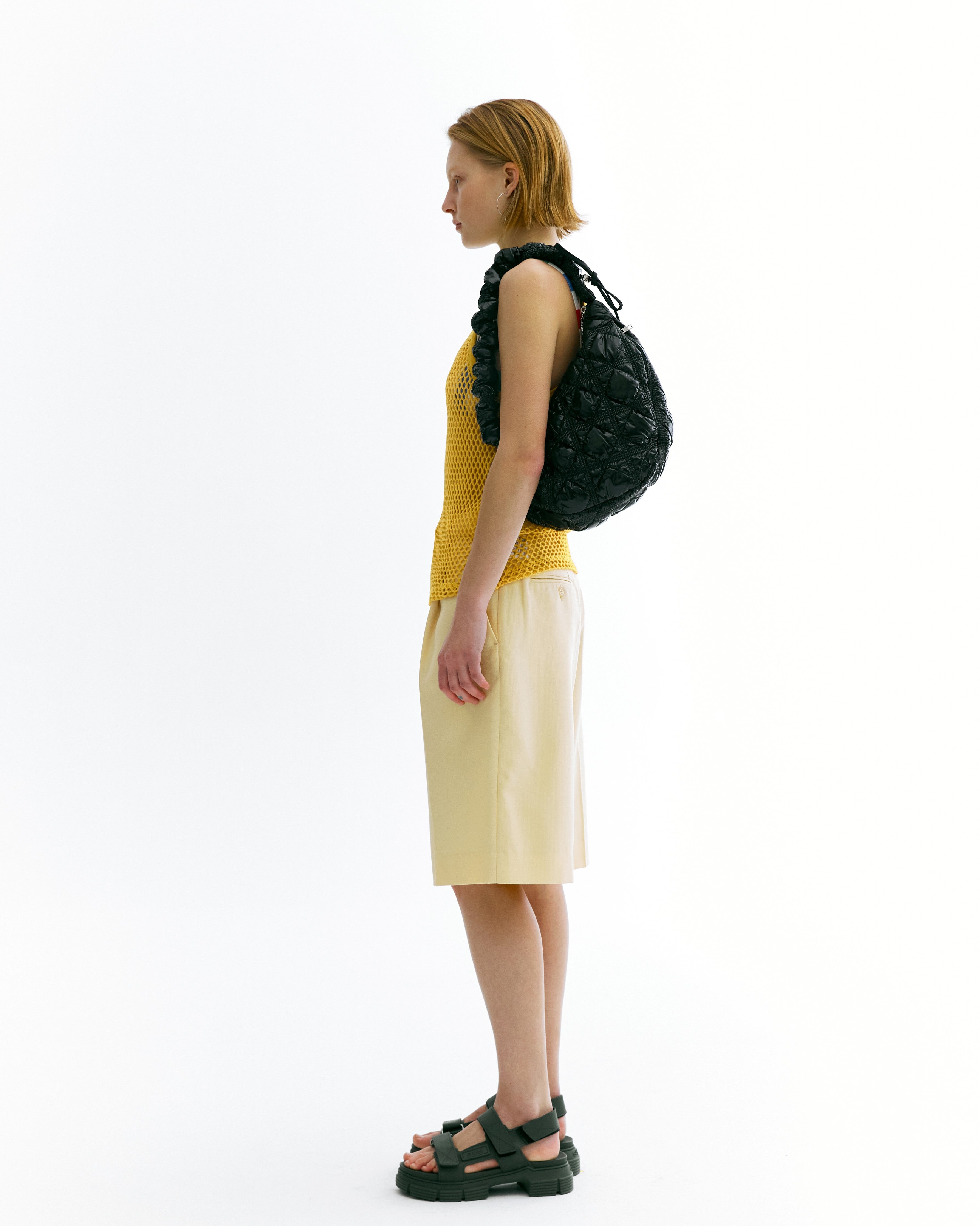 COZY GLAZE BAG with the same quilting fabric as the best-selling POING BAG, featuring a soft touch and light weight. It's an attractive product that fits perfectly when worn on your body with a quilting method that uses elastic threads and is carefully hand-made.