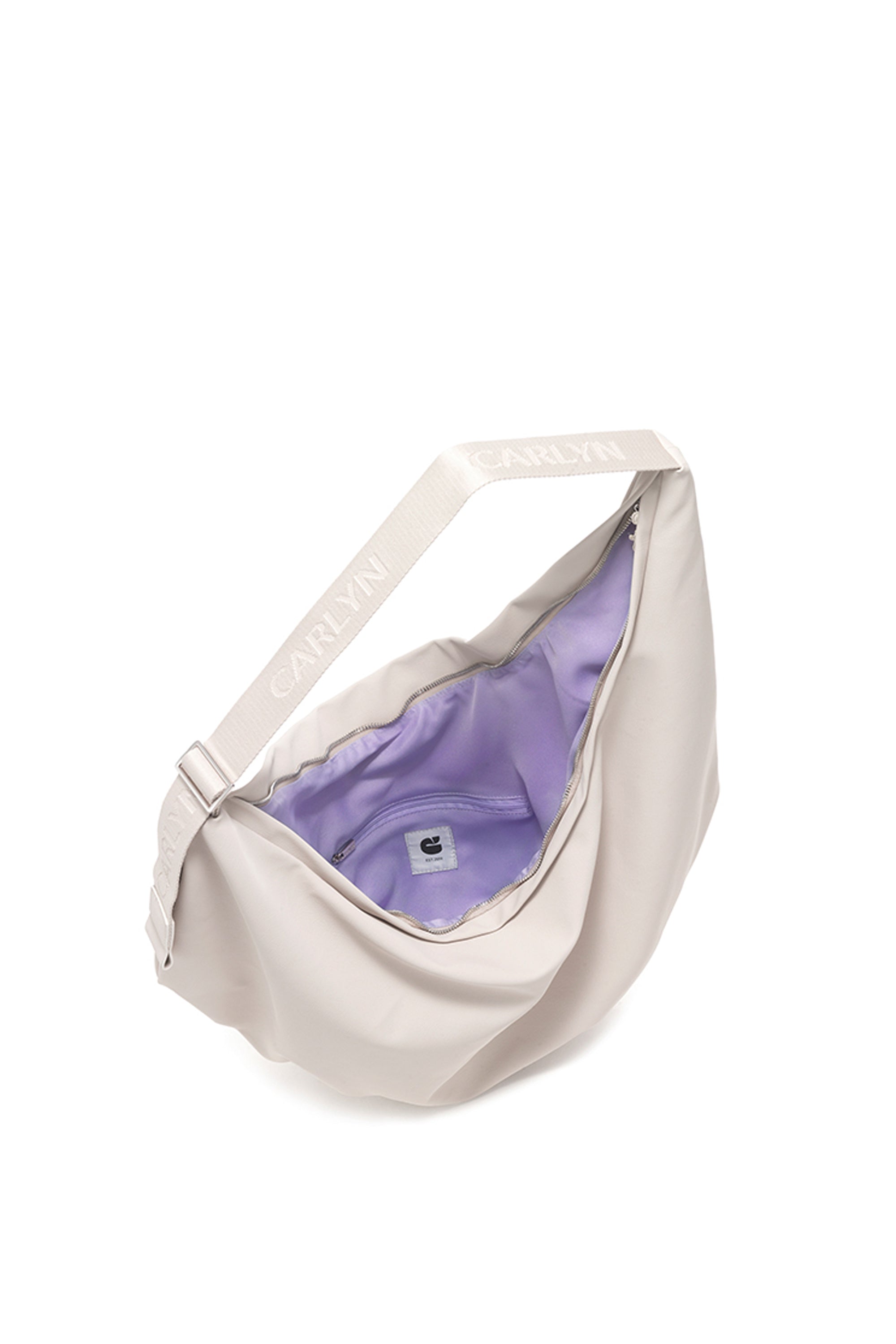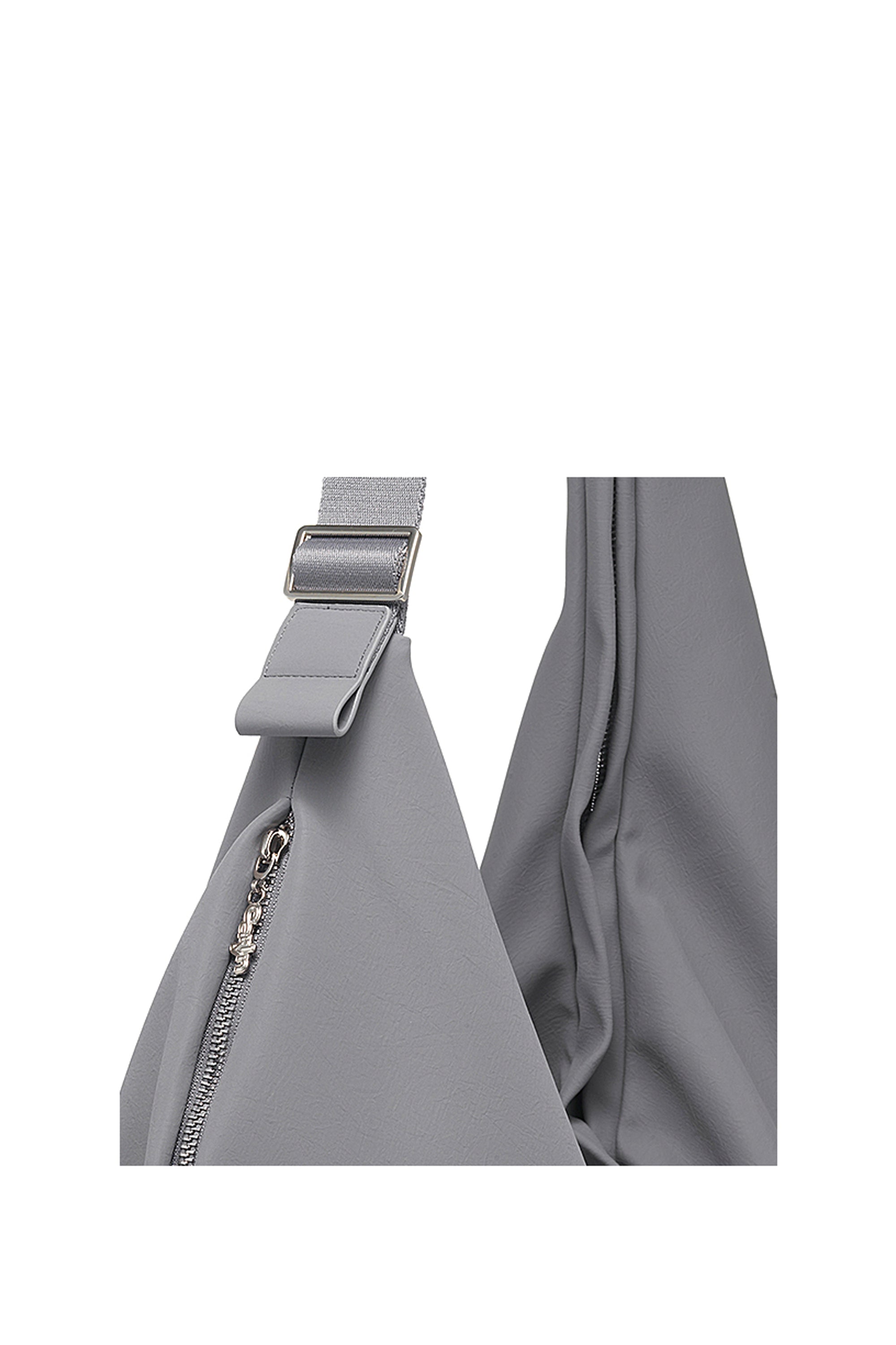 Featuring natural pleats at the bottom and a fluid, asymmetric design, this bag maintains both style and functionality. The long strap allows for shoulder or crossbody wear, providing flexibility for different looks and occasions. An external zipper pocket adds convenience, keeping your essentials easily accessible.