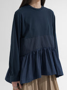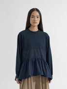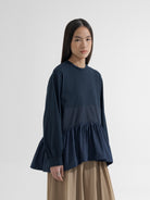 Blouse dengan aksen kerut dan potongan melebar dari bagian pinggang, memberikan siluet yang manis dan tidak membentuk tubuh. Model loose fit yang nyaman dipakai seharian. Bagian bawah belakang lebih panjang dari depan.