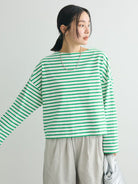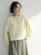 Pullover berbahan katun ini hadir dengan bentuk boxy pendek yang kekinian, cocok untuk tampilan santai namun tetap stylish. Desain garis tipis memberikan kesan segar dan versatile, menjadikannya pilihan tepat untuk musim yang lebih hangat. Dapat dikenakan sendiri, dilapisi dengan jaket, atau dipadukan dalam gaya bertumpuk—pullover ini akan tetap tampil chic dalam berbagai padu padan.