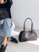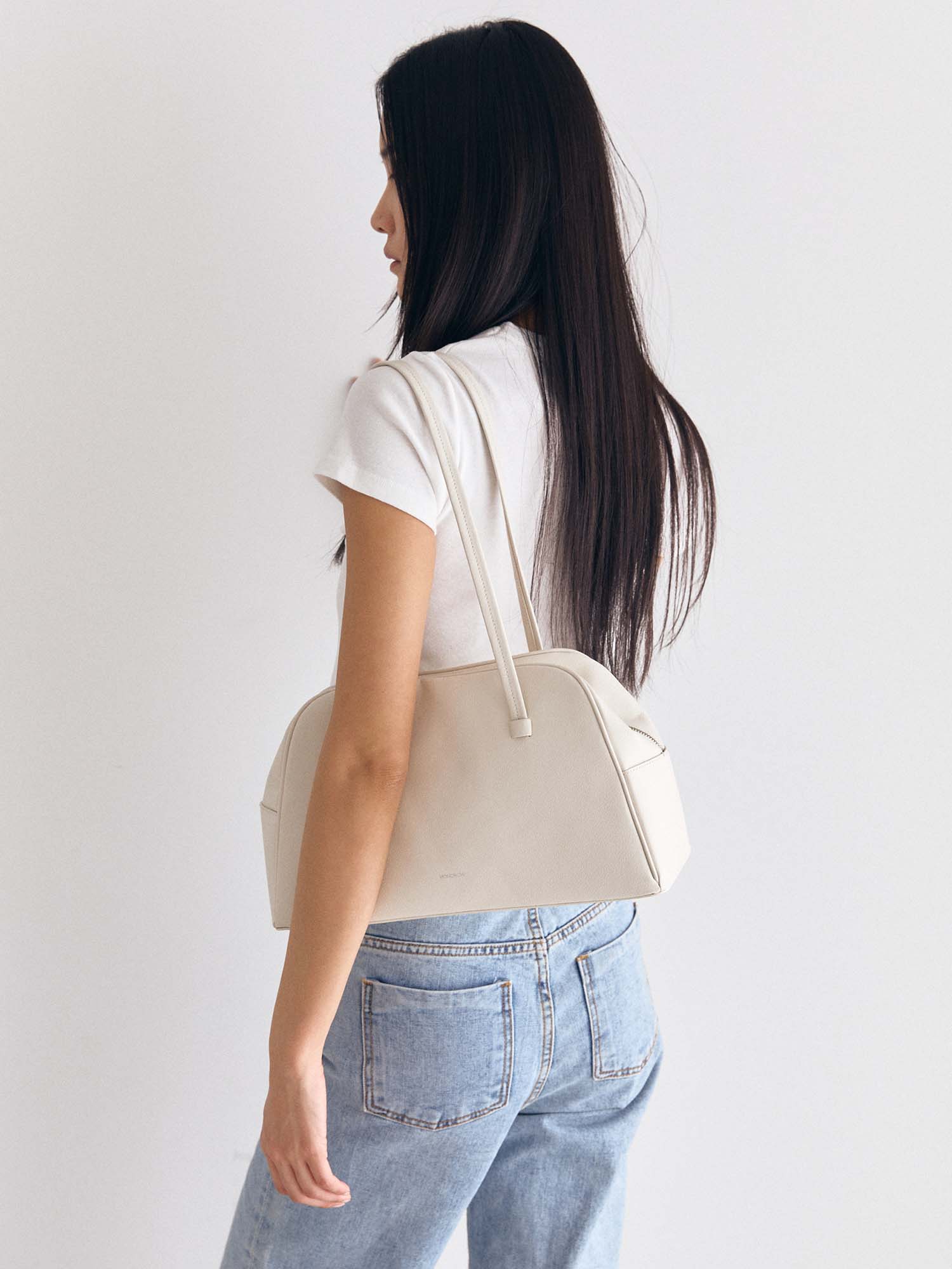 Crafted with clean lines and a sleek silhouette, this shoulder bag offers just the right balance of function and form. Featuring a wide, structured base, it's designed to keep its shape while offering generous space for your essentials. Whether styled on your shoulder or in hand, its double handles provide comfort and stability throughout the day.