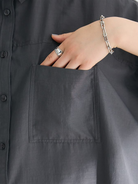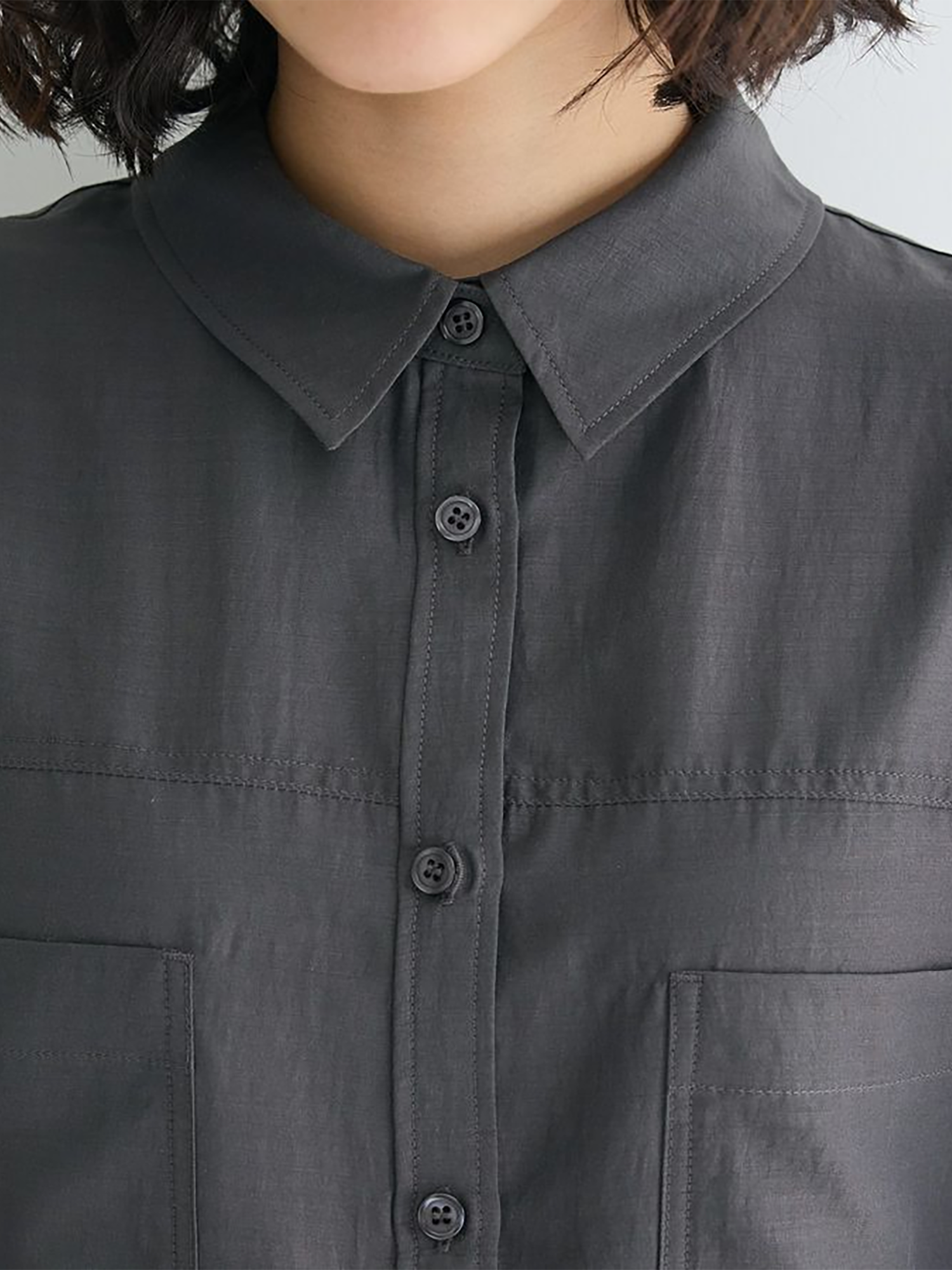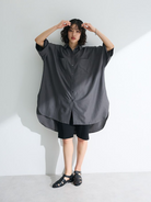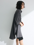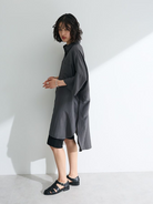 Dress midi berlengan 3/4 dengan bahan sheer yang ringan dan adem, cocok untuk gaya spring/summer. Siluet oversized yang relaxed dengan bagian belakang lebih panjang memberi kesan feminin dan effortless. Dilengkapi saku depan besar dan warna polos yang mudah untuk layering.