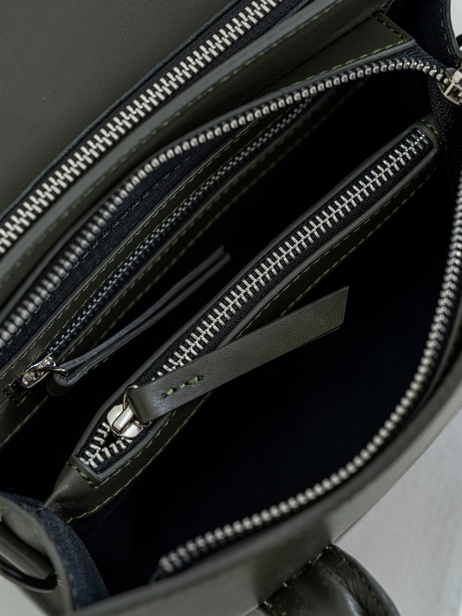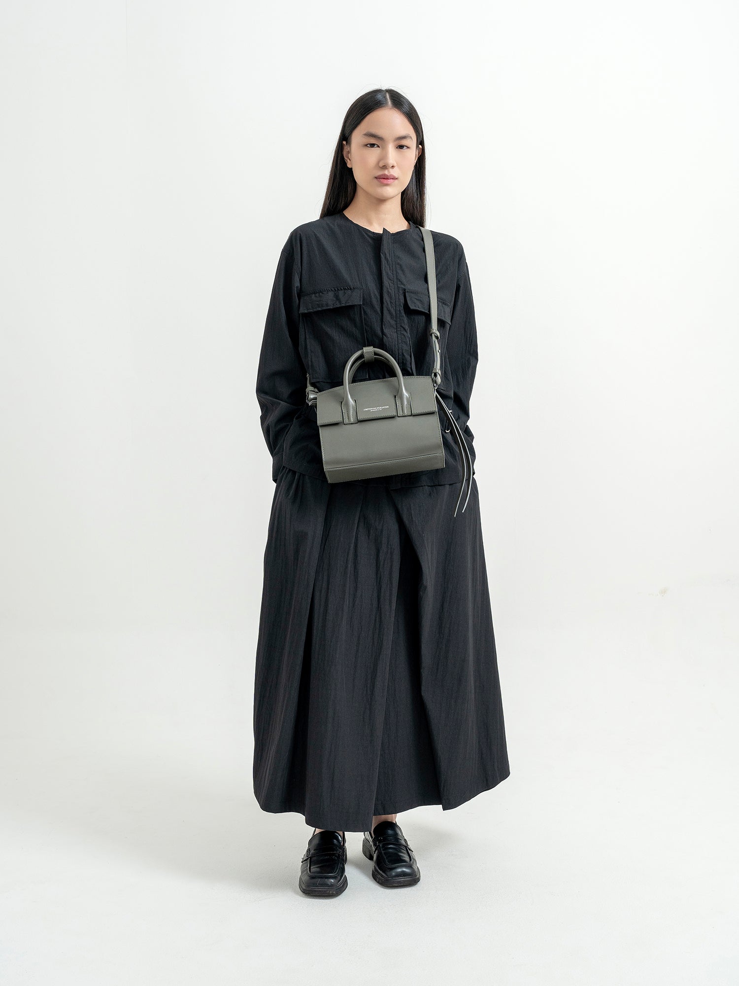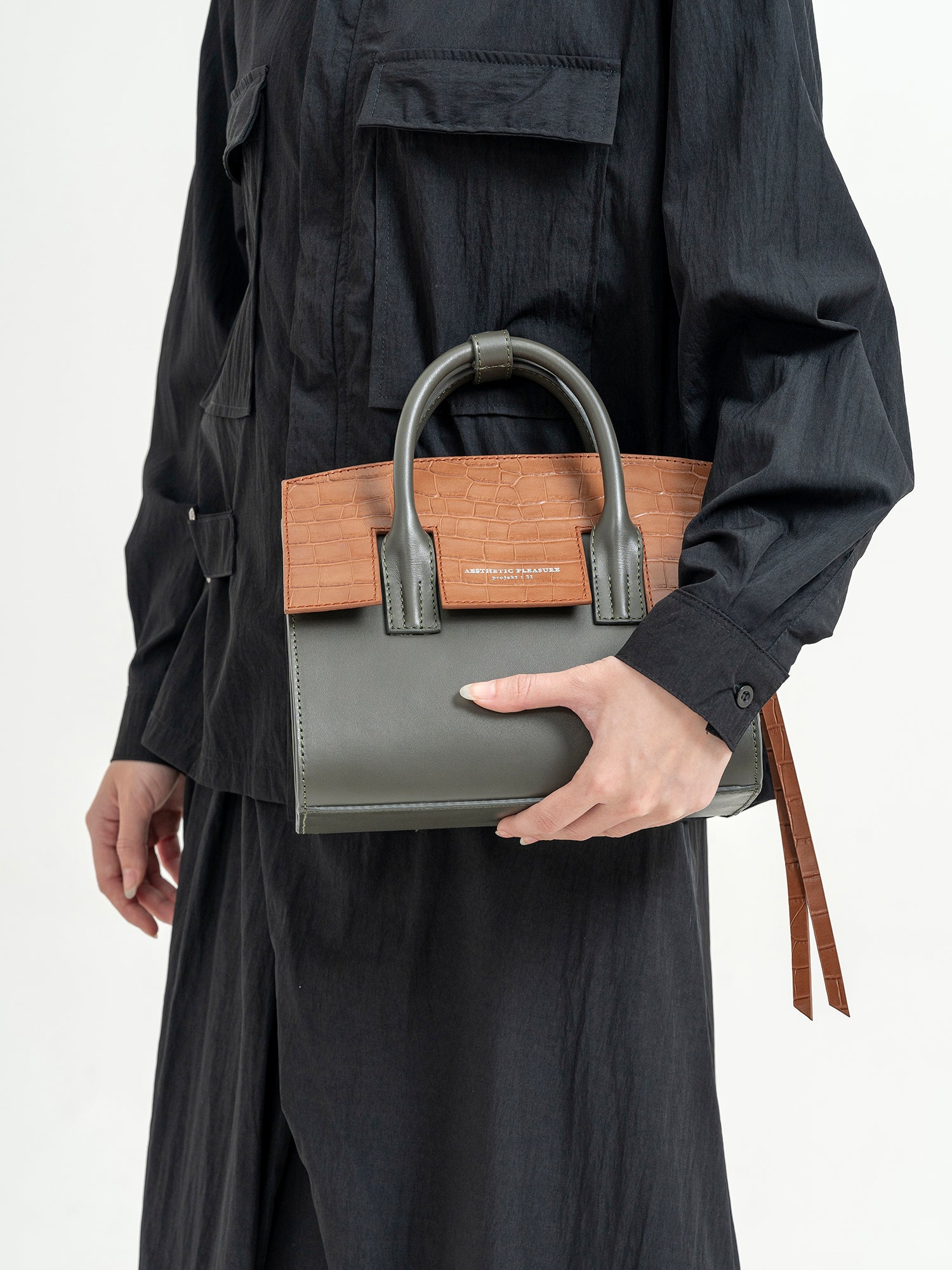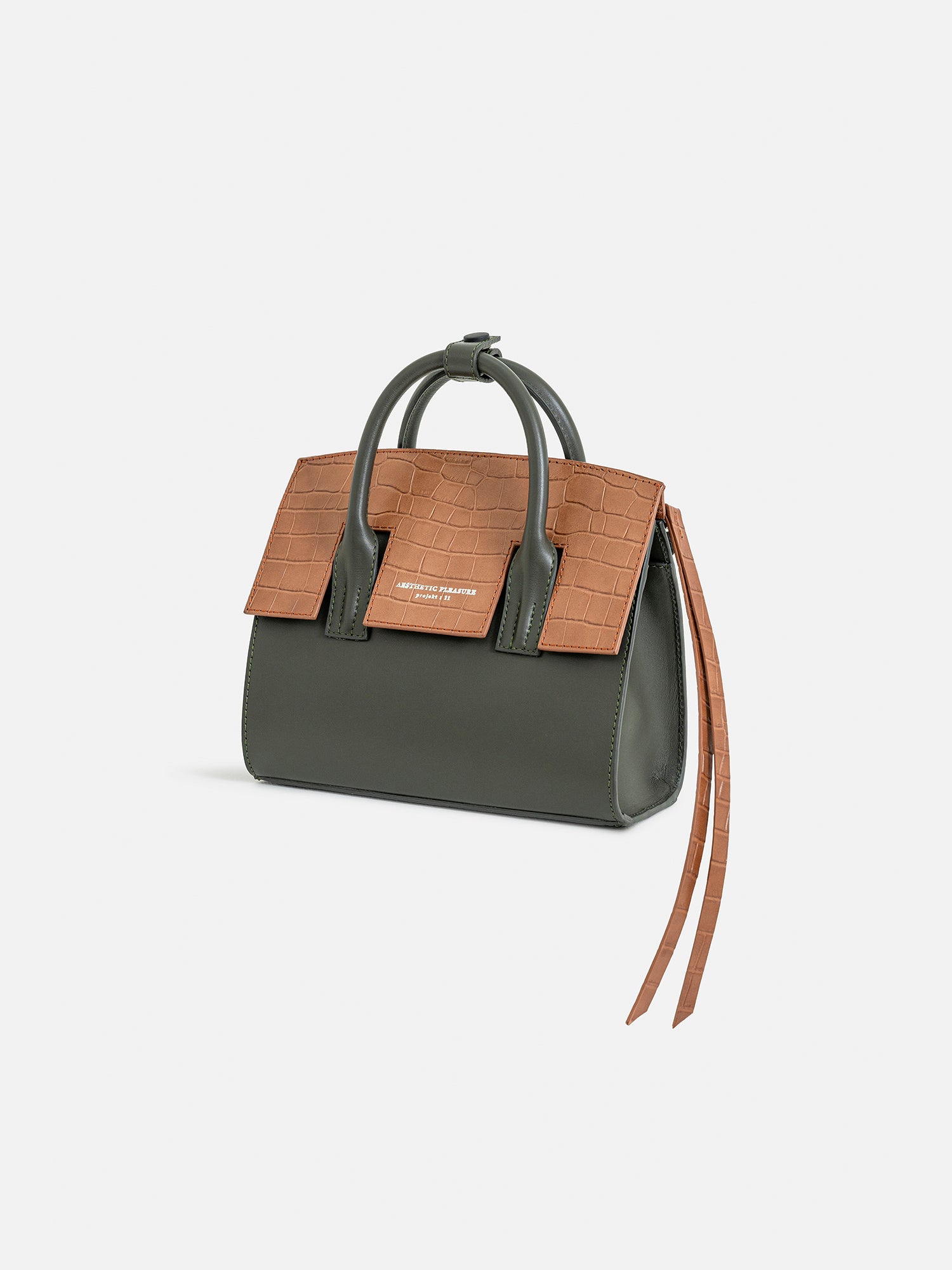 A sophisticated mini bag designed with a distinctive double flap detail that adds a bold yet refined statement. Crafted from 100% cow leather with croco embossed texture, this bag combines structure and elegance for both casual and polished looks. The detachable brown croco-embossed flap creates a unique layered design and can be removed for a cleaner, minimal appearance.