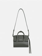 The compact silhouette keeps your essentials organized while maintaining a sleek profile. Carry it comfortably by the structured top handles or wear it crossbody with the detachable strap for hands-free convenience. Finished with subtle logo detailing and premium craftsmanship, this piece delivers timeless style in a modern form.