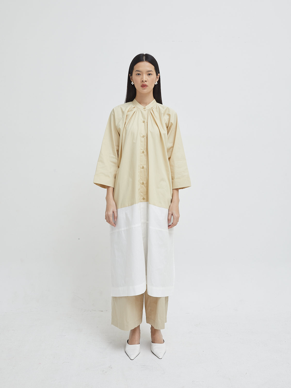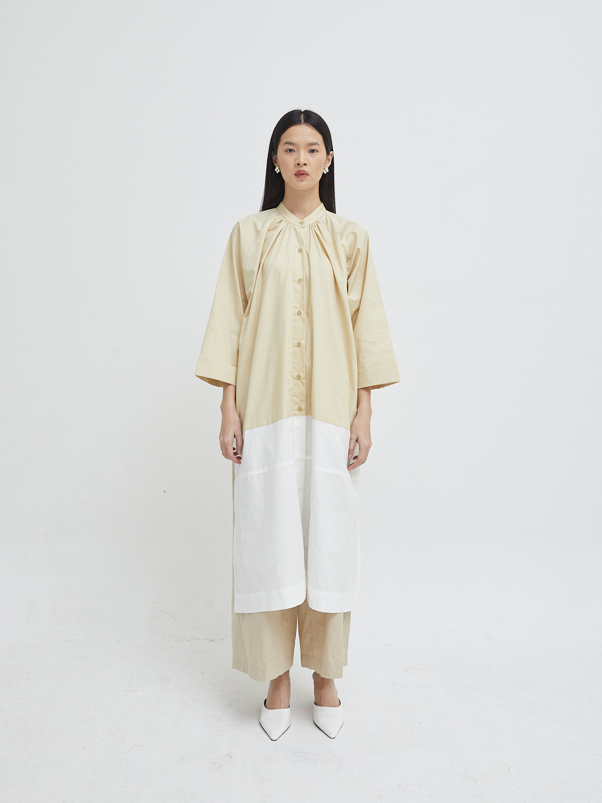 Tampil anggun dan effortlessly stylish dengan perpaduan tunik panjang dengan aksen blok warna kontras dan celana wide-leg yang nyaman. Desainnya yang longgar memberikan kesan flowy dan elegan, set ini sempurna untuk tampilan kasual hingga semi-formal.
