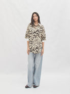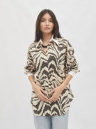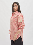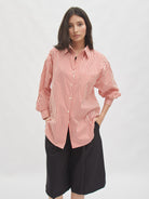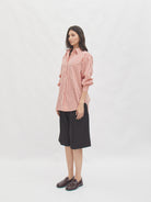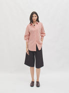 Kemeja lengan panjang dengan potongan loose dan kerah klasik, dilengkapi kancing depan penuh dan satu saku dada. Desainnya versatile, nyaman dipakai untuk gaya santai maupun semi-formal.