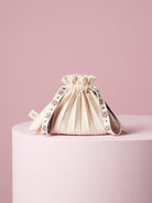Bentuknya yang menyerupai pouch keberuntungan dengan sentuhan cherry blossom membuat tas ini terlihat manis dan stylish, cocok untuk berbagai kesempatan. - Kompak Namun Fungsional