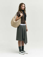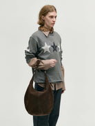 The Pumpkin Bag Large reimagines Margesherwood’s iconic crescent silhouette in an oversized, sculptural form. Crafted from 100% cow leather in supple nubuck suede, it offers generous space while preserving the brand’s refined minimalism. A perfect balance of structure and softness — designed for those who value both style and practicality.
