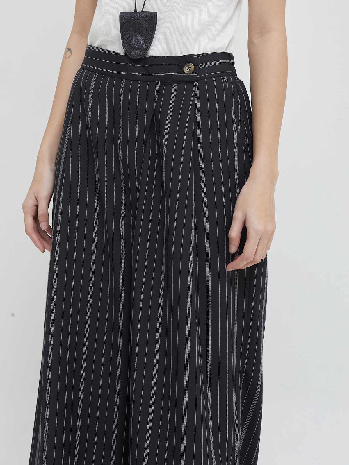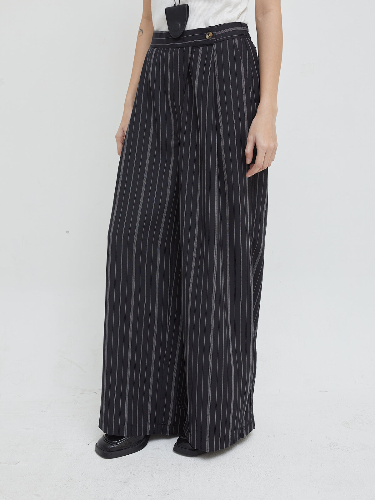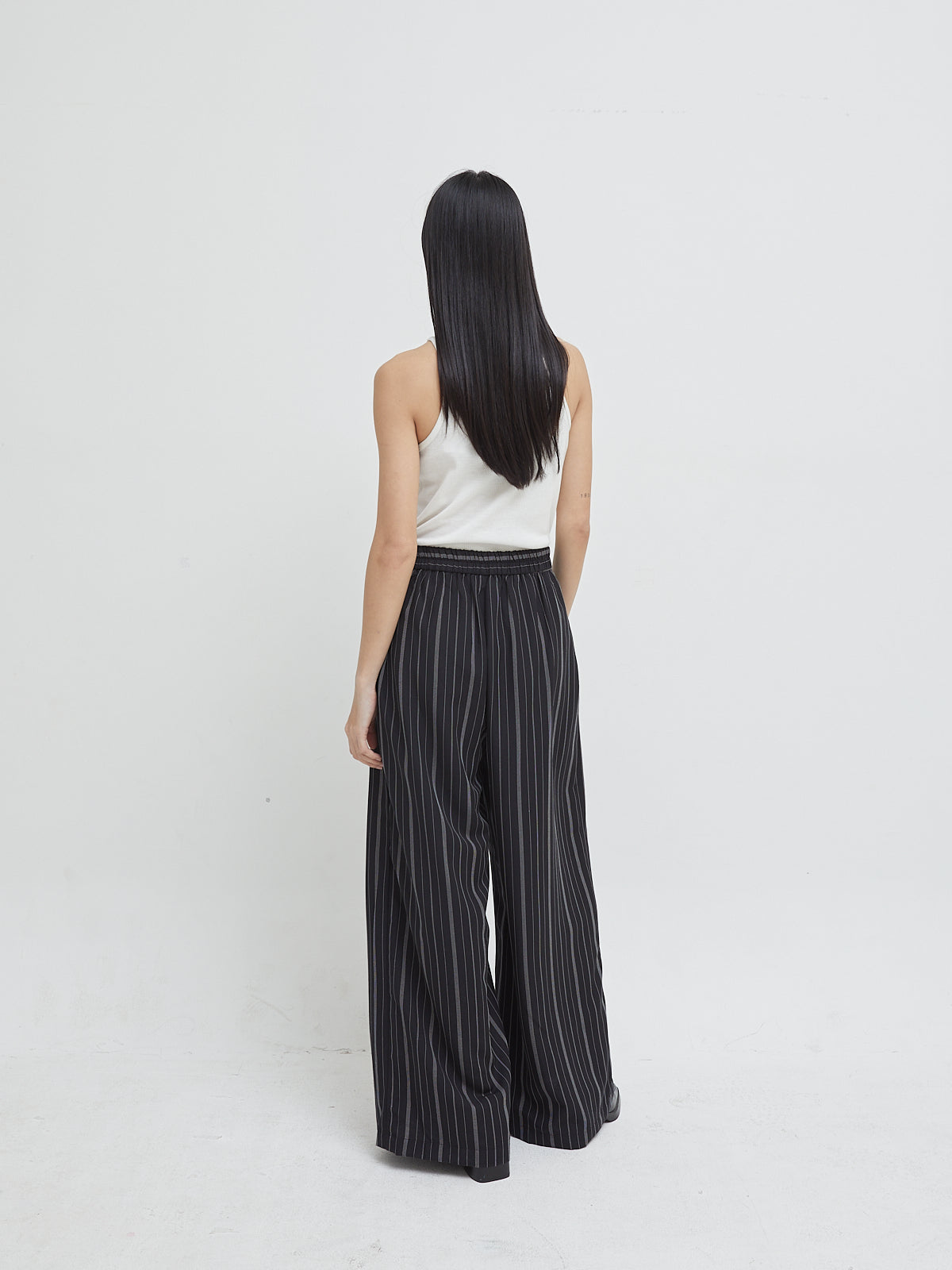 Hadir dengan desain wide-leg yang nyaman dan siluet flowy, celana ini adalah pilihan sempurna untuk tampilan chic yang tetap santai. Detail pleats di bagian depan serta karet elastis di belakang pinggang membuatnya mudah dipakai dan cocok untuk berbagai bentuk tubuh. Tersedia dalam warna klasik menjadikannya versatile untuk dipadukan dengan berbagai outfit.