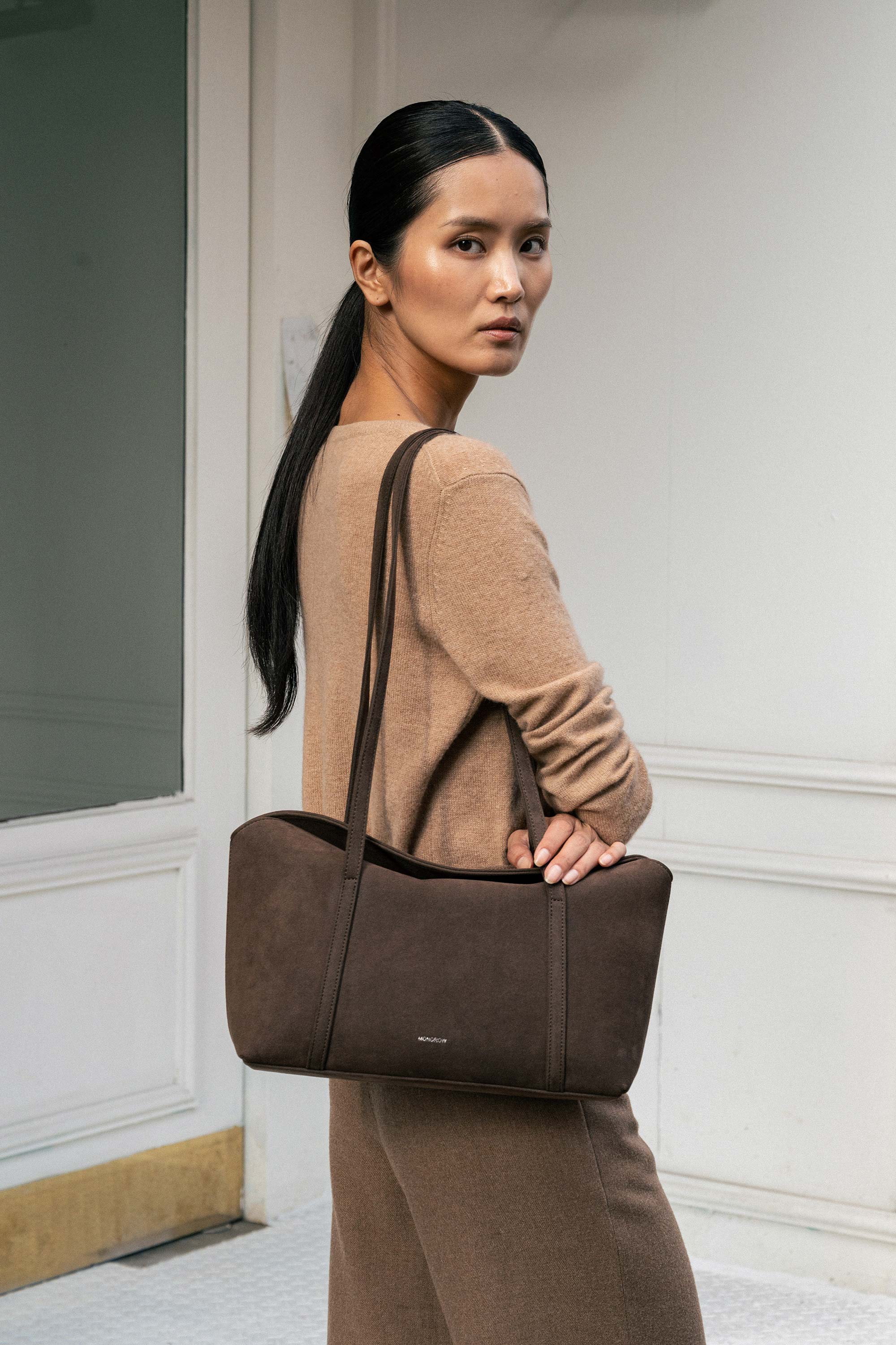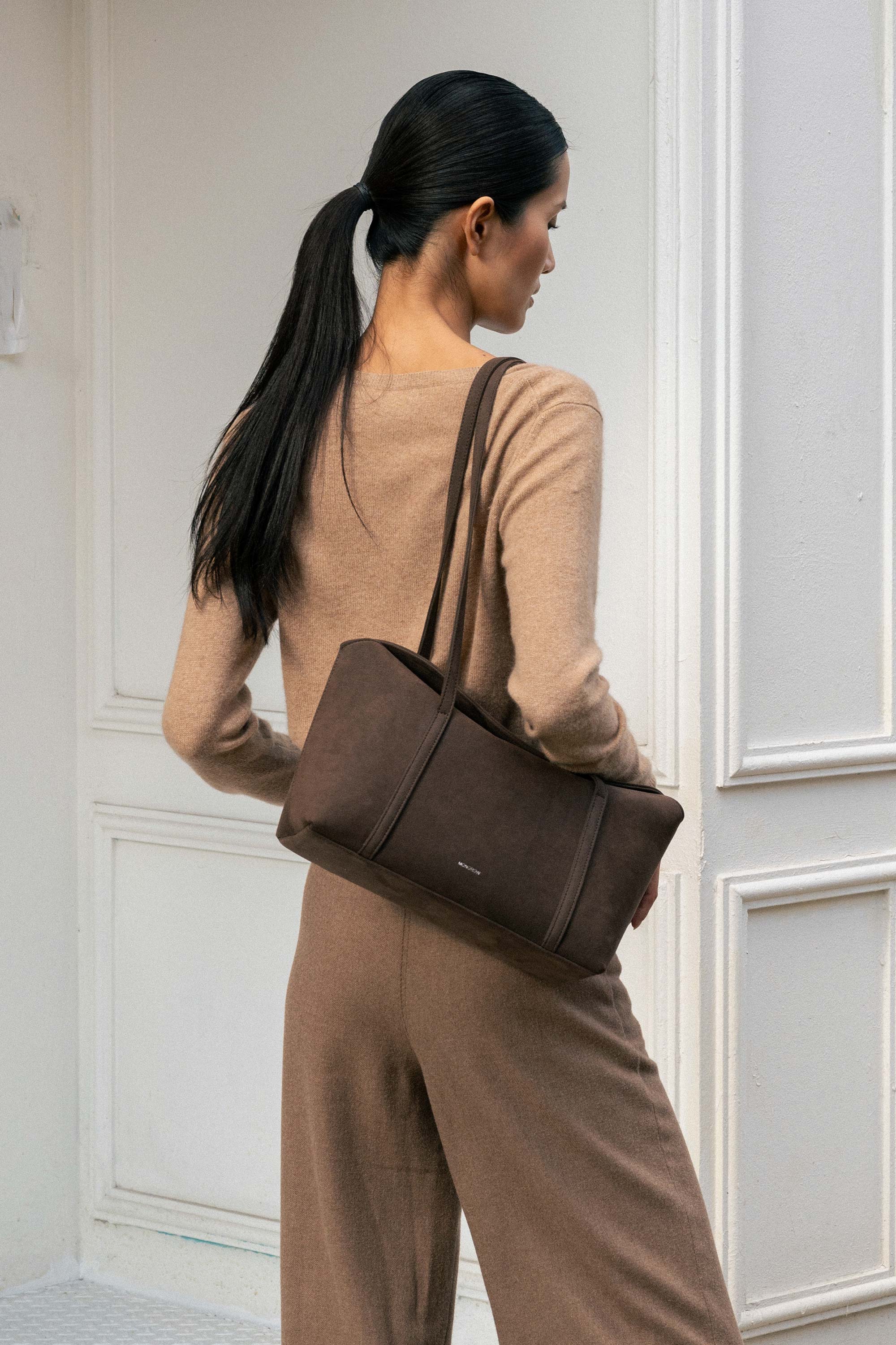 A refined tote with a practical, versatile structure, the Sara Suede features a clean silhouette and soft suede finish. Designed with long shoulder straps for all-day comfort, it easily transitions from casual to formal looks. Whether you wear it on the shoulder or carry it by hand, this bag blends effortlessly into your everyday rotation.