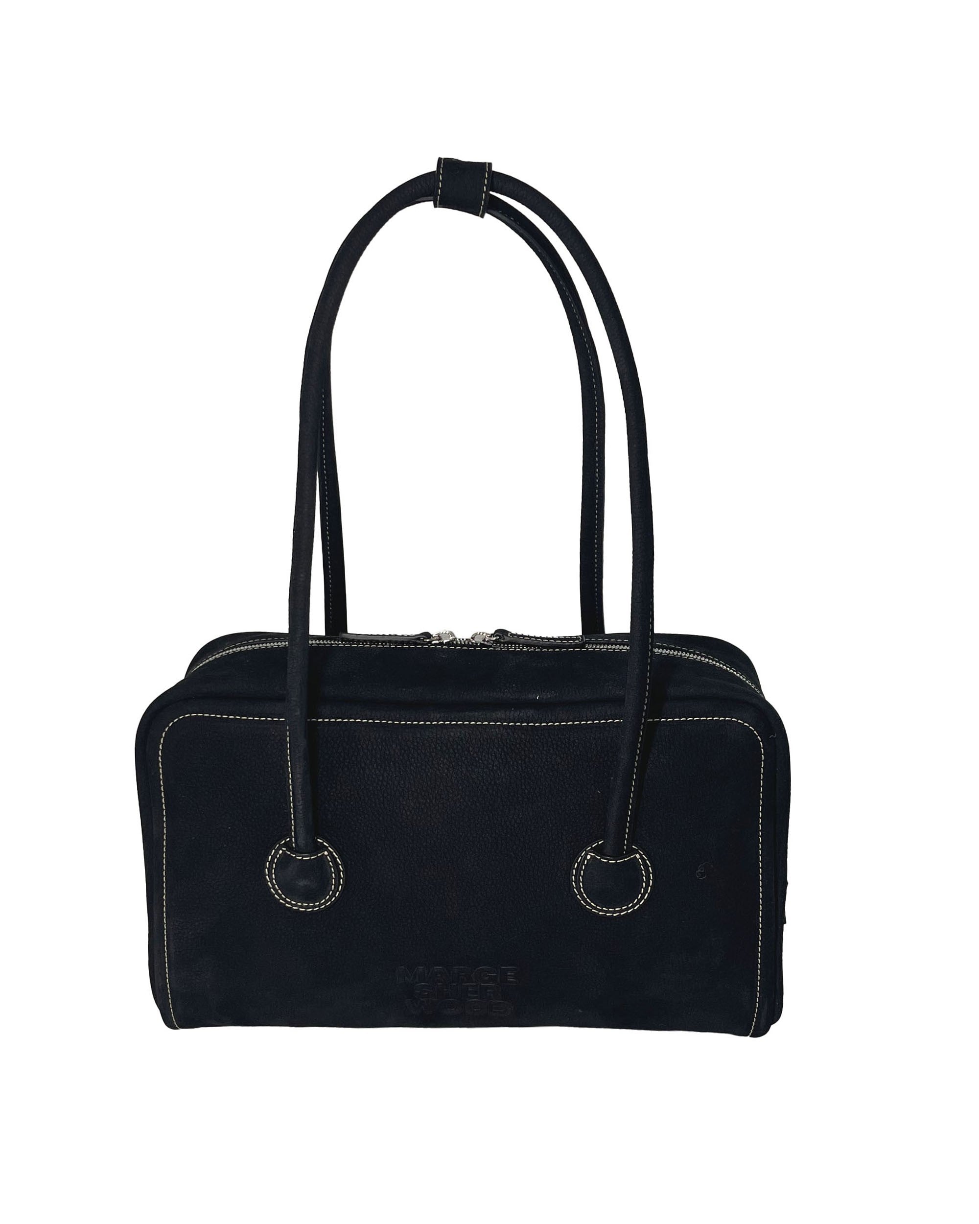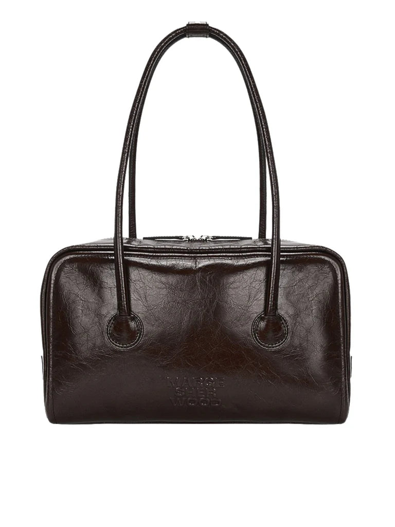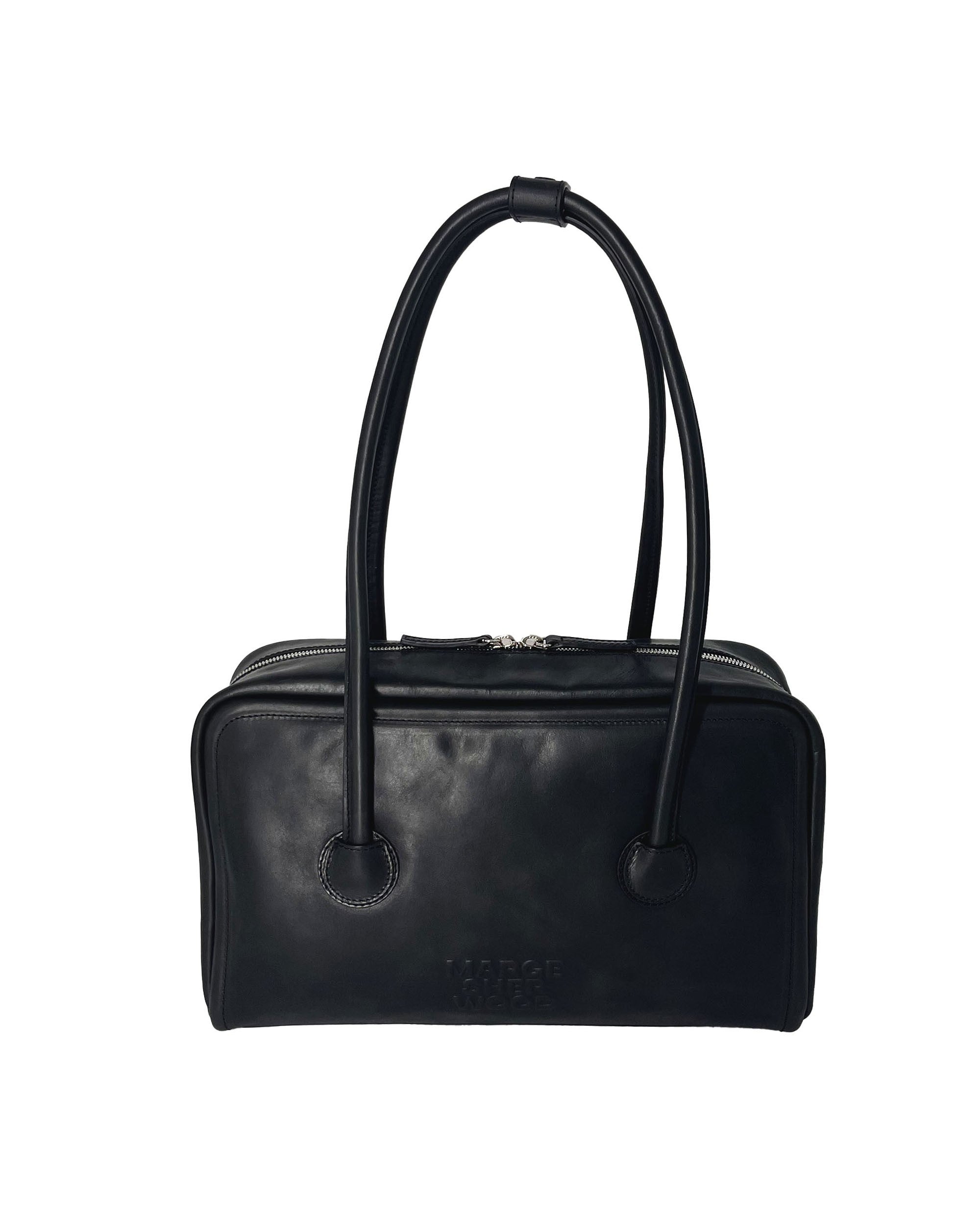 Structured yet soft, this Boston-style bag blends minimalism with everyday function. Designed with a full-length integrated handle, it features subtle embossed branding, two internal pockets (zip and slip), and a spacious main compartment. The signature Margesherwood lining and premium crinkled pull-up cow leather add texture and depth to its sleek silhouette.