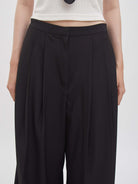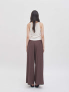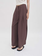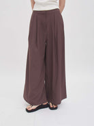 Celana panjang berpotongan wide leg dengan detail lipit di bagian depan yang memberikan siluet rapi namun tetap santai. Terbuat dari bahan polyester yang ringan dan jatuh, memberikan kenyamanan saat dikenakan sepanjang hari. Dilengkapi saku di sisi kanan dan kiri, cocok untuk tampilan kasual hingga semi-formal.