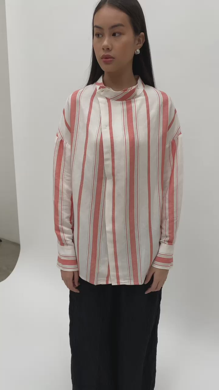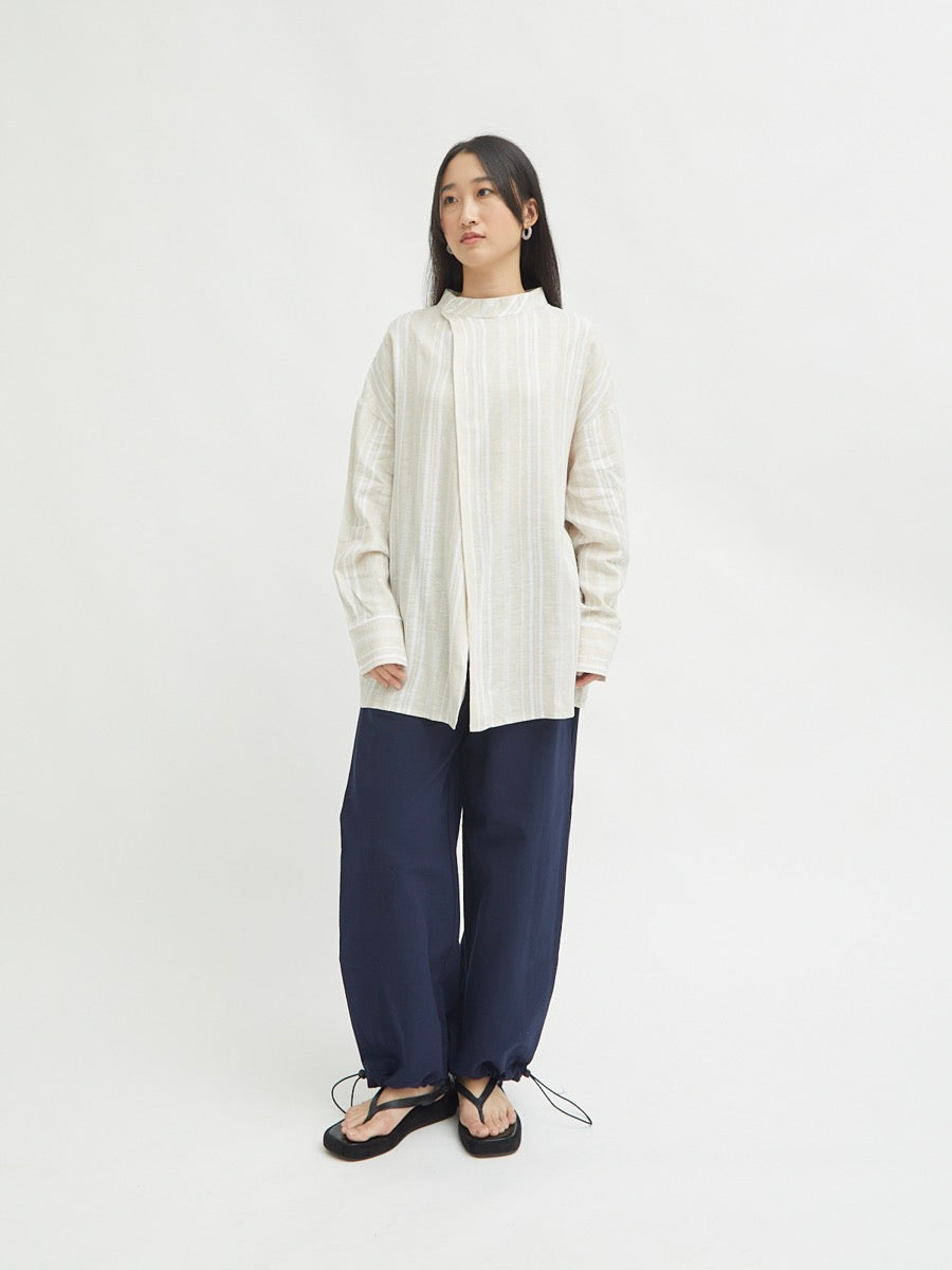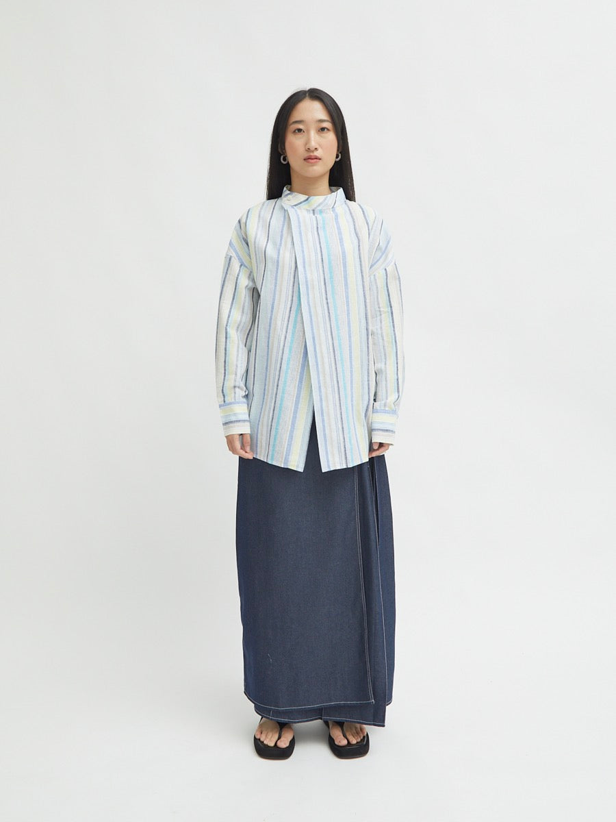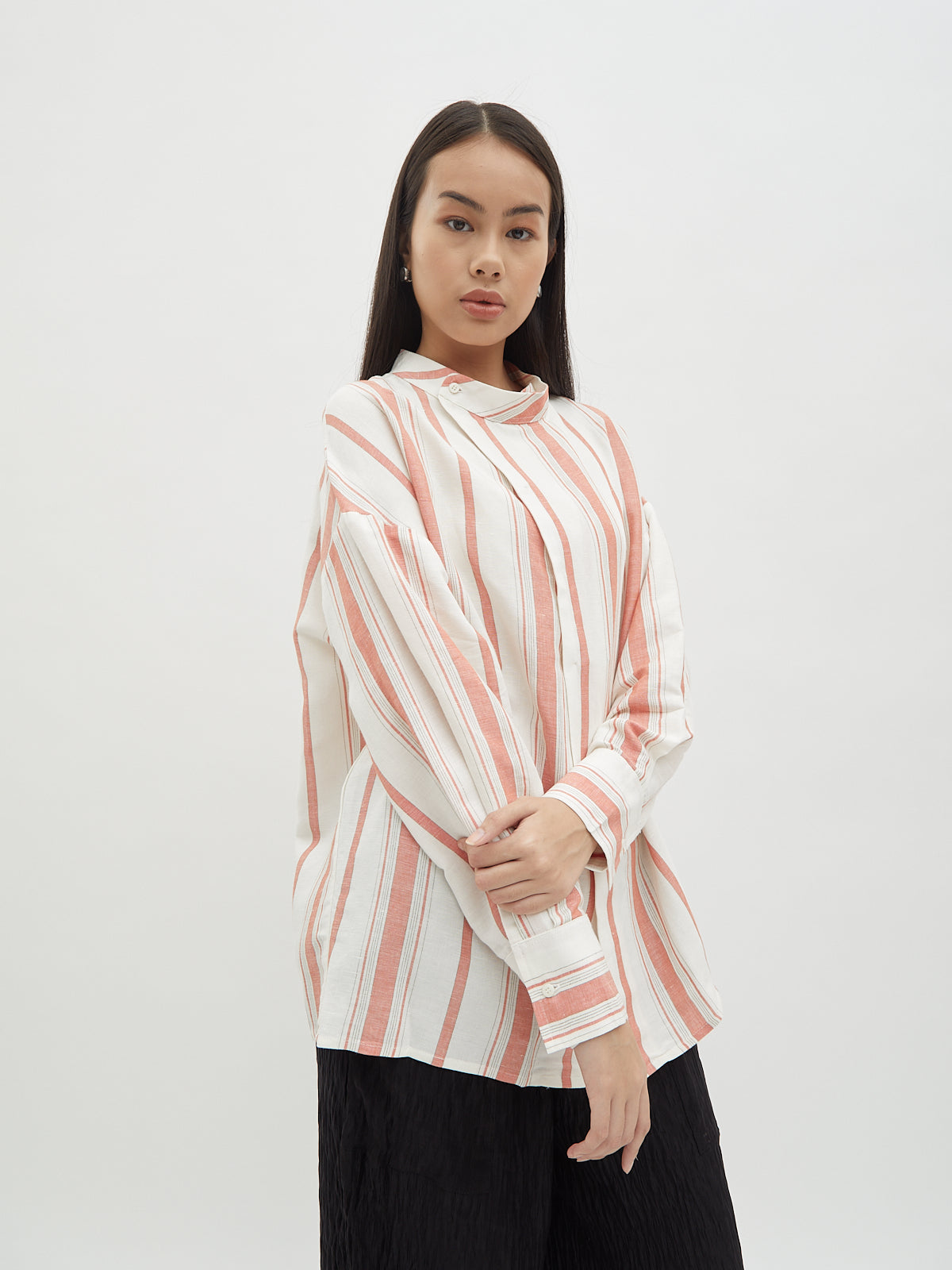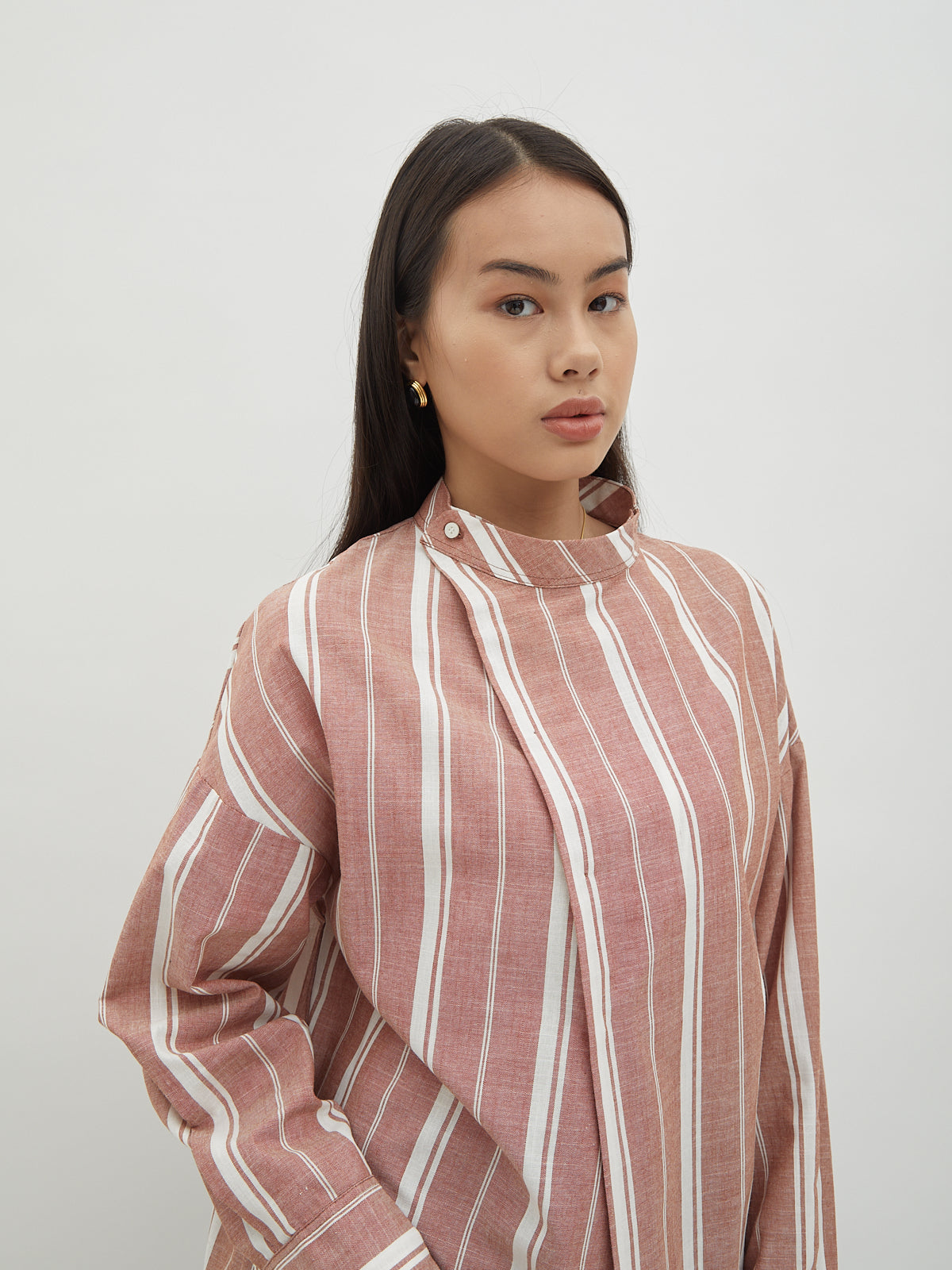 Atasan wanita lengan panjang ini didesain dengan kerah model mandarin. Memiliki kancing klip di bagian depan dan dengan detail yang asimetris. Bahannya halus dan ringan sehingga nyaman saat dipakai. Cocok dipakai untuk acara formal dan kasual.