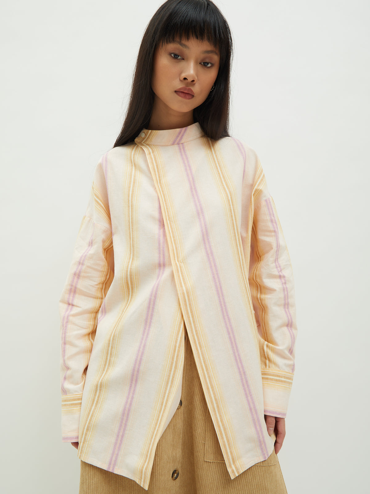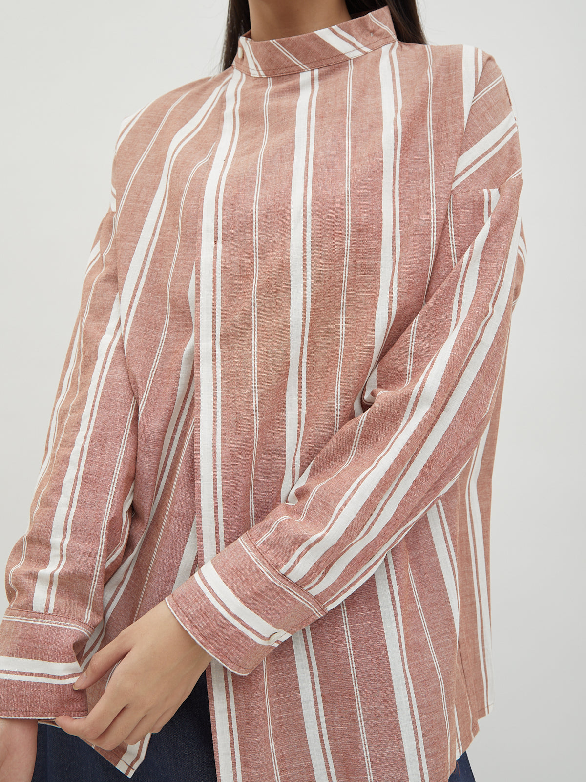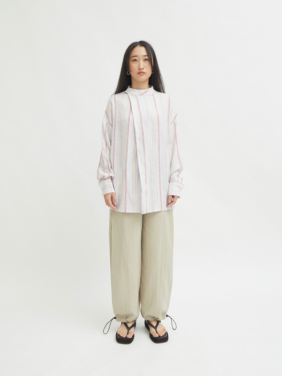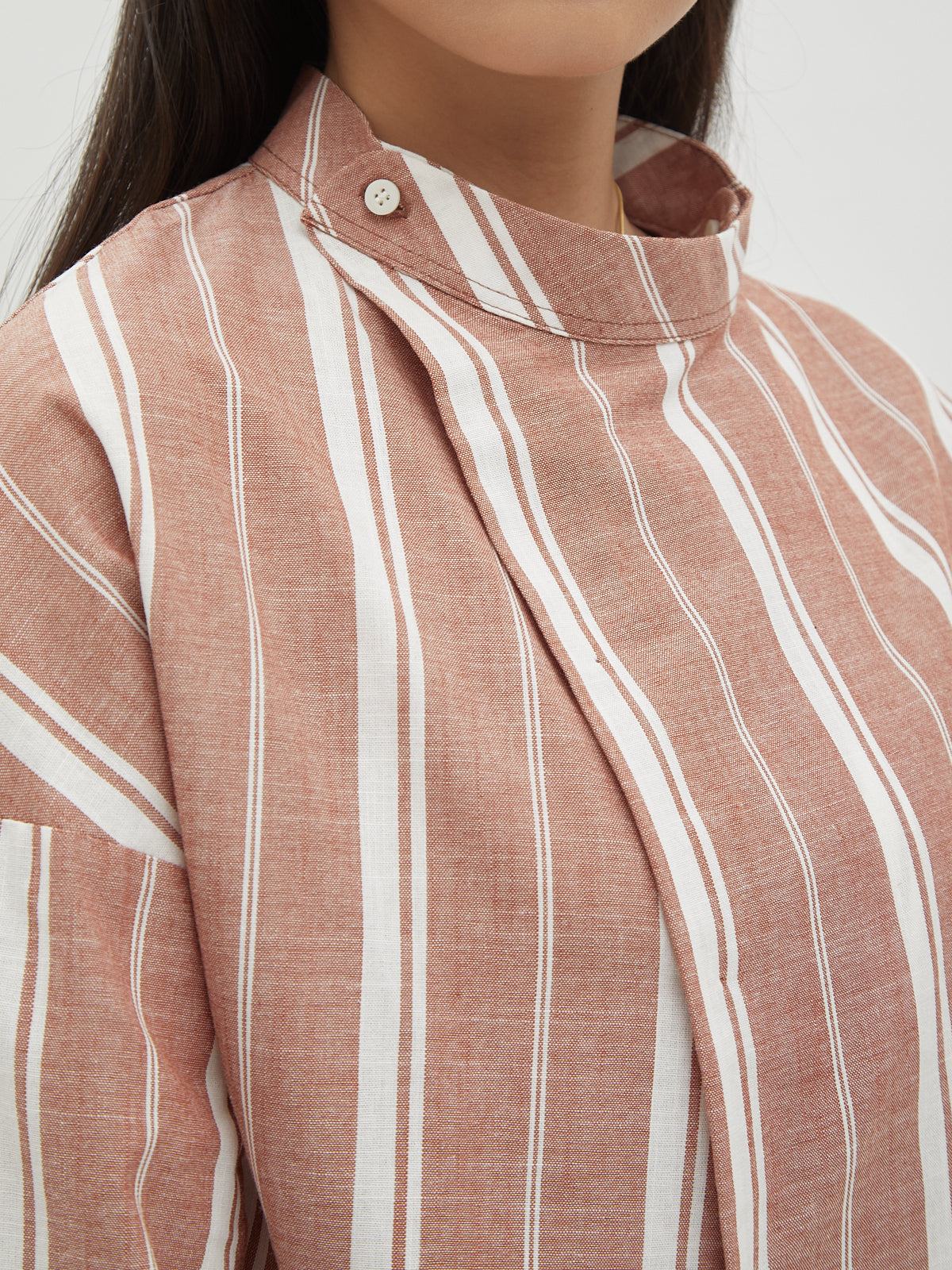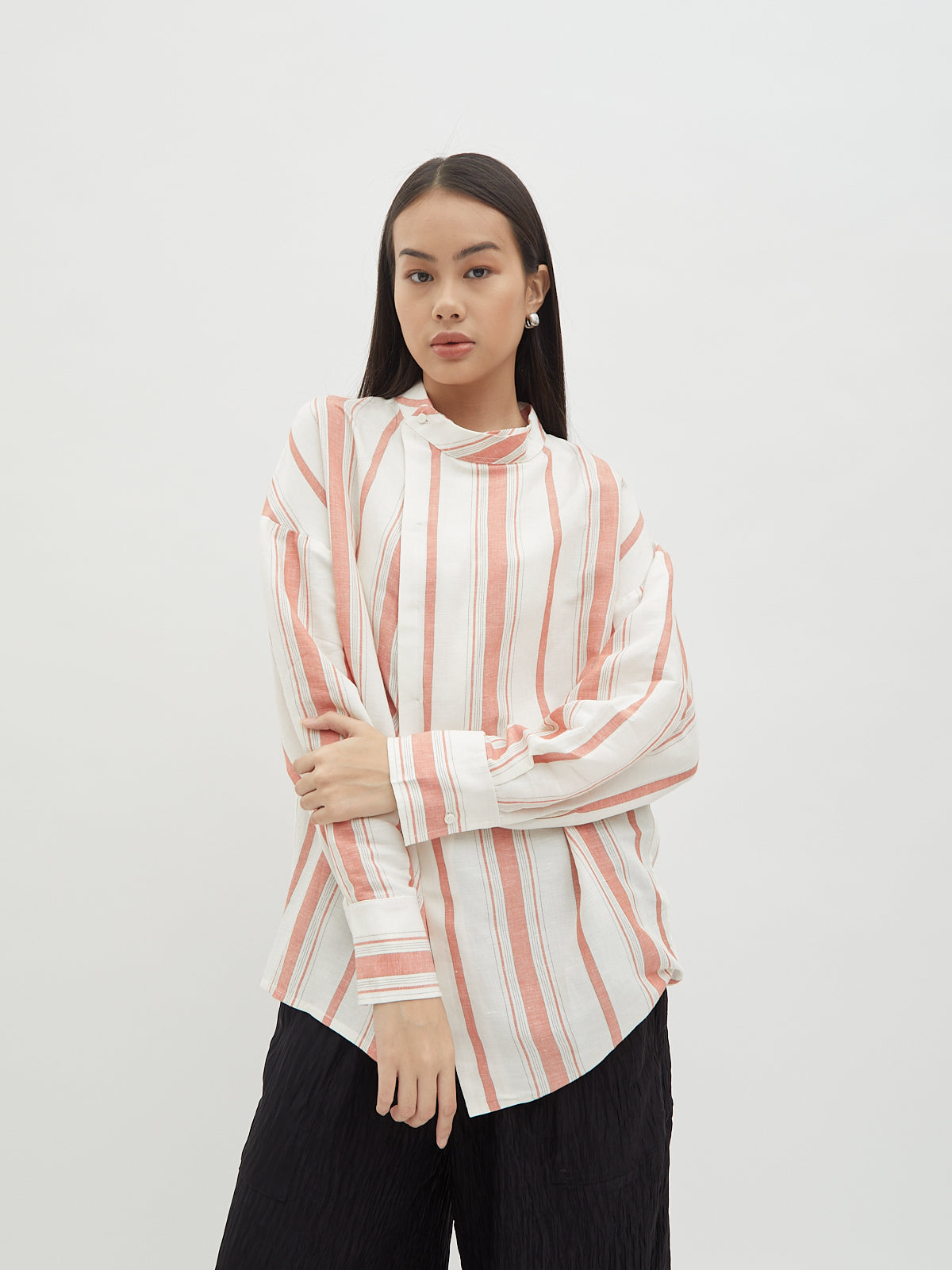 Atasan wanita lengan panjang ini didesain dengan kerah model mandarin. Memiliki kancing klip di bagian depan dan dengan detail yang asimetris. Bahannya halus dan ringan sehingga nyaman saat dipakai. Cocok dipakai untuk acara formal dan kasual.