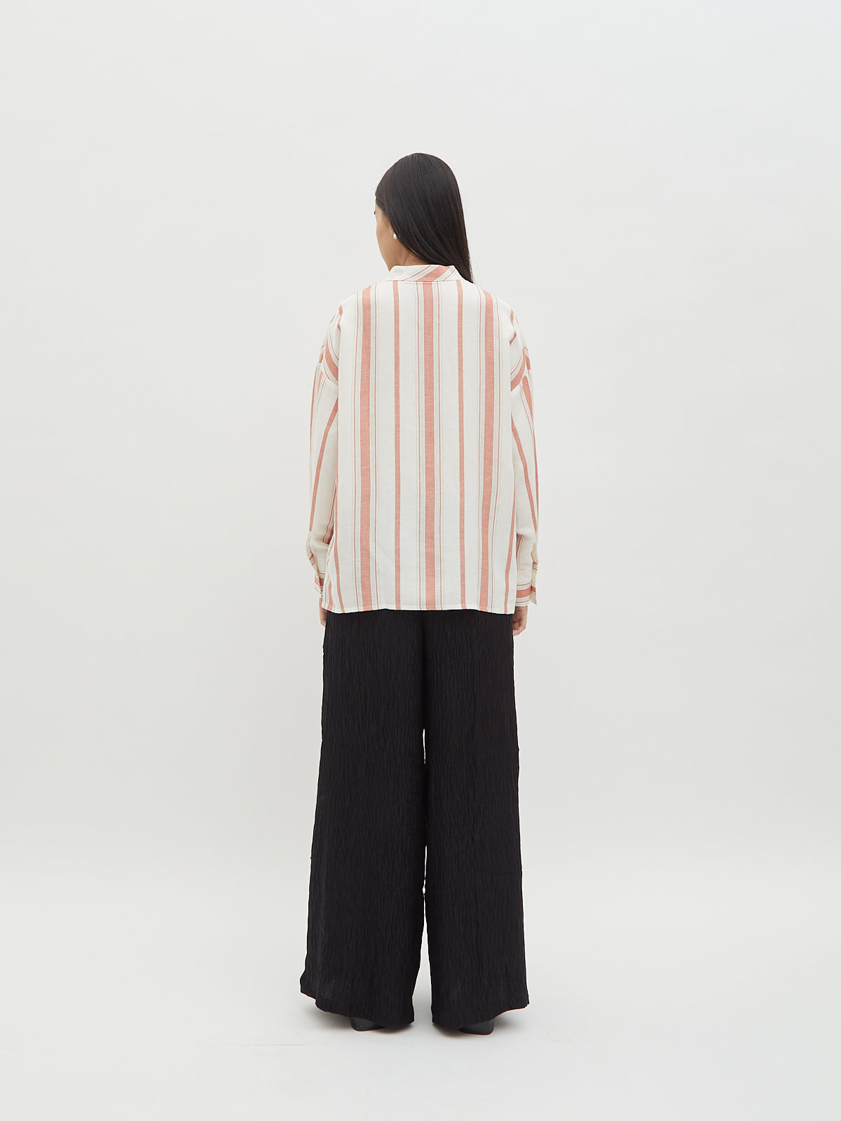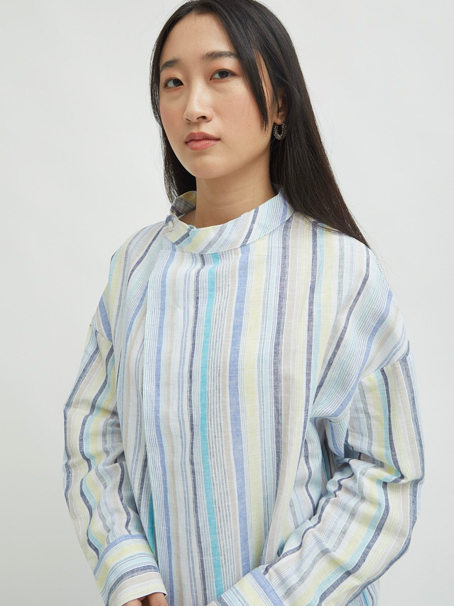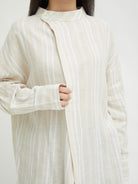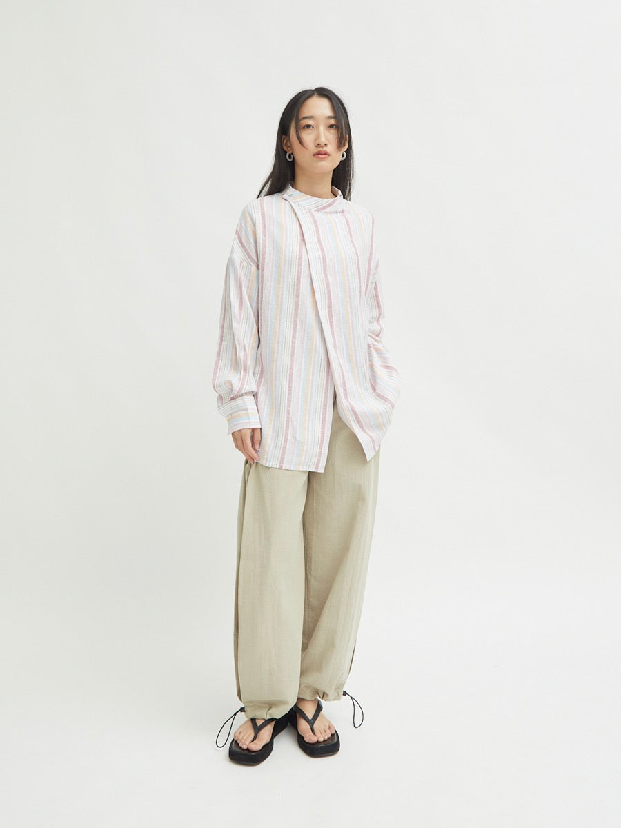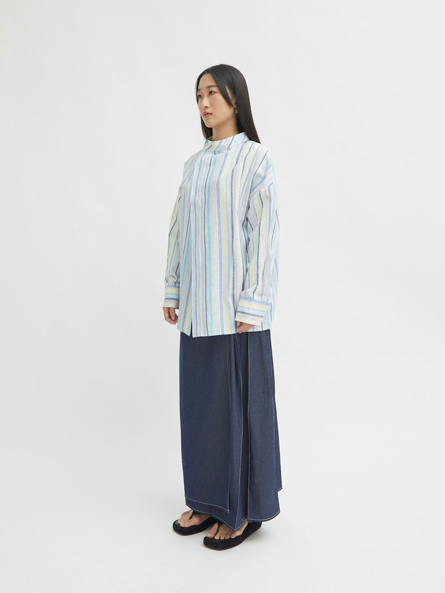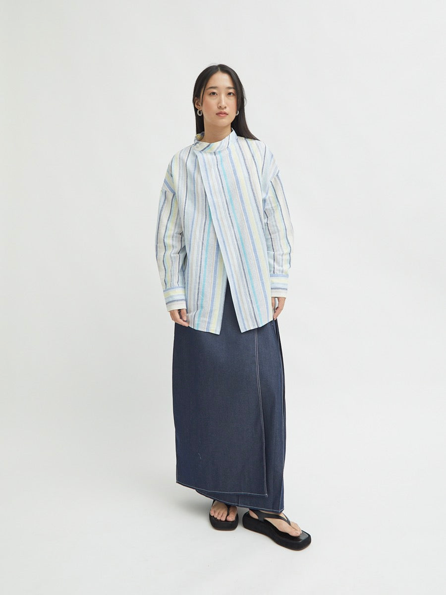 Atasan wanita lengan panjang ini didesain dengan kerah model mandarin. Memiliki kancing klip di bagian depan dan dengan detail yang asimetris. Bahannya halus dan ringan sehingga nyaman saat dipakai. Cocok dipakai untuk acara formal dan kasual.