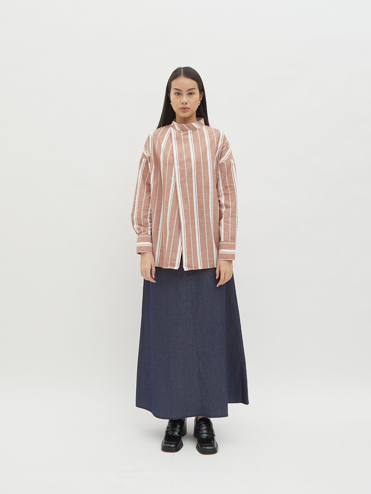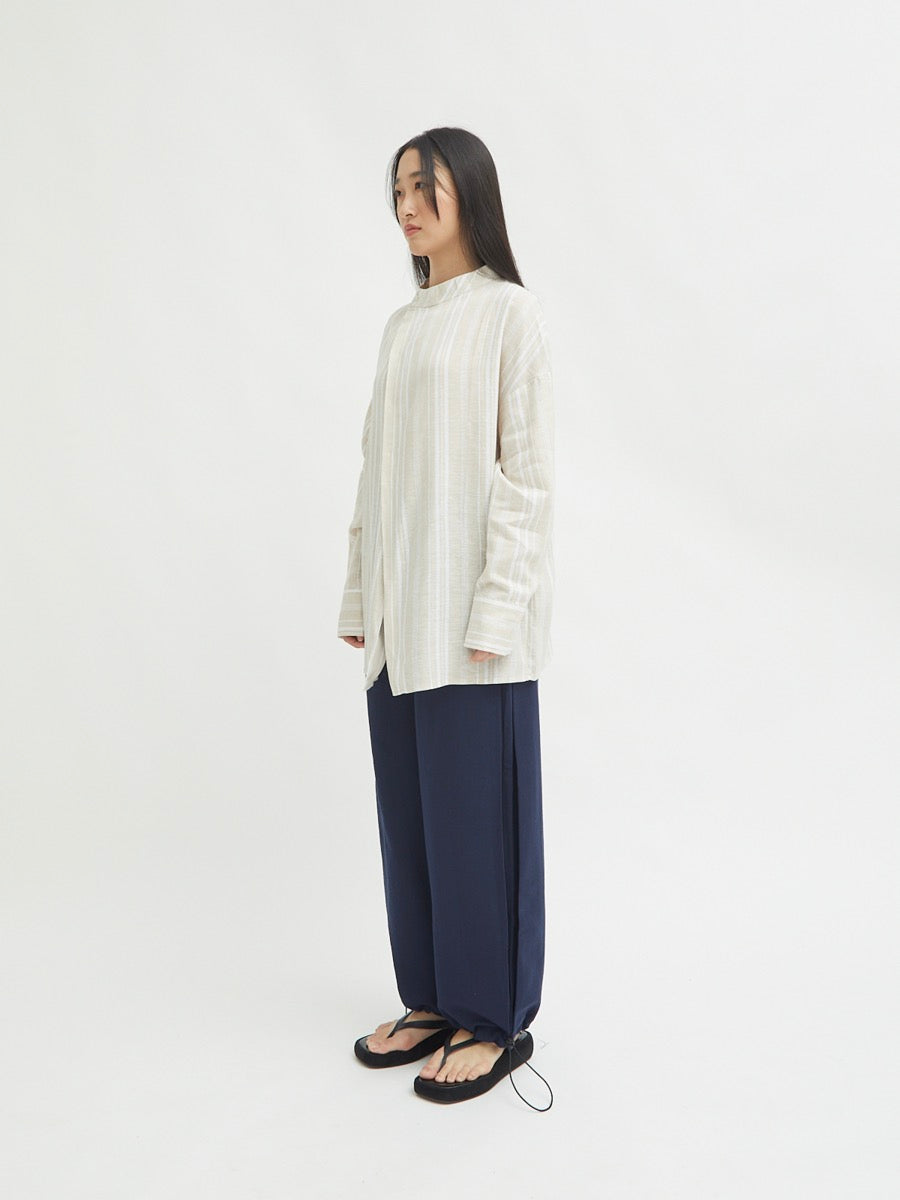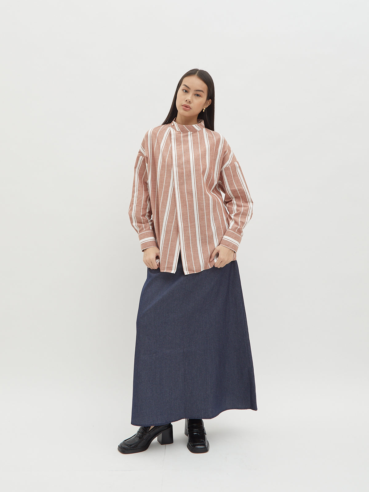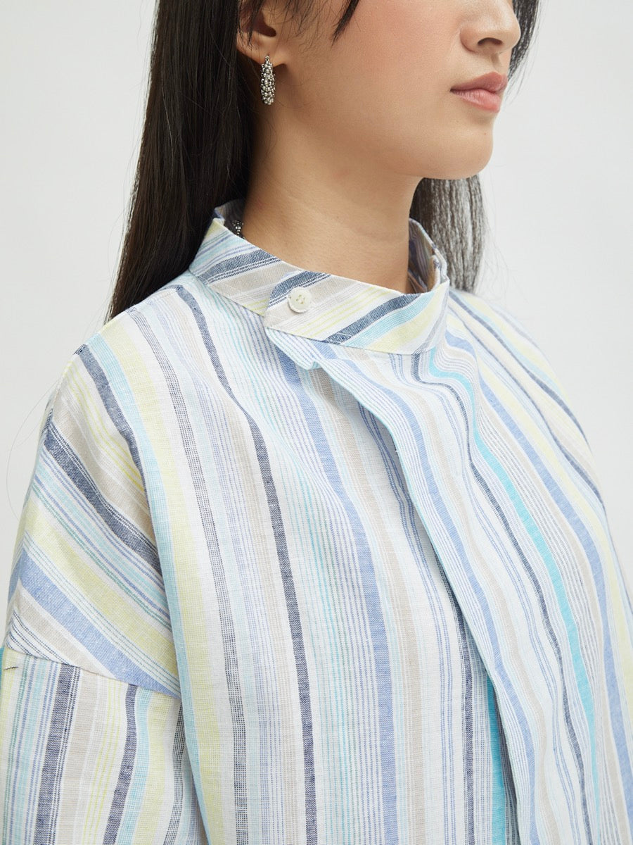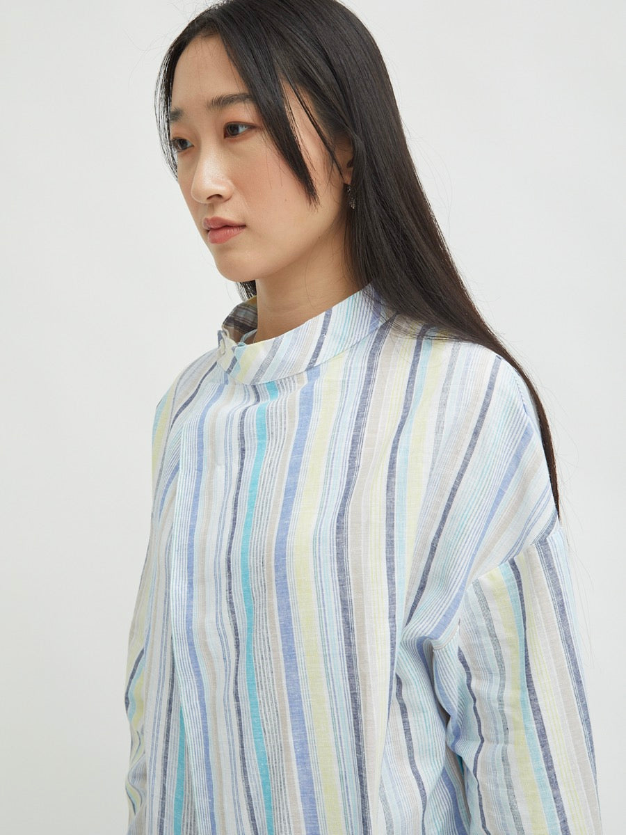 Atasan wanita lengan panjang ini didesain dengan kerah model mandarin. Memiliki kancing klip di bagian depan dan dengan detail yang asimetris. Bahannya halus dan ringan sehingga nyaman saat dipakai. Cocok dipakai untuk acara formal dan kasual.
