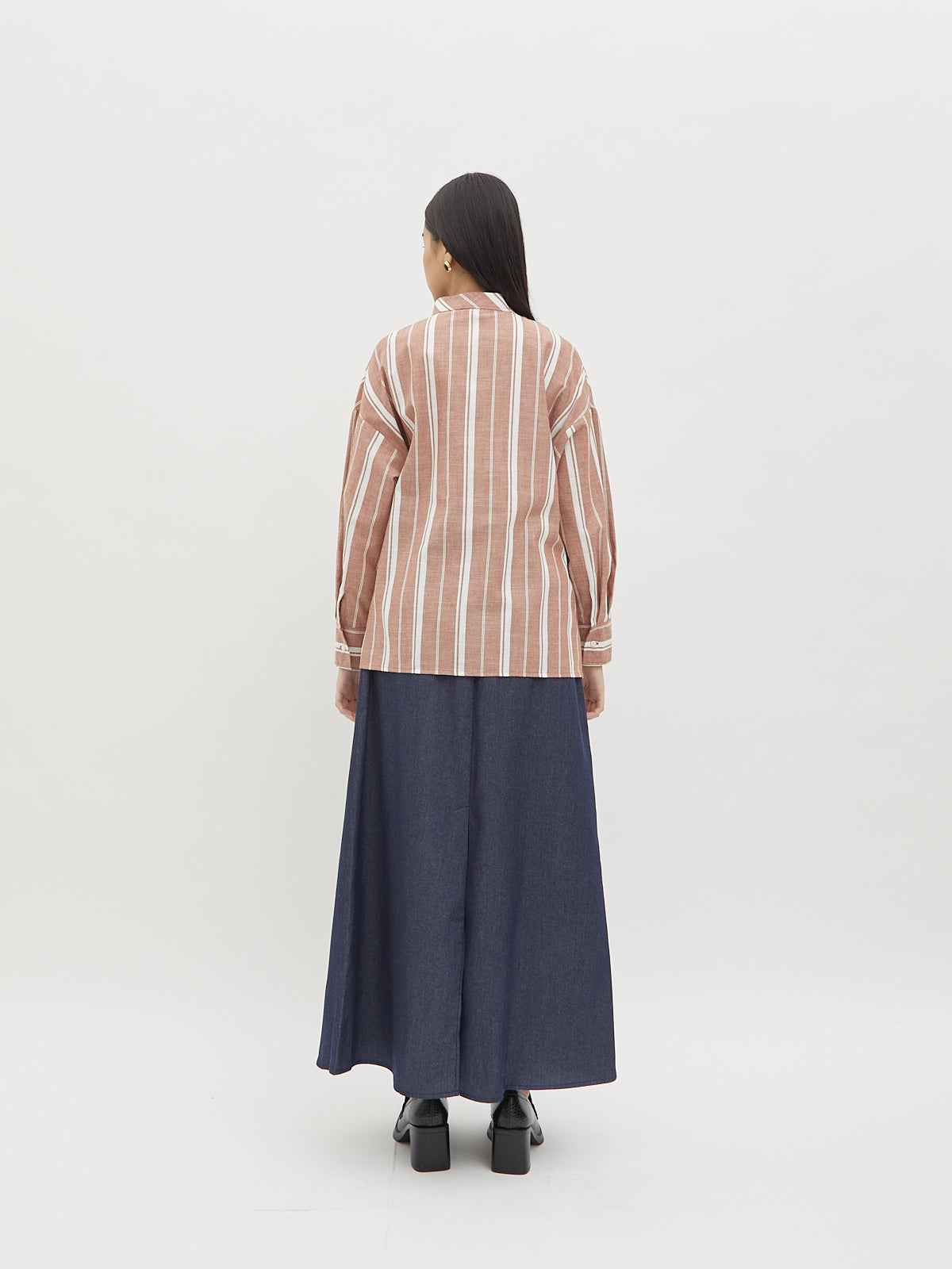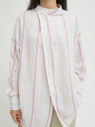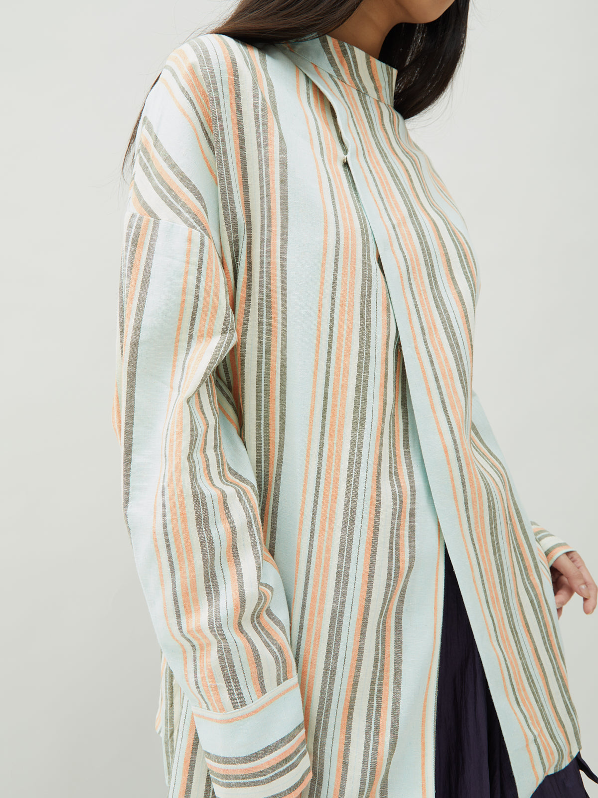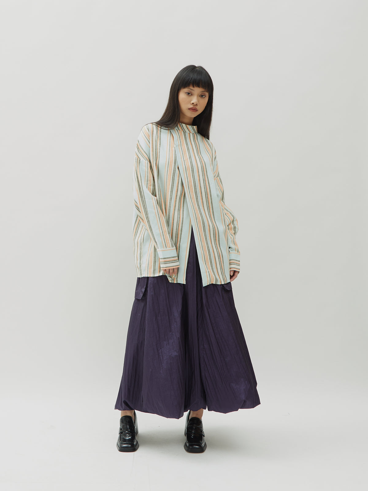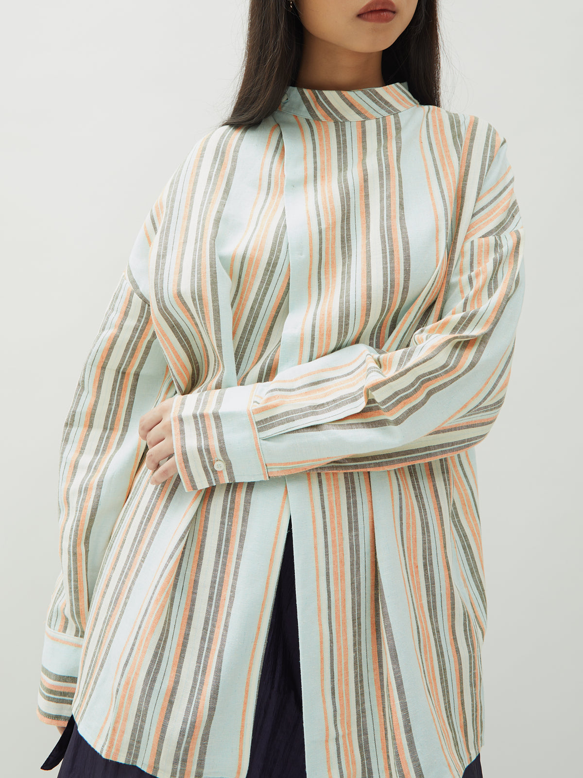 Atasan wanita lengan panjang ini didesain dengan kerah model mandarin. Memiliki kancing klip di bagian depan dan dengan detail yang asimetris. Bahannya halus dan ringan sehingga nyaman saat dipakai. Cocok dipakai untuk acara formal dan kasual.