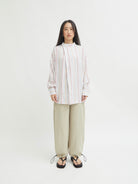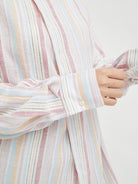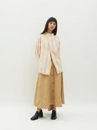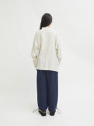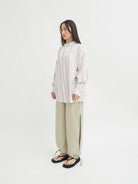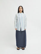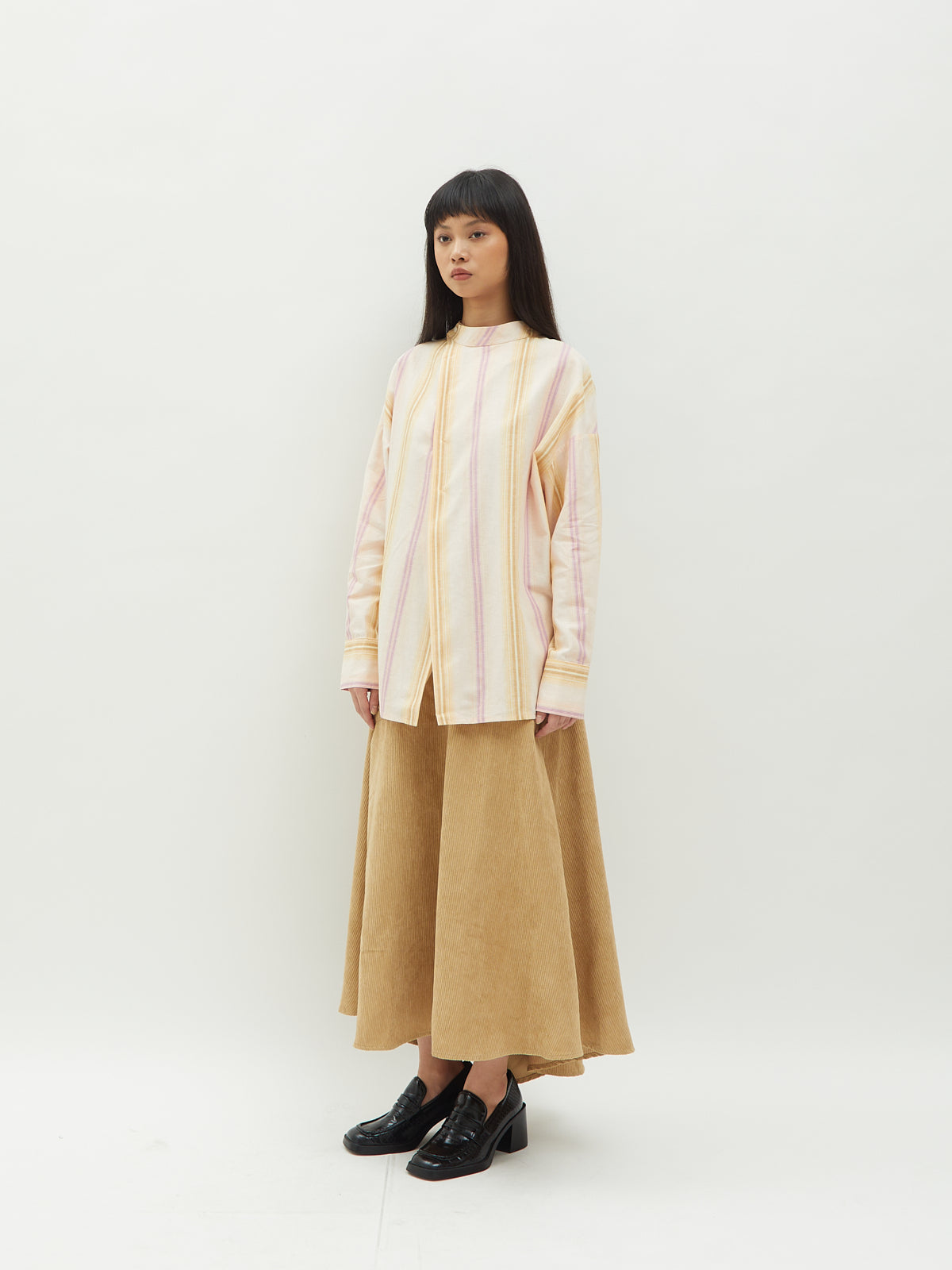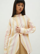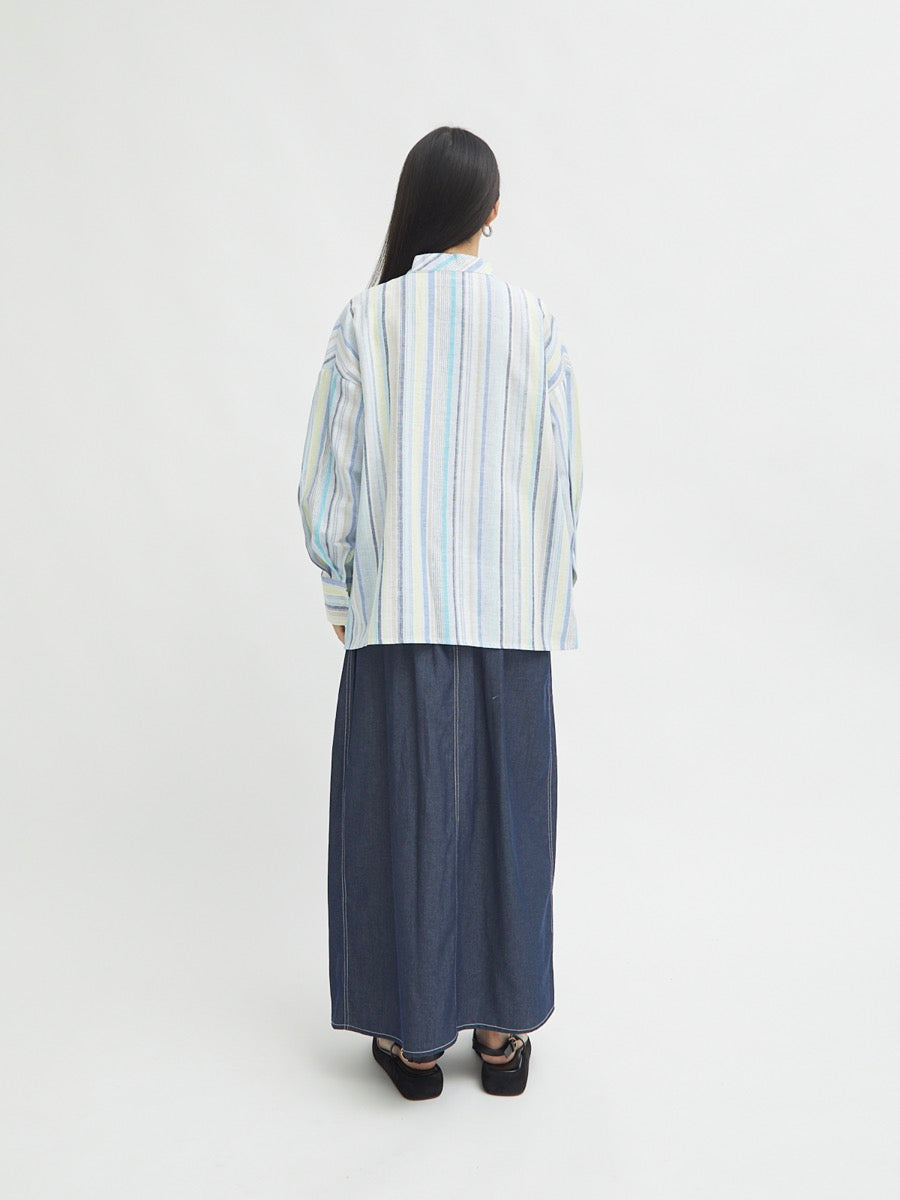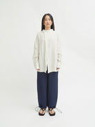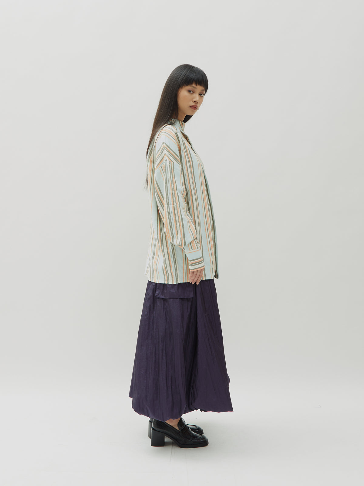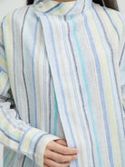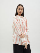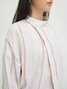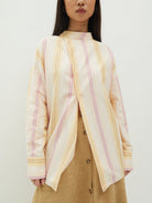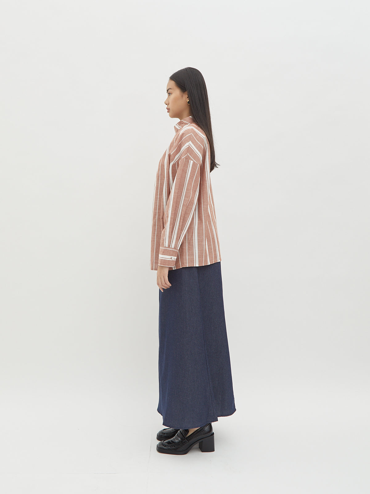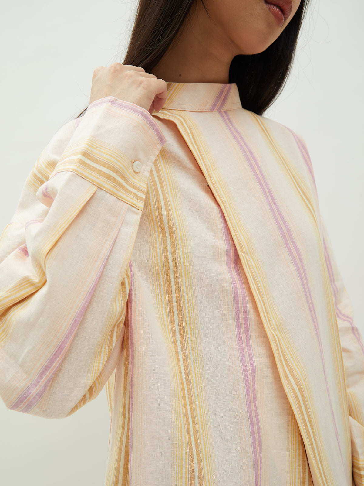 Atasan wanita lengan panjang ini didesain dengan kerah model mandarin. Memiliki kancing klip di bagian depan dan dengan detail yang asimetris. Bahannya halus dan ringan sehingga nyaman saat dipakai. Cocok dipakai untuk acara formal dan kasual.