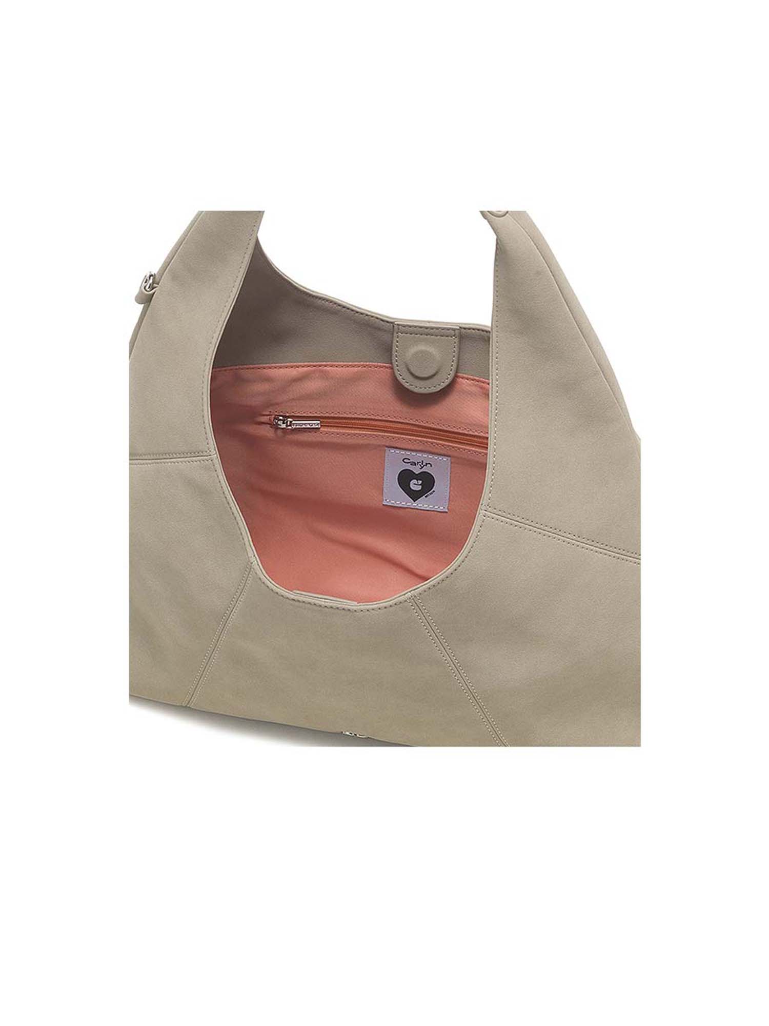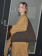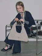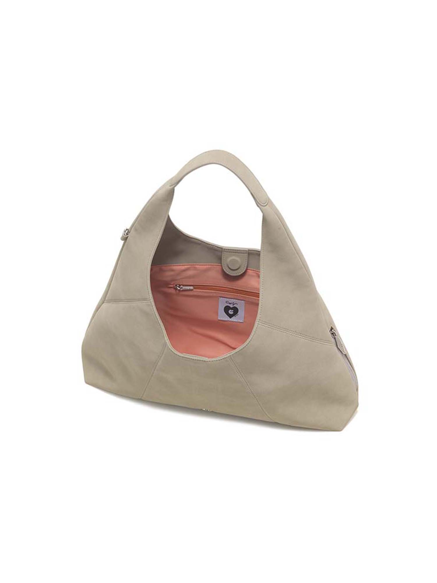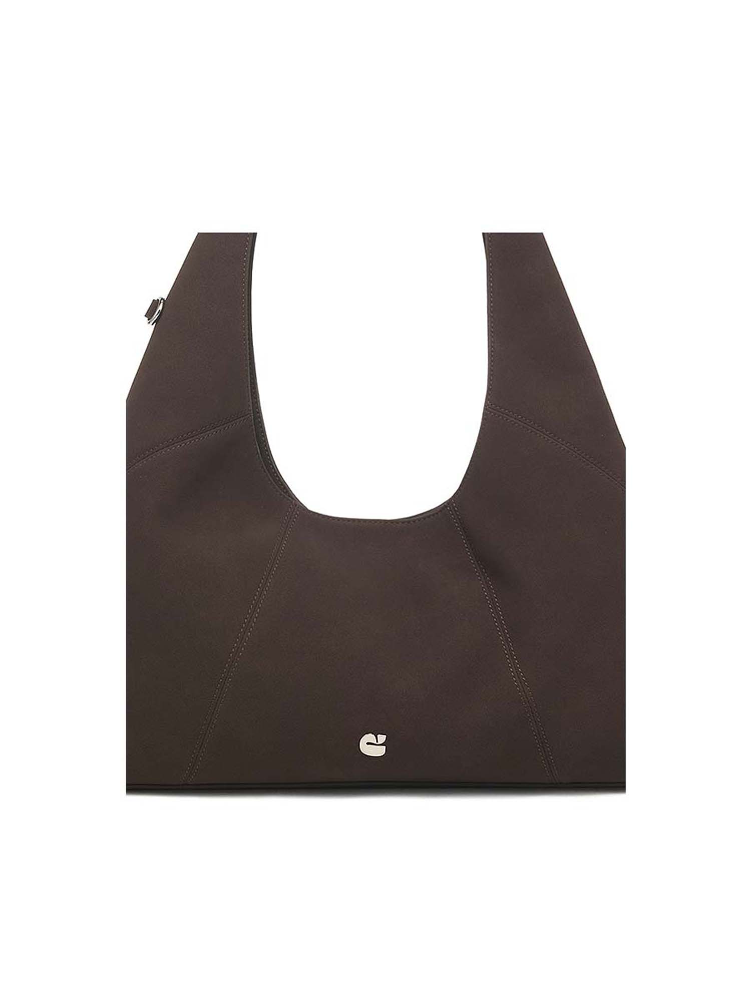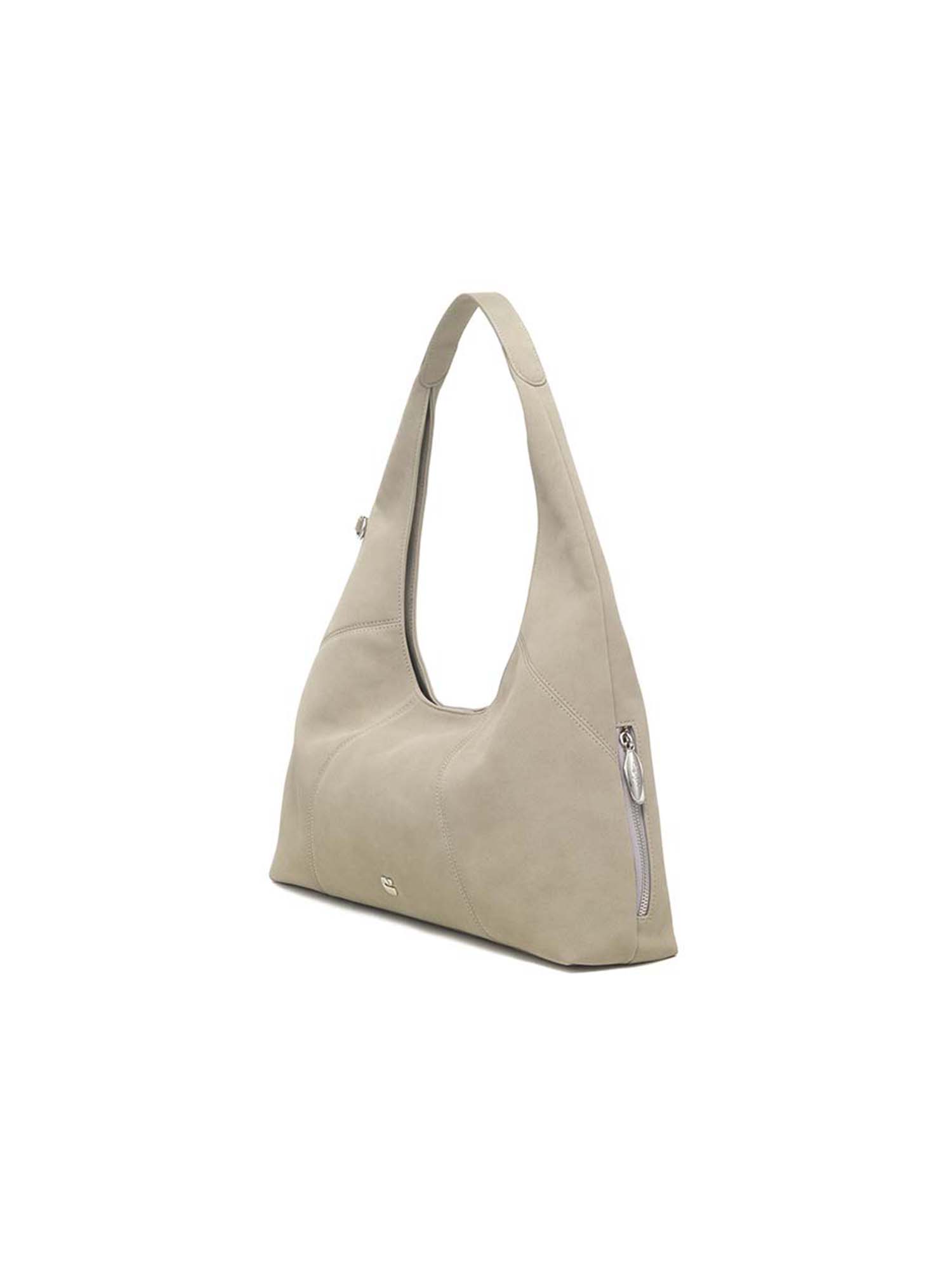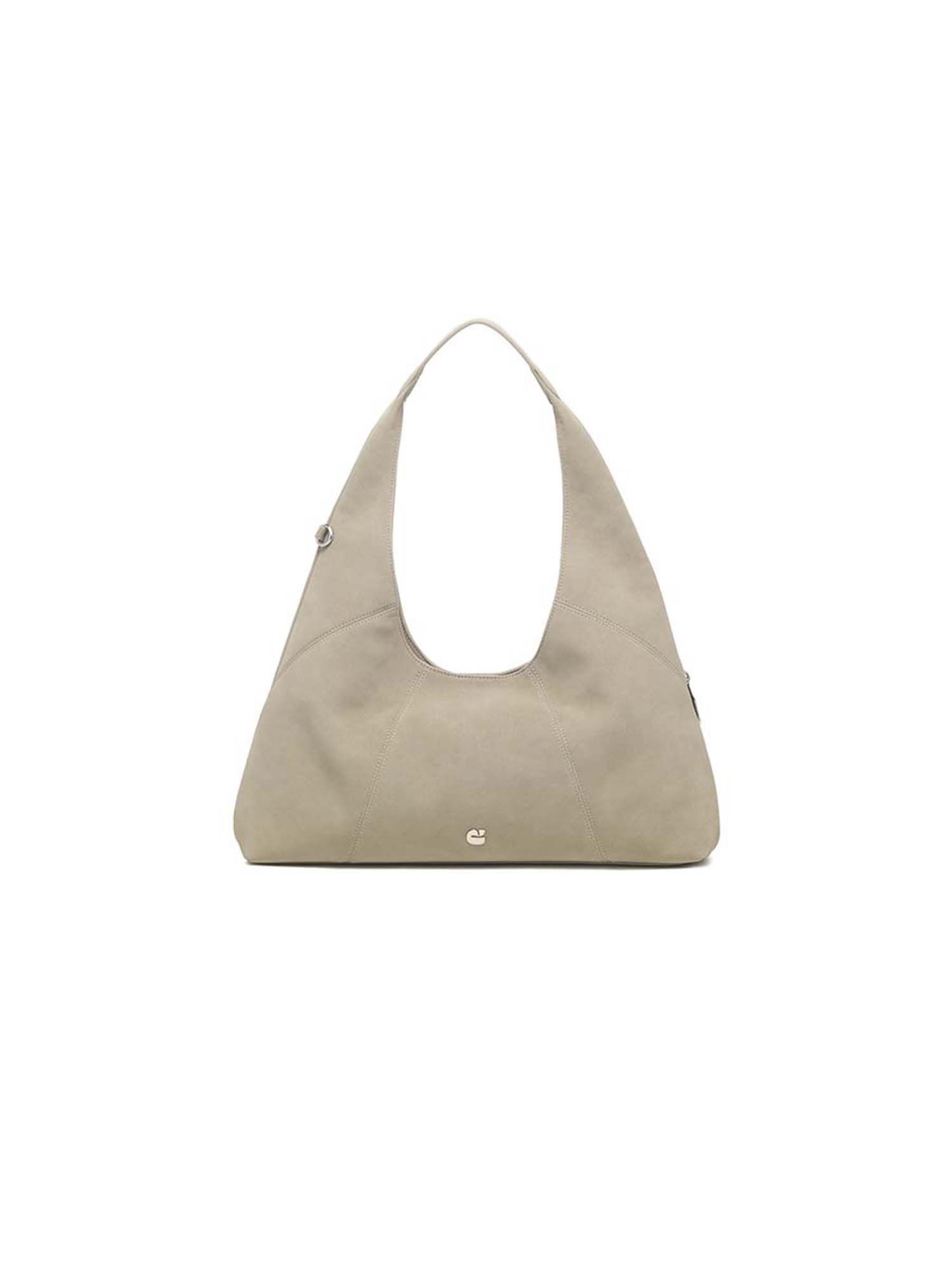 A modern hobo bag crafted in soft, suede-touch polyester with a distinctive triangular silhouette. Designed with bold seam details and a spacious interior, Nuv offers both style and daily practicality, finished with a subtle side D-ring for versatile styling.