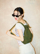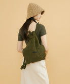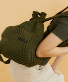 Tas ransel dengan desain artsitik yang unik, serta dengan detail detail pola garis-garis timbul yang menyerupai pola artisitik.
