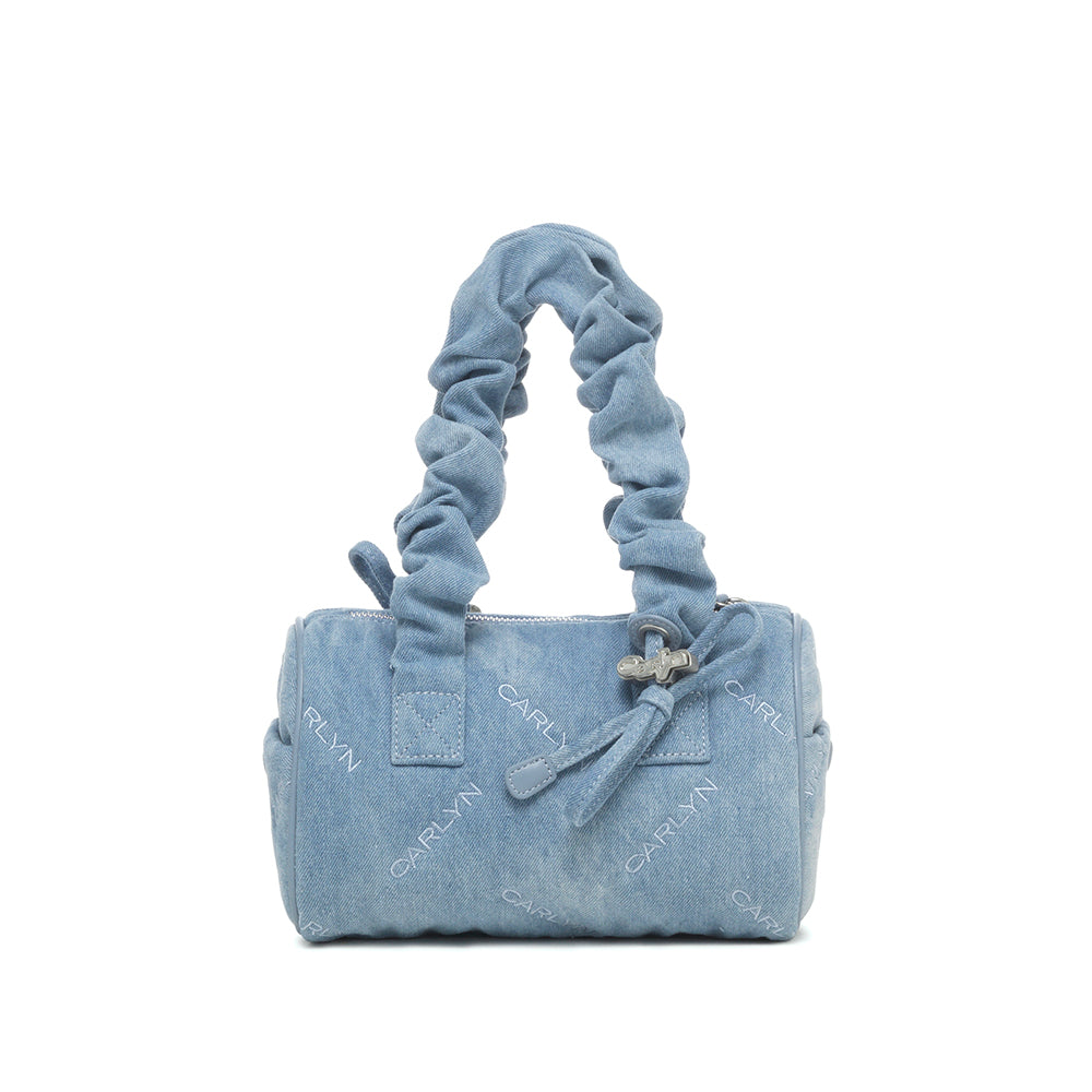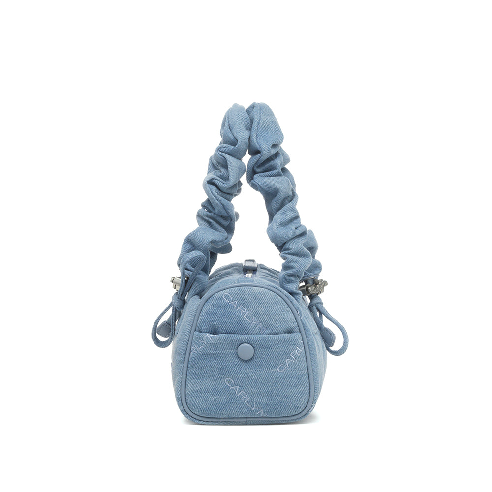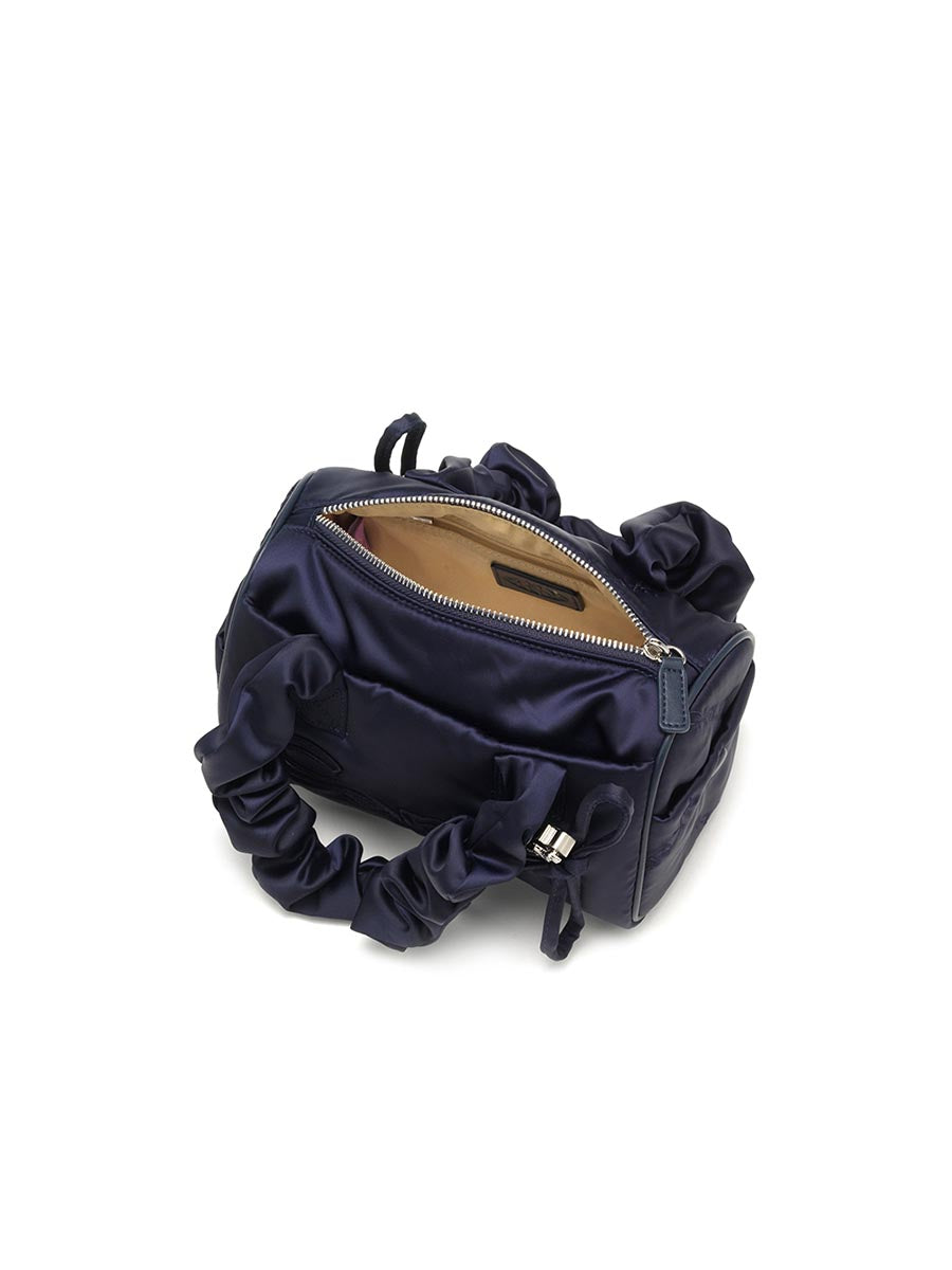 Mini version of tia inspired by ballet core look. Create your own mood with the adjustable shoulder string. With presented with glossy and silky fabric. Wearing the bag in 2 ways tote and shoulder with the adjustable stoper on both handles. Small size but useful storage from the pokets inside and outside.